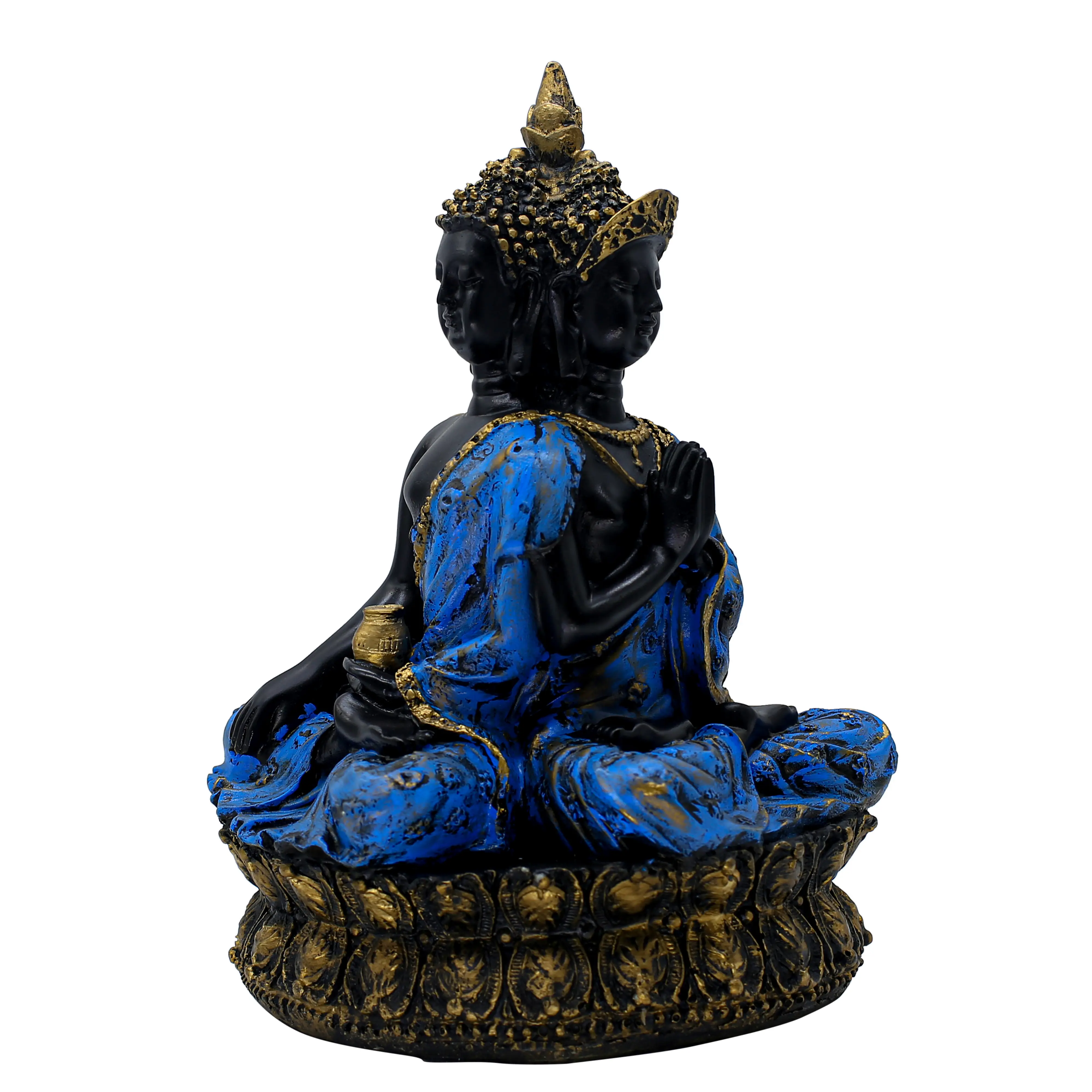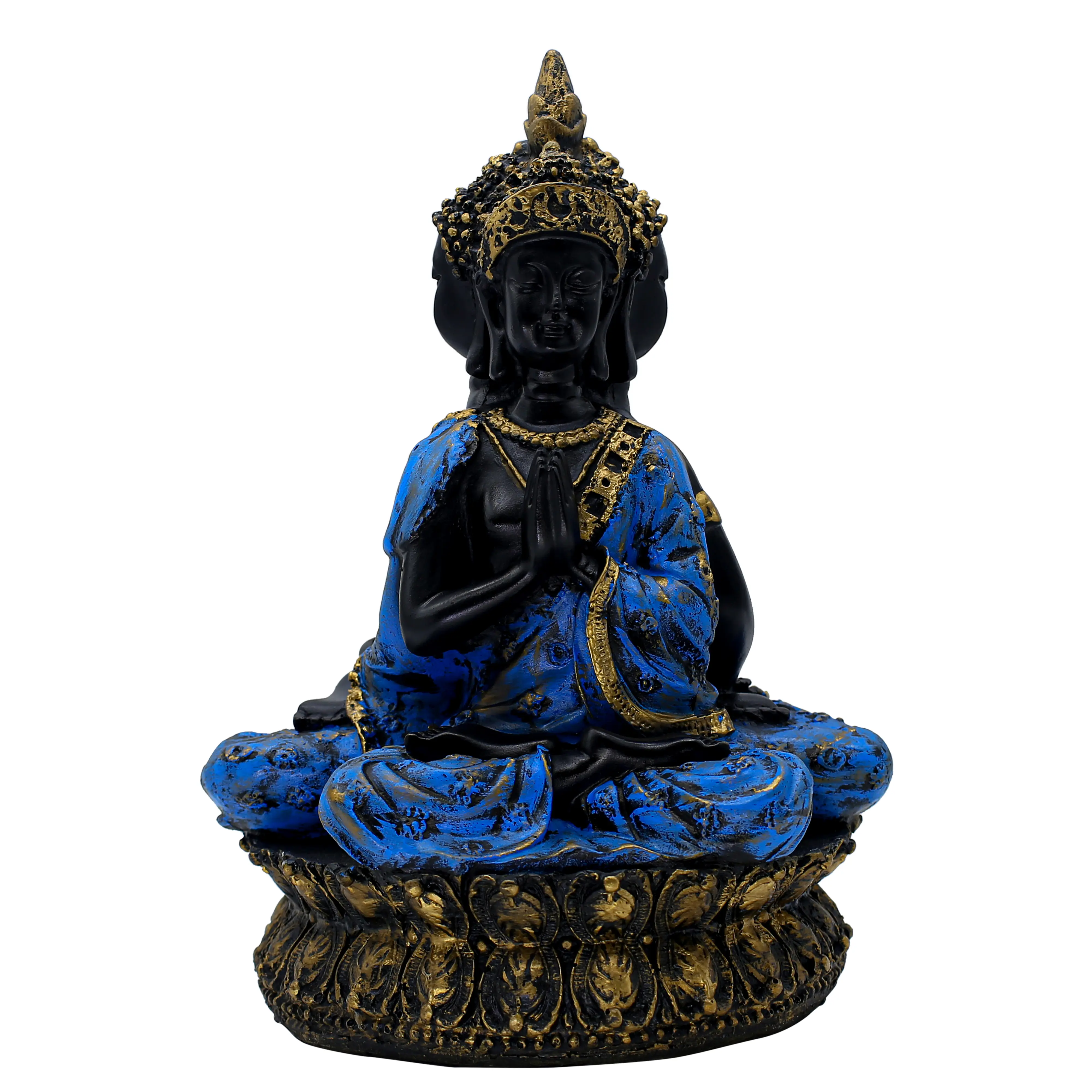 In the realm of spiritual decor, it is rare to find a piece that commands attention quite like the Black & Blue Multi-Faced Buddha Figurine. This statue is a powerful representation of the "Trimurti" concept or the "All-Seeing" aspect of the divine, designed to bring a sense of complete protection and awareness to your living space.