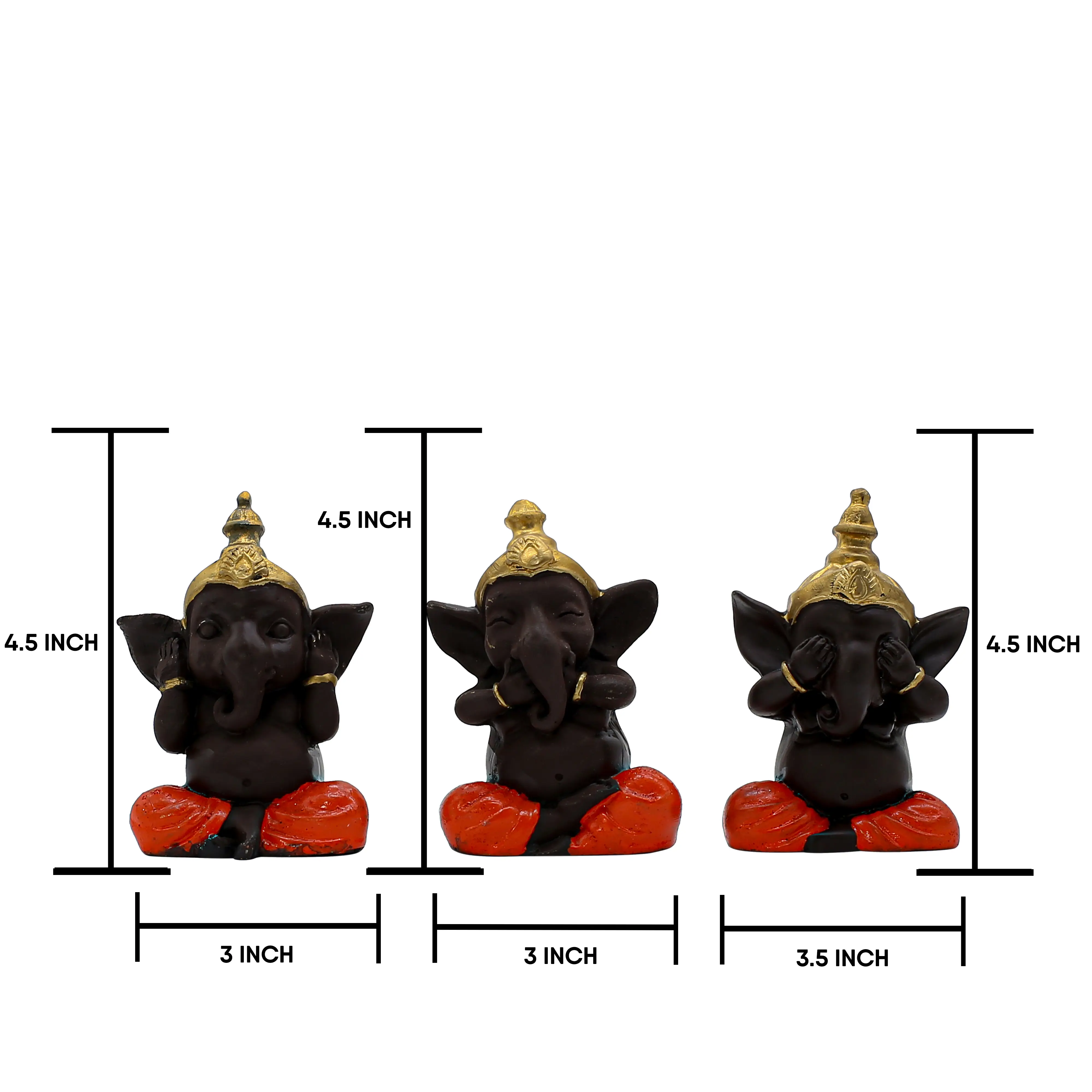 See No Evil: One Ganesha covers his eyes, encouraging us to focus only on the good in the world. Having these idols in your line of sight serves as a daily affirmation to maintain a pure mind and a positive attitude.