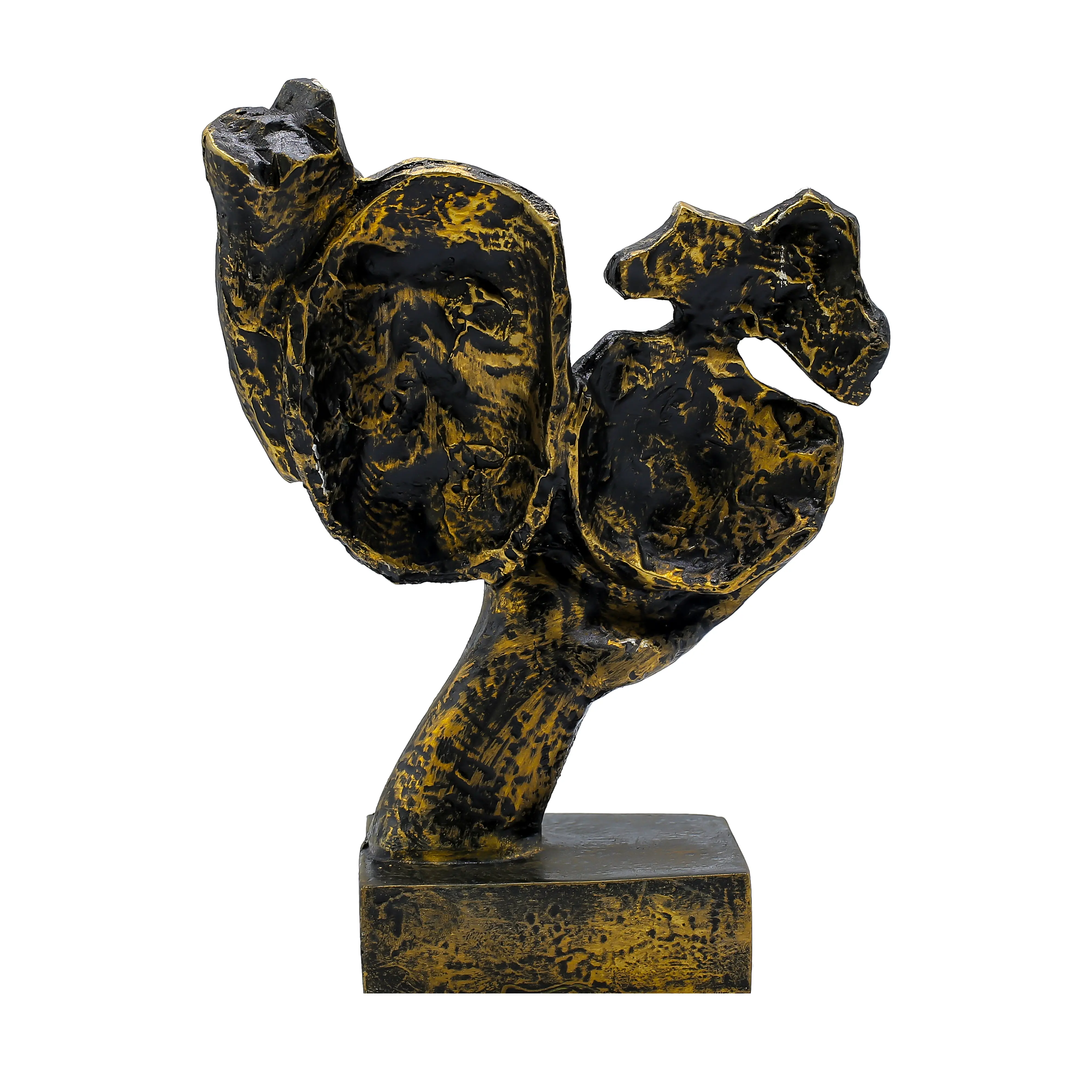 Expertly crafted from durable high-quality polyresin, the statue showcases a rich black base with antique gold highlights that enhance its textured detailing. The distressed antique finish gives the sculpture a premium handcrafted appearance, making each piece visually striking and unique. Mounted on a strong rectangular base, it ensures balance and long-term durability.