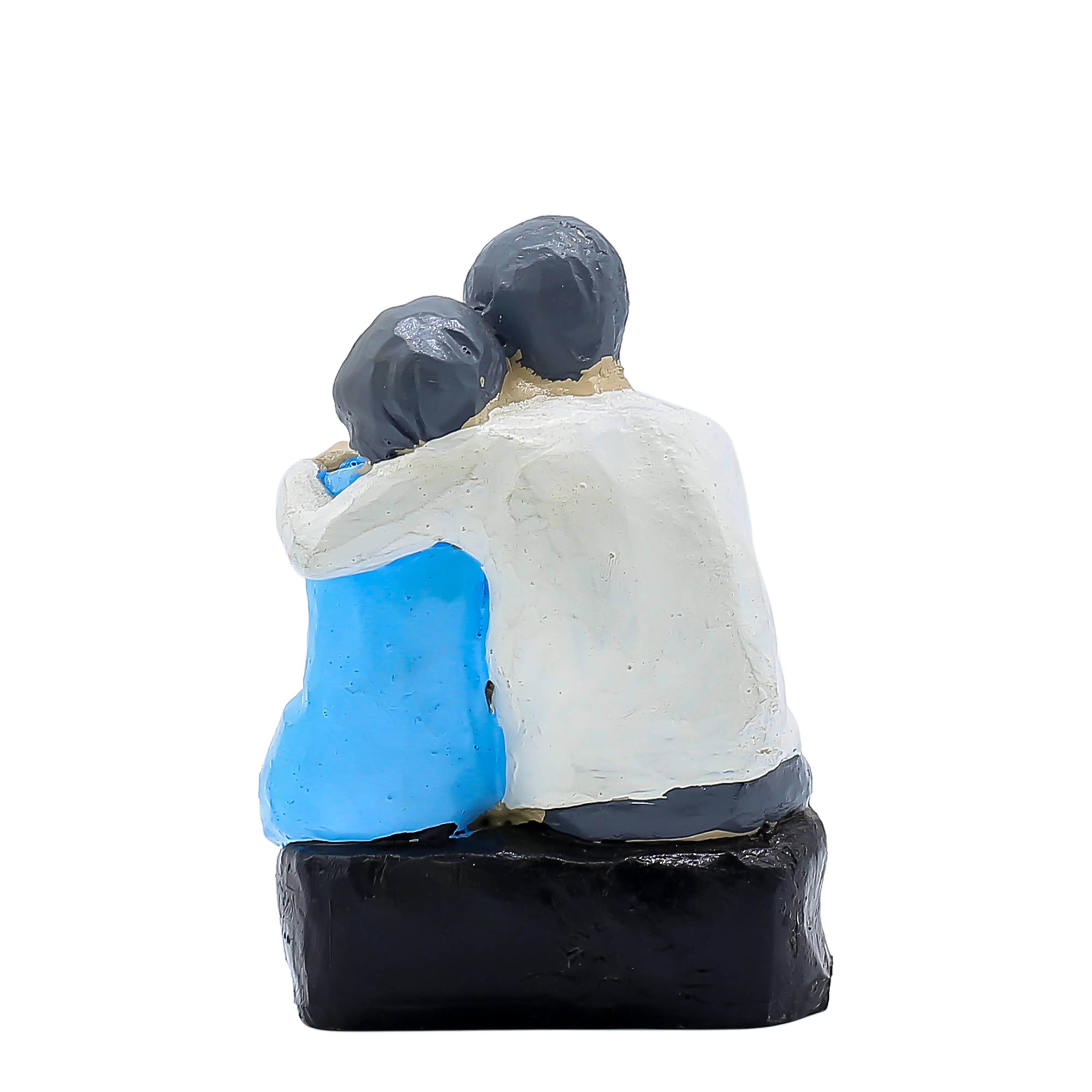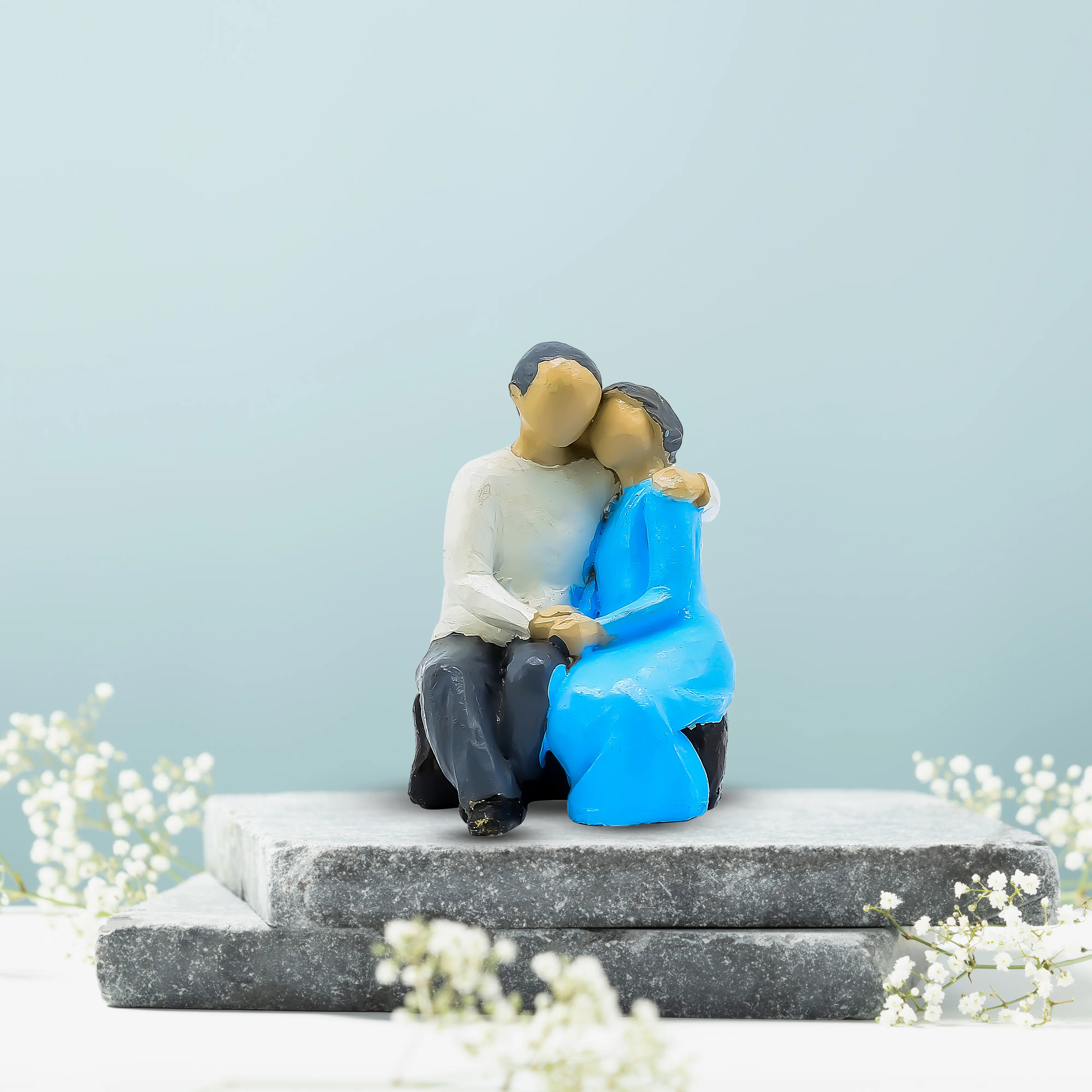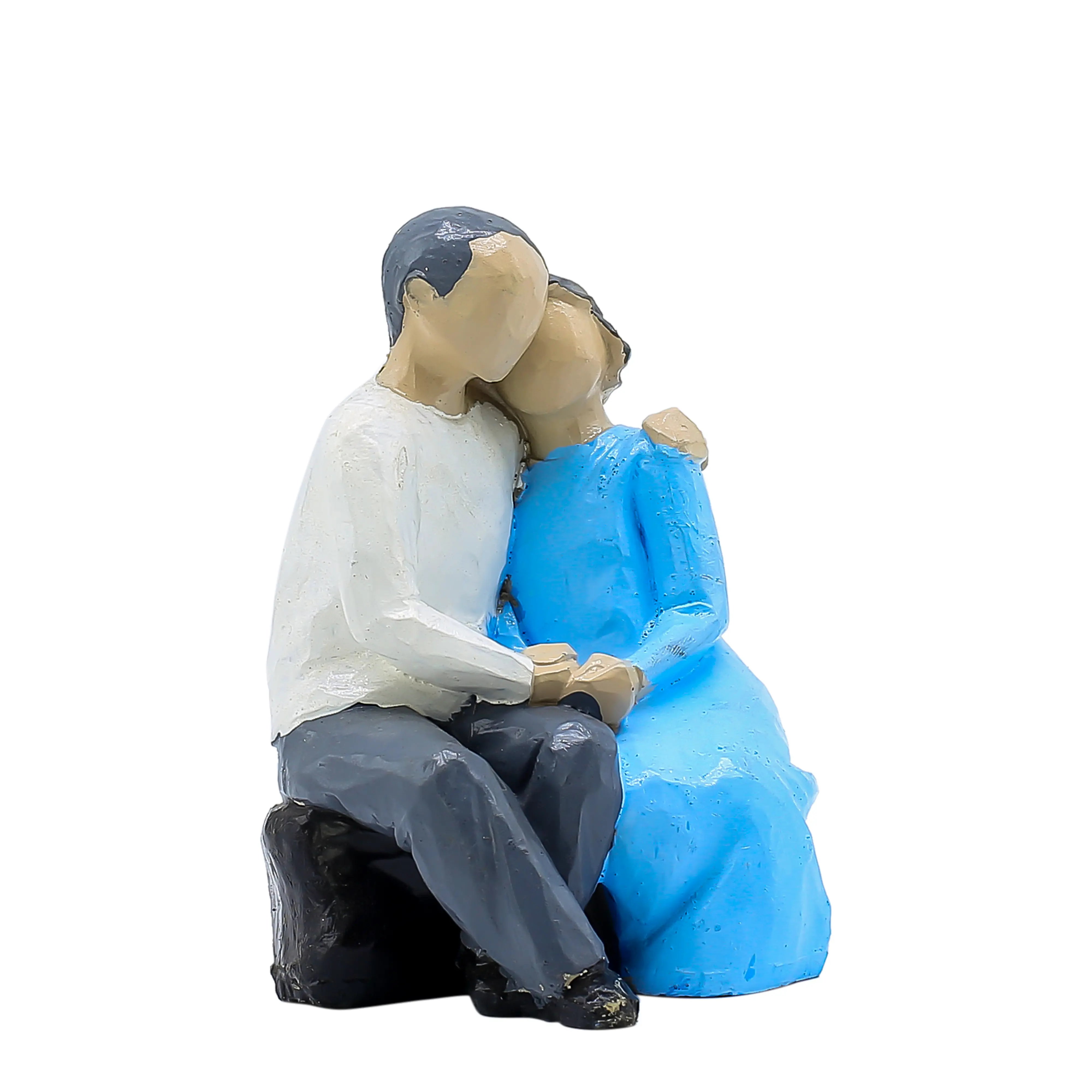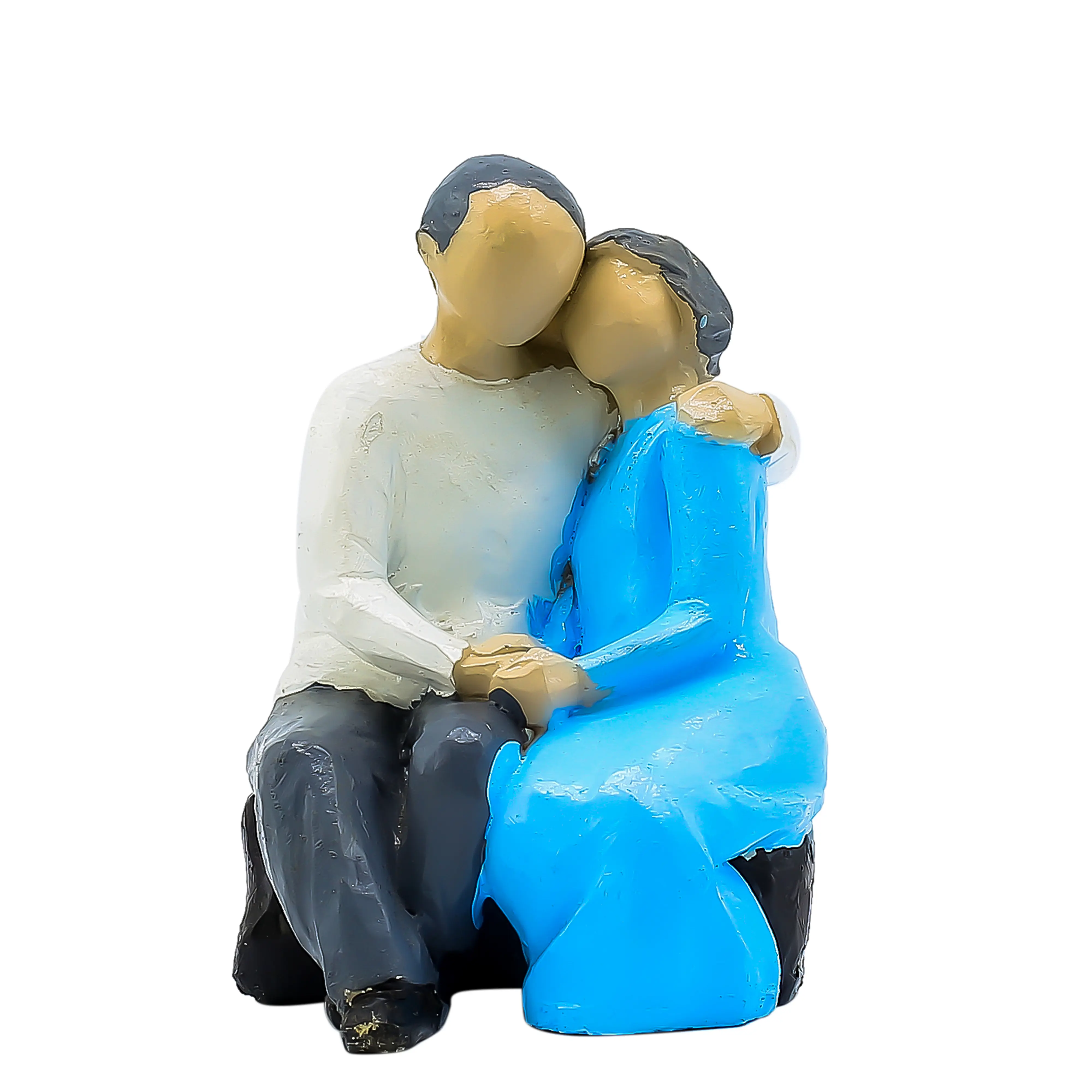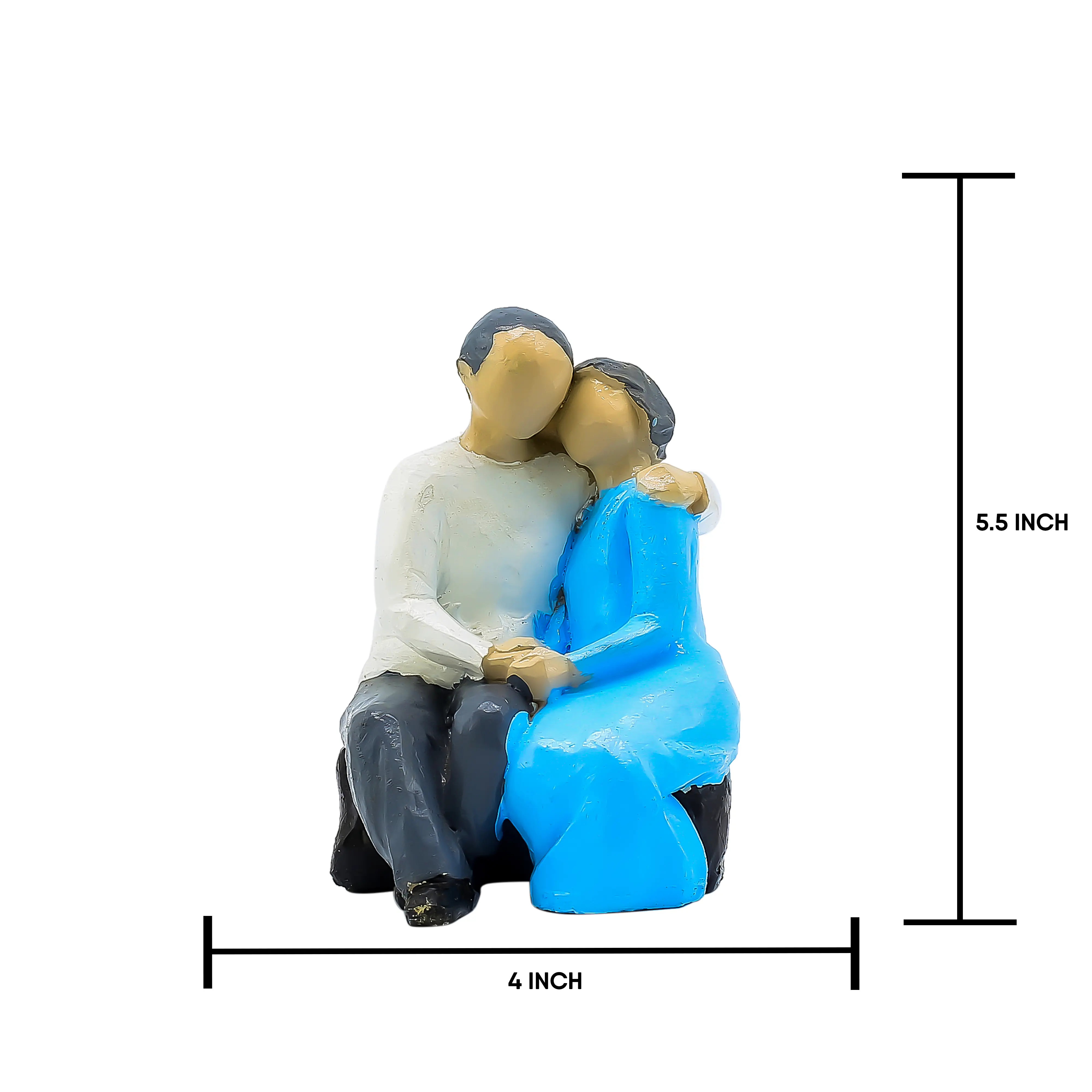 A Universal Symbol of Love and Support. Capture the quiet moments of companionship with the Modern Abstract Couple Sitting Statue. This charming figurine freezes a tender moment in time: a couple sitting together in comfortable silence, finding strength in each other's presence. The man offers a protective embrace, while the woman leans in with affection, creating a silhouette of perfect harmony. The design blends contemporary art with emotional depth. The "faceless" abstract style gives it a timeless appeal, while the vibrant blue dress of the female figure adds a splash of color that enlivens your decor. Perfectly sized for a bookshelf, bedside table, or fireplace mantel, this sculpture is a daily reminder that the best place to be is together. It is the perfect gift for your better half or a favorite couple.