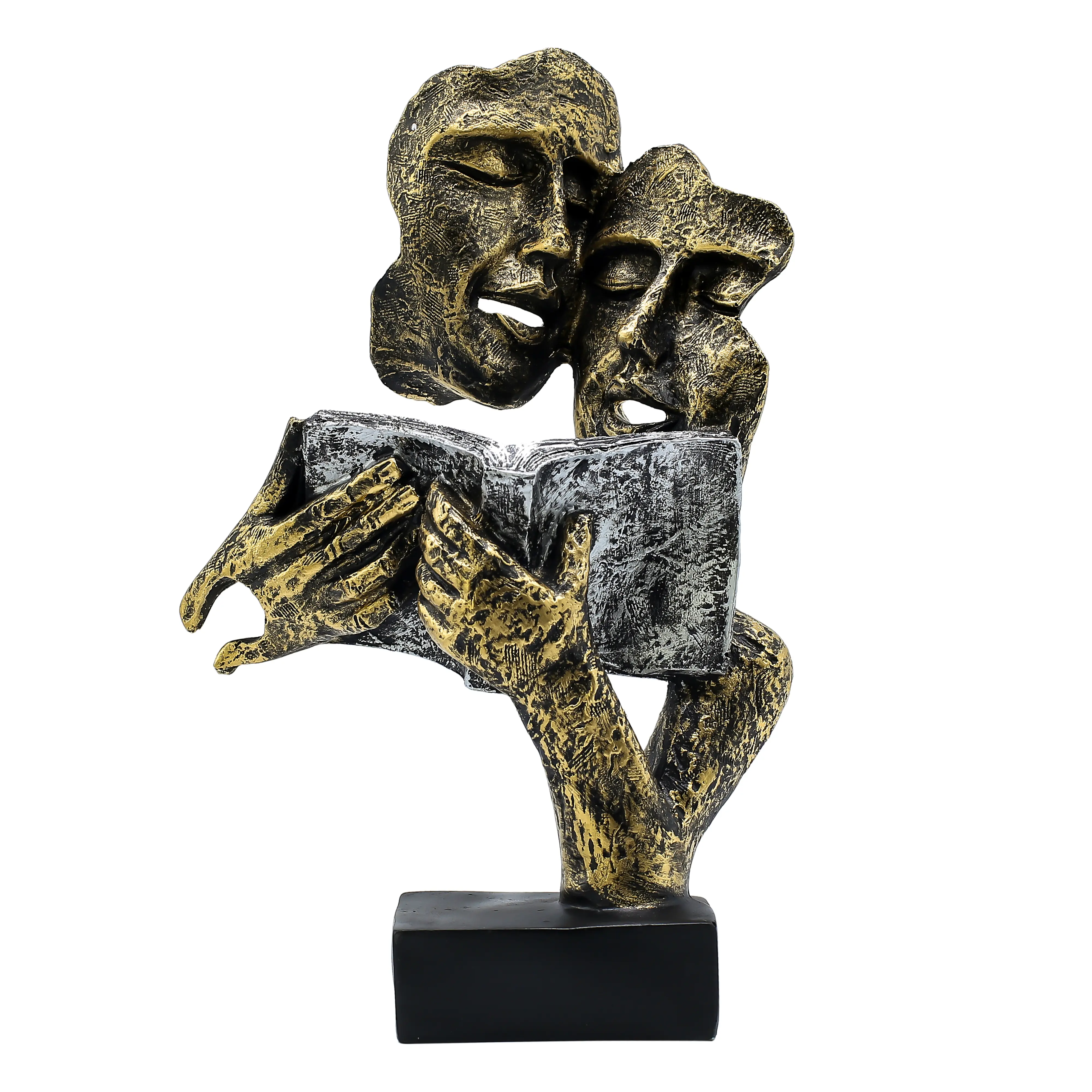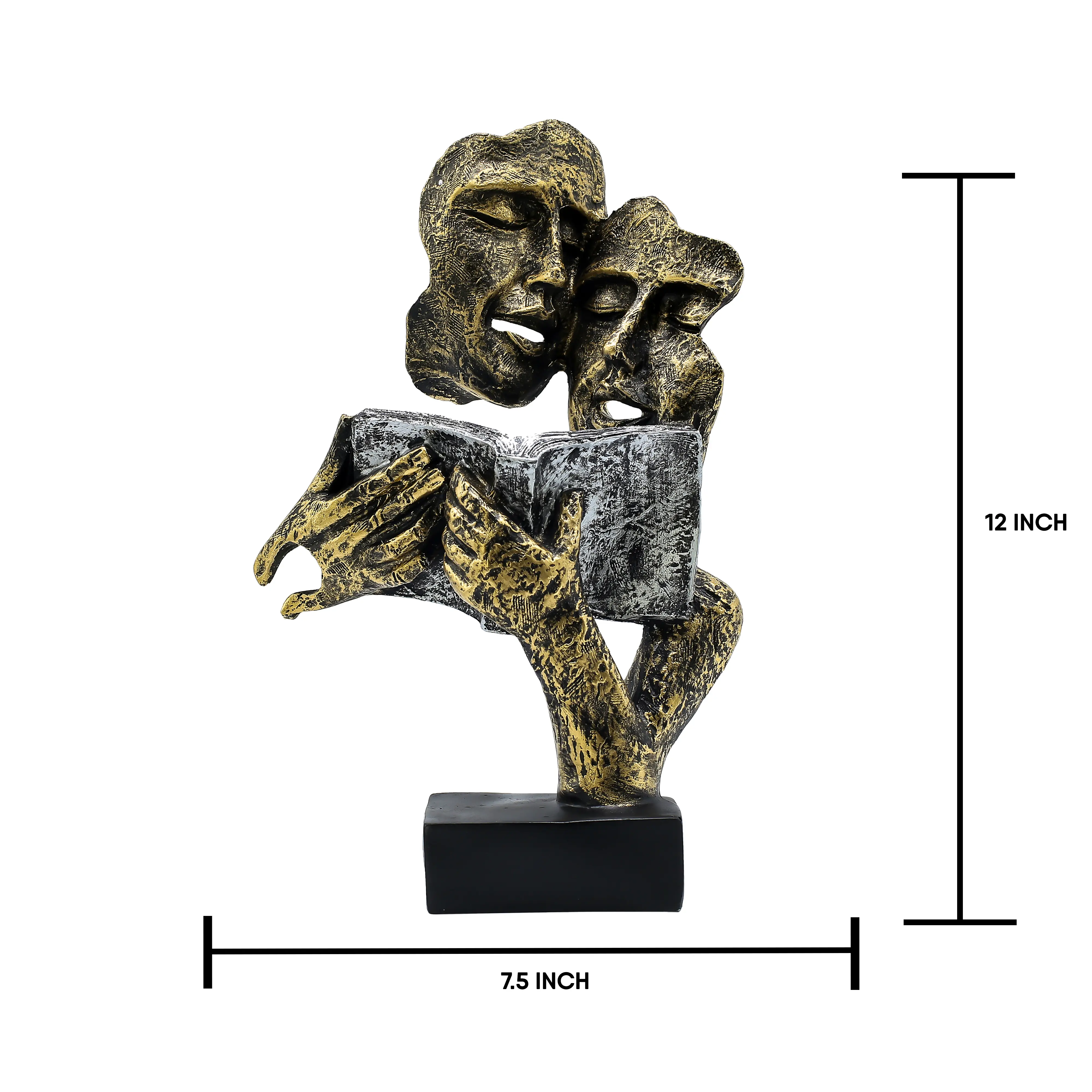 Introduce timeless artistic elegance into your interiors with this Abstract Face Reading Book Resin Showpiece, a modern décor sculpture that beautifully represents knowledge, creativity, and thoughtful imagination. The abstract dual-face design reading a book symbolizes intellectual connection and artistic expression, making it a meaningful and visually captivating décor element.