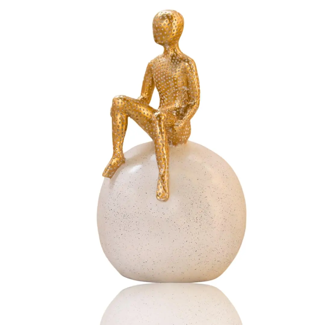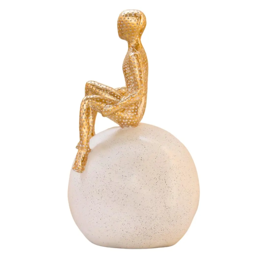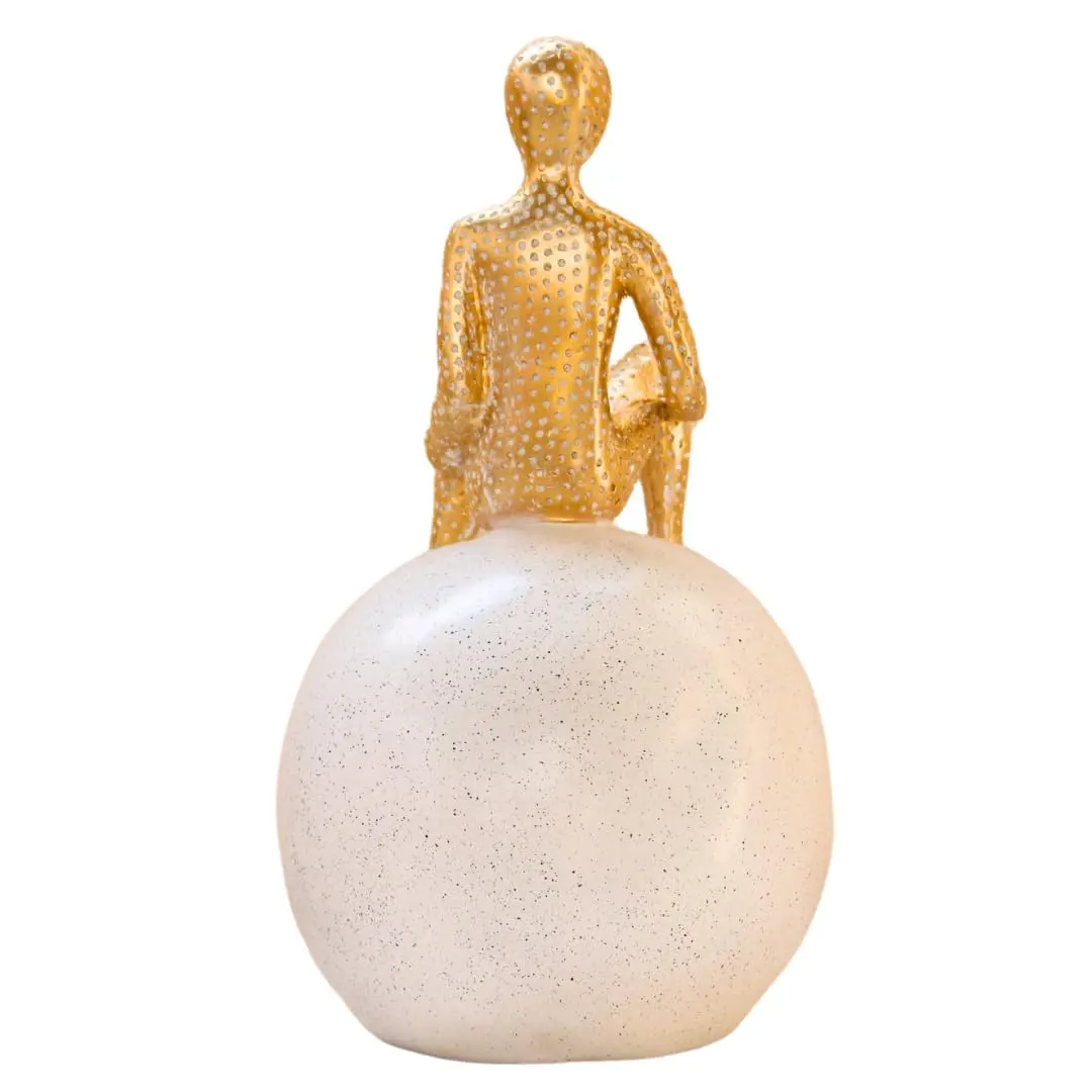 Introduce a sense of harmony and artistic flair to your home with our Abstract Gold Figure on White Sphere. This stunning showpiece is a study in contrasts—combining the warmth of Metallic Gold with the cool purity of Speckled White. The figure is sculpted with a distinctive textured surface that gives it a handcrafted, artisan feel, while the spherical base adds a geometric, modern touch. Perfect for lovers of "Quiet Luxury," this statue doesn't scream for attention but commands it through its elegant simplicity. It fits seamlessly into various decor themes, from Art Deco to Scandinavian. Place it on a stack of books to create a "shelfie" moment, or let it sit solo on a side table as a symbol of tranquility. It is more than just a decoration; it is a piece of art that inspires relaxation.