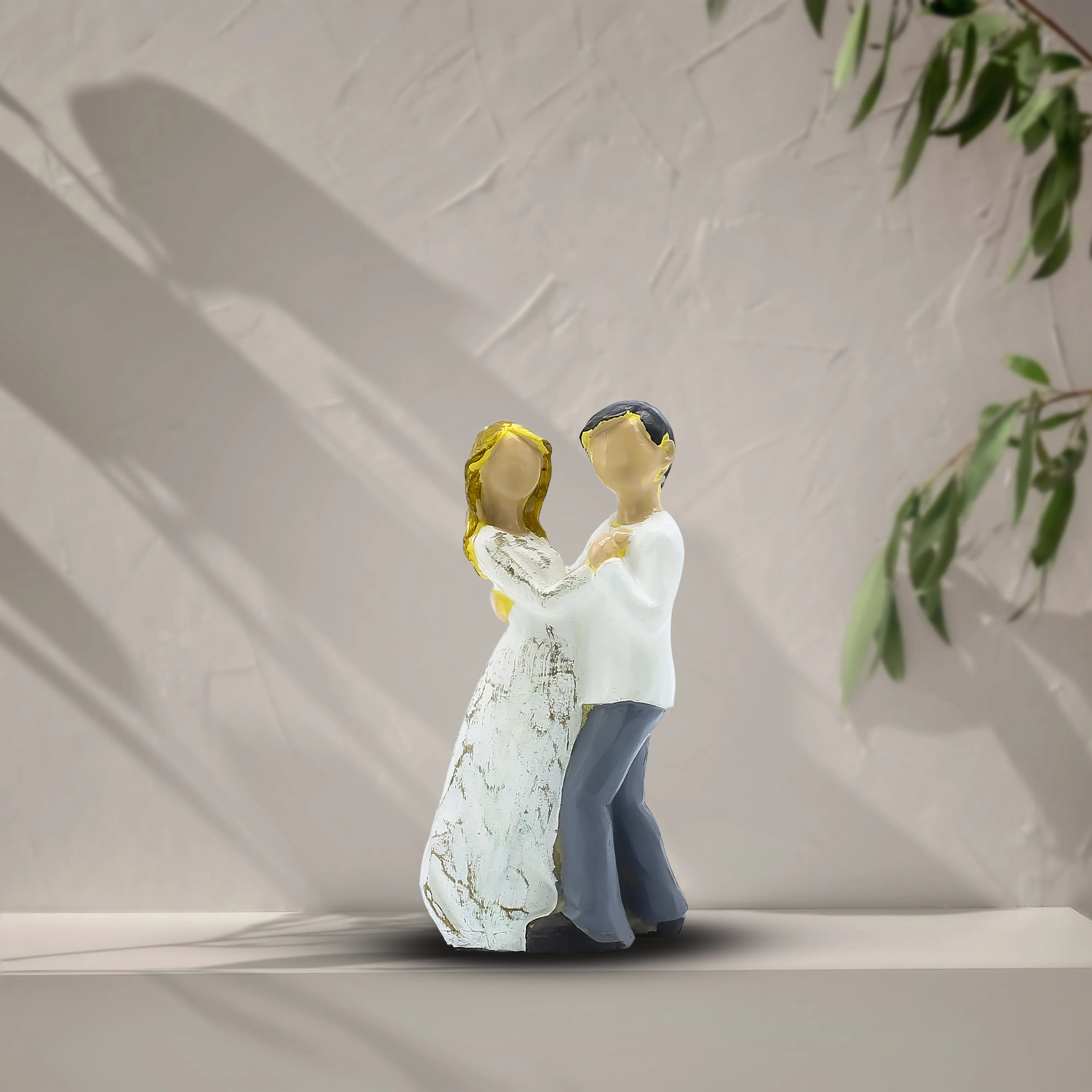 Artistic Design & Emotion The sculpture captures a couple in a standing embrace, often interpreted as a slow dance or a comforting hug after a long day.