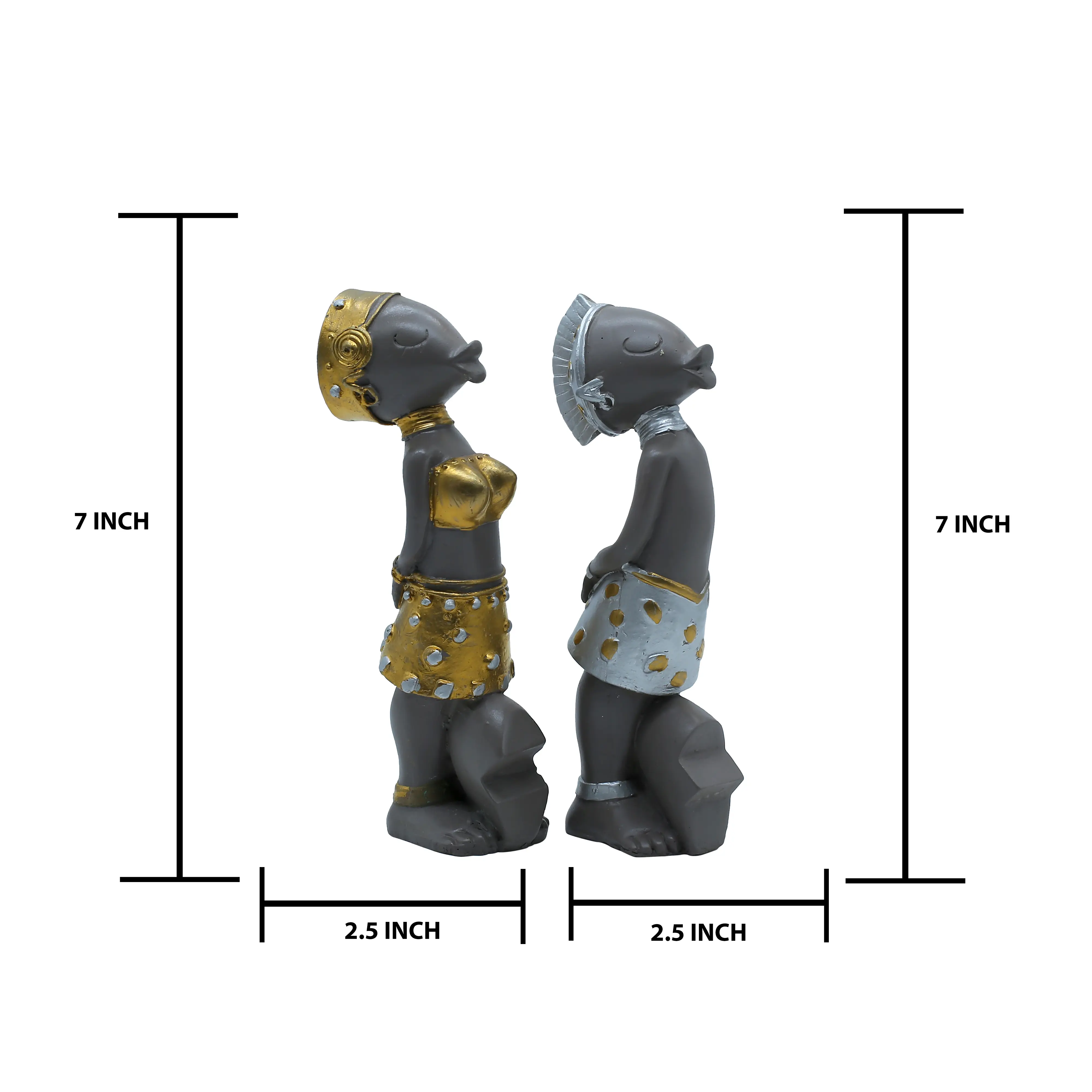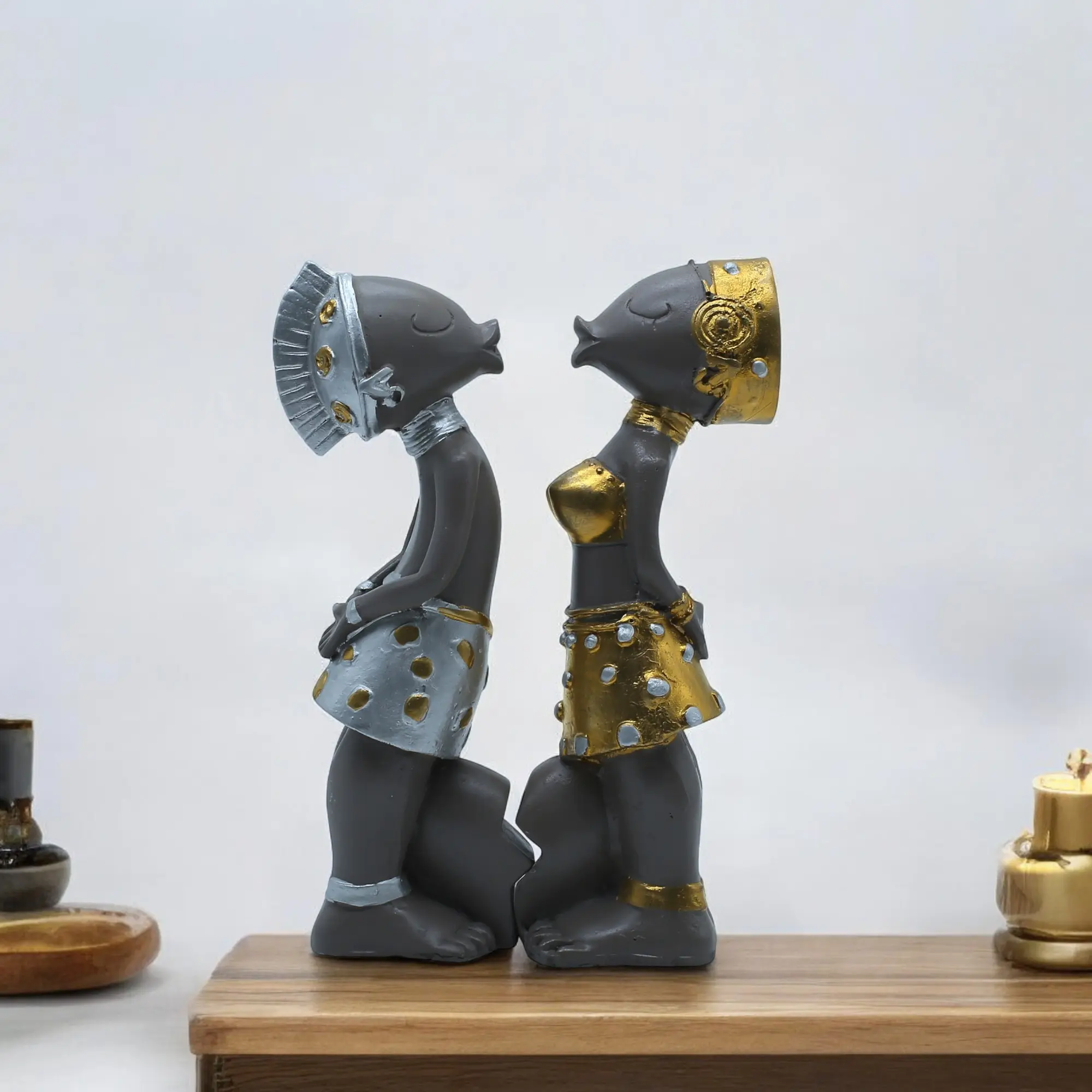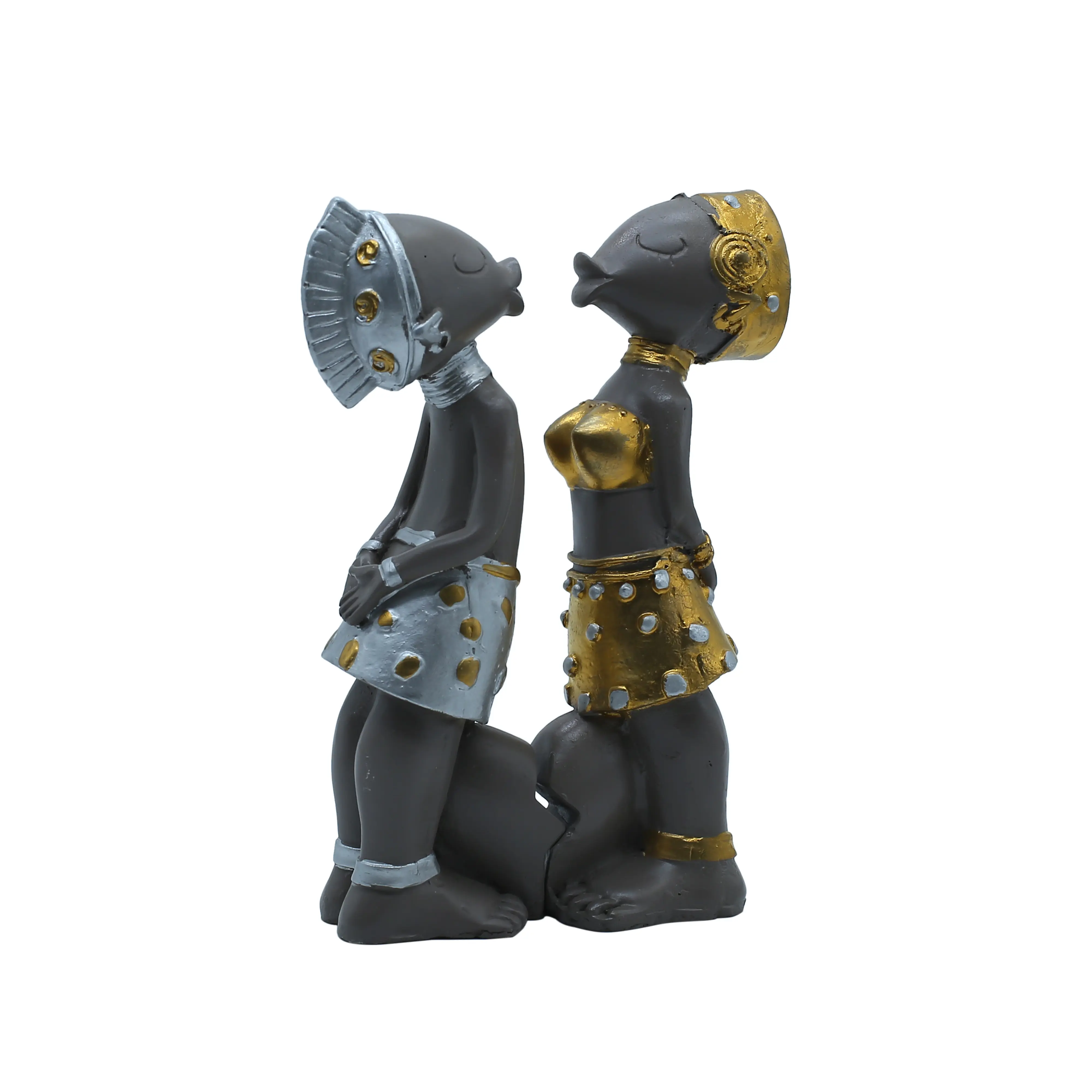 Infuse your home with the warmth of romance and the beauty of ethnic art with our Romantic African Tribal Couple Kissing Statues. This exquisite set of two figurines is designed to be more than just a decoration; it is a symbol of love, partnership, and harmony. The unique design features two separate statues—a man and a woman—sculpted in a playful and intimate leaning pose, puckering up for a sweet kiss. When placed together, they create a cohesive and heartwarming scene that instantly draws the eye.
