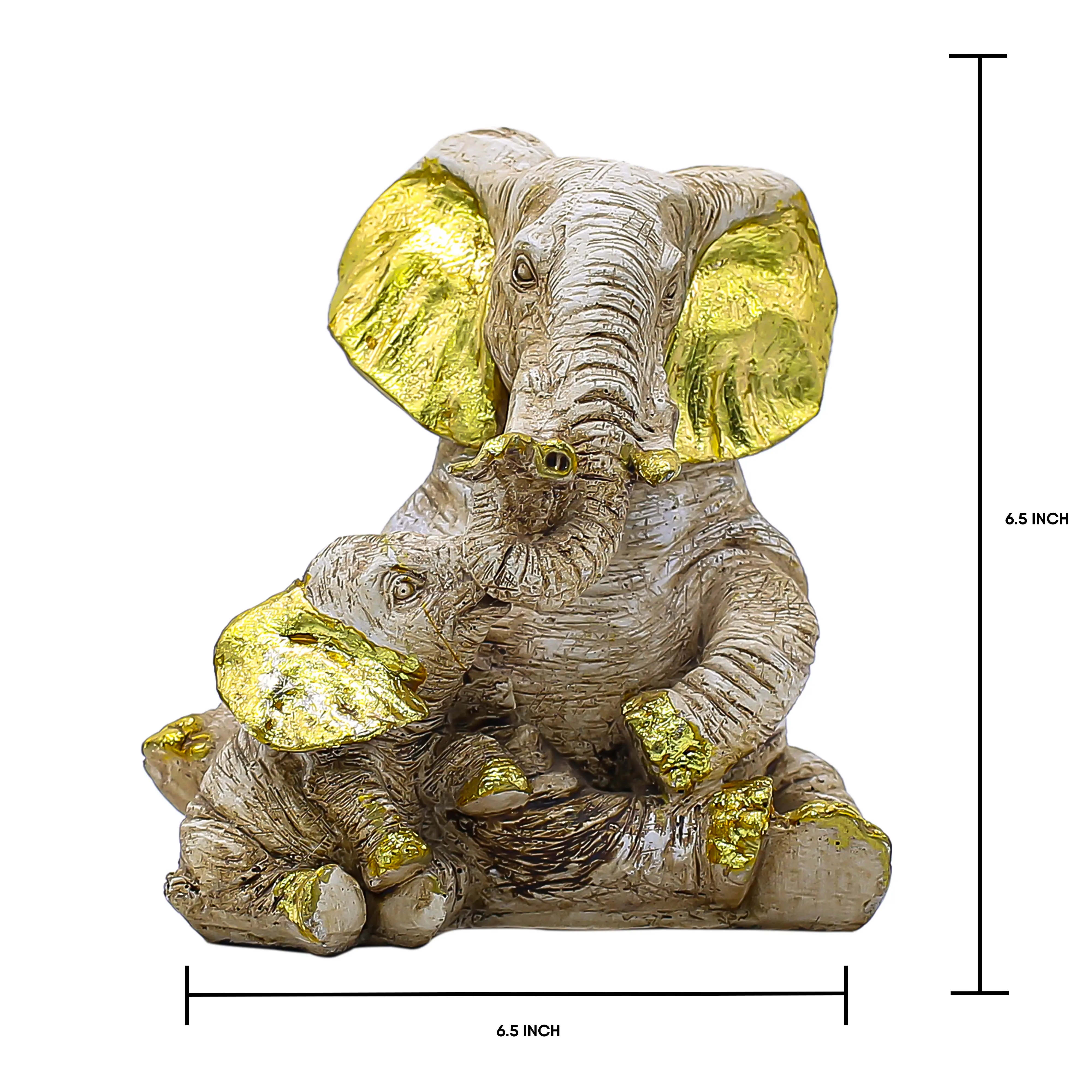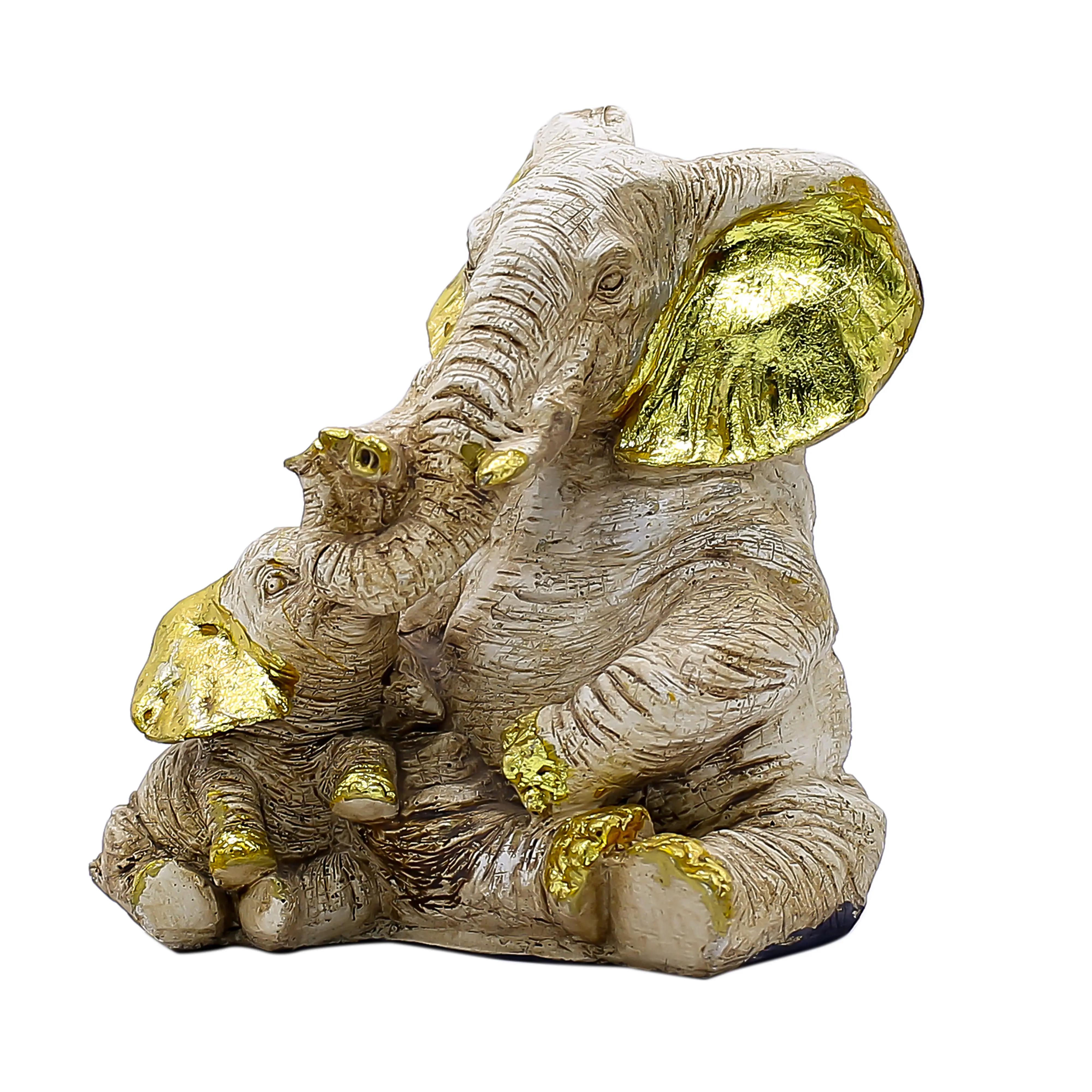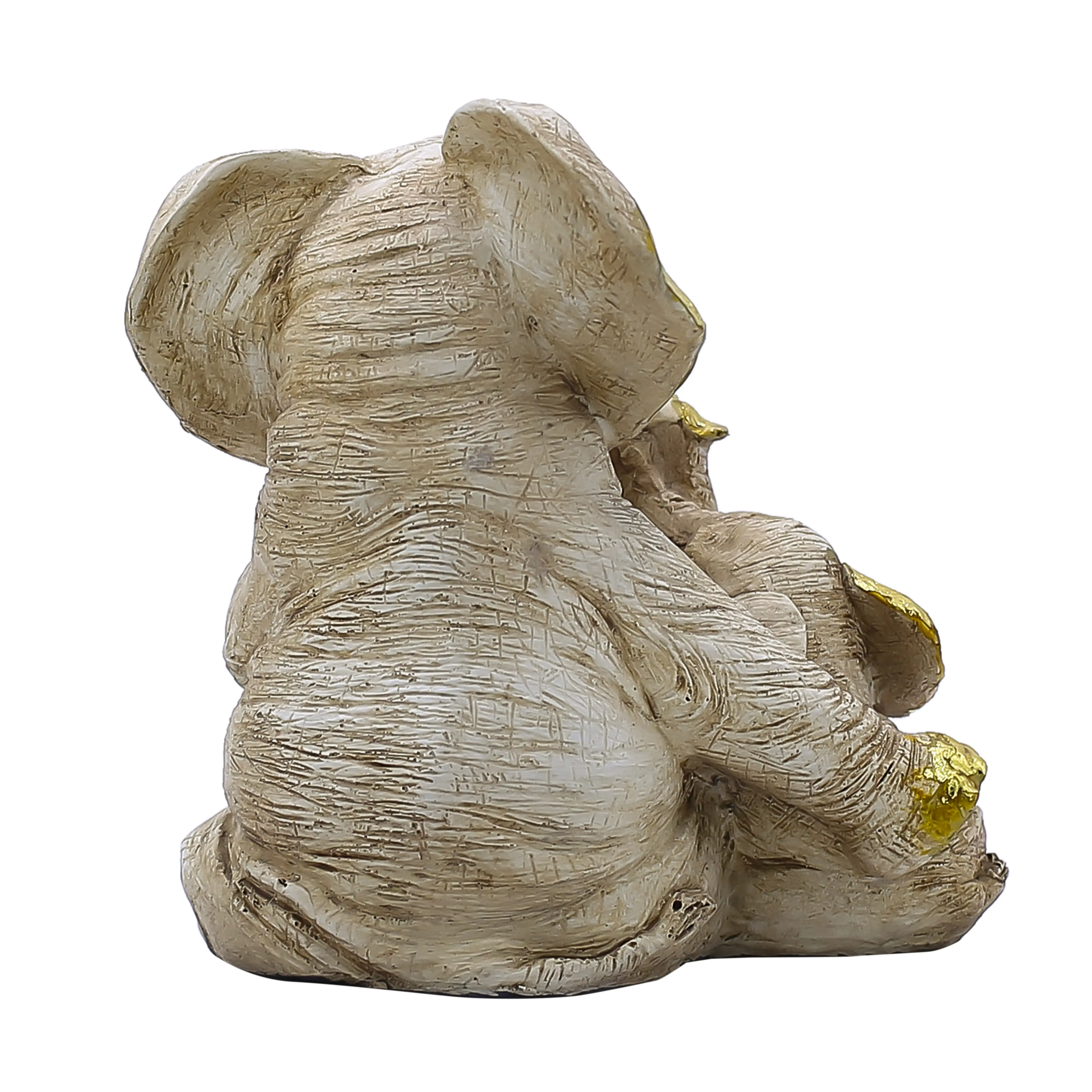 Artistic Design Meets Premium Quality Meticulously cast from high-grade polyresin, this statue offers the durability you need with the artistic finish you desire. Unlike mass-produced plastic items, this piece features a tactile, textured surface that resembles antique ivory or weathered stone. The calm, cream base color allows it to blend seamlessly with various color palettes, from neutral minimalist homes to vibrant traditional Indian interiors. The Gold Leaf style detailing on the large ears and tusks catches the light, drawing the eye and adding a rich, opulent feel without being overpowering.