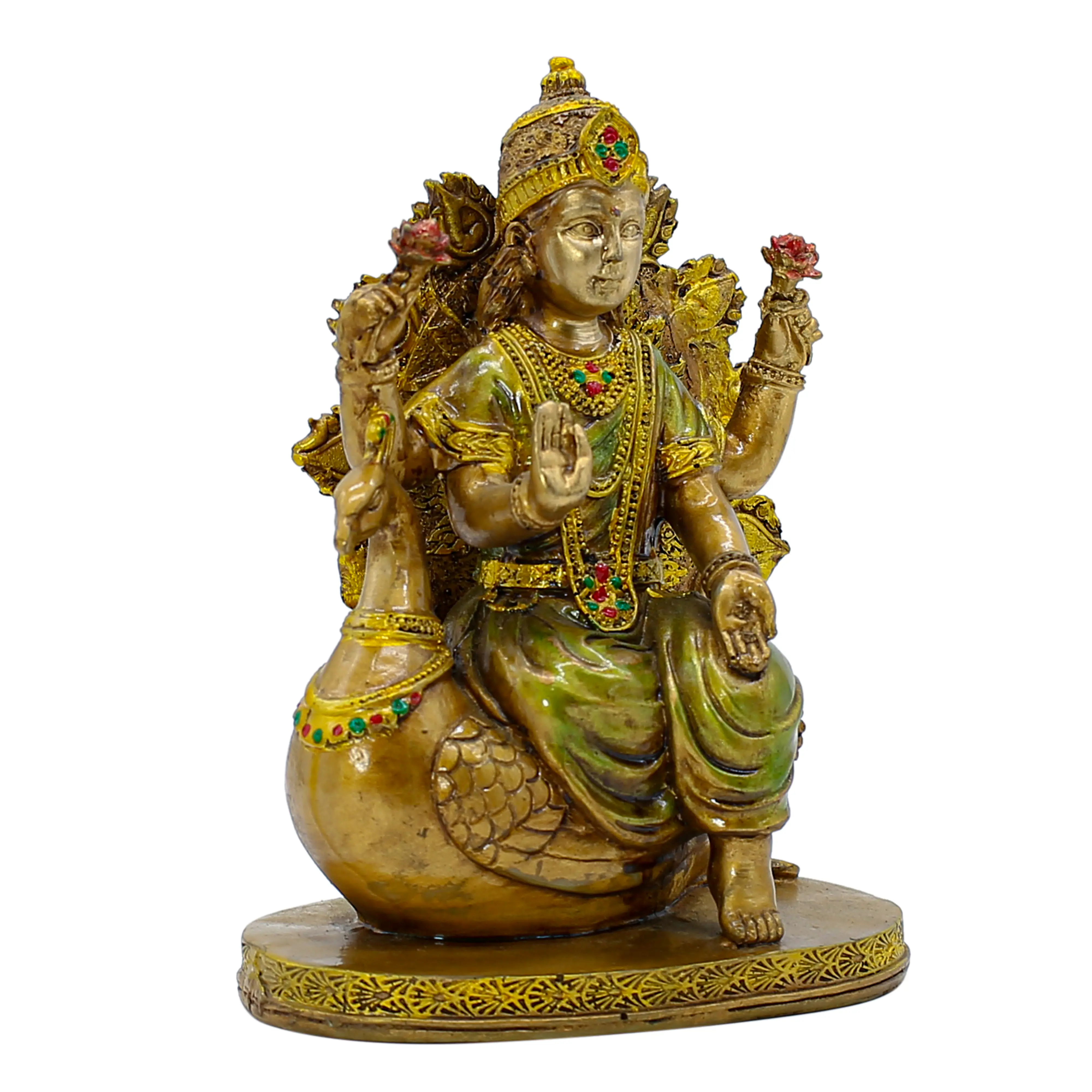Bring home a masterpiece of spiritual artistry with our Handcrafted Goddess Lakshmi on Swan Statue. While Goddess Lakshmi is traditionally associated with elephants or owls, depictions of her seated on a Swan (Hamsa) are revered for symbolizing "Satvic" (pure) wealth—prosperity earned through righteousness and wisdom. The swan, known for its ability to separate milk from water, represents the ability to choose good over evil, making this idol a profound addition to any household.