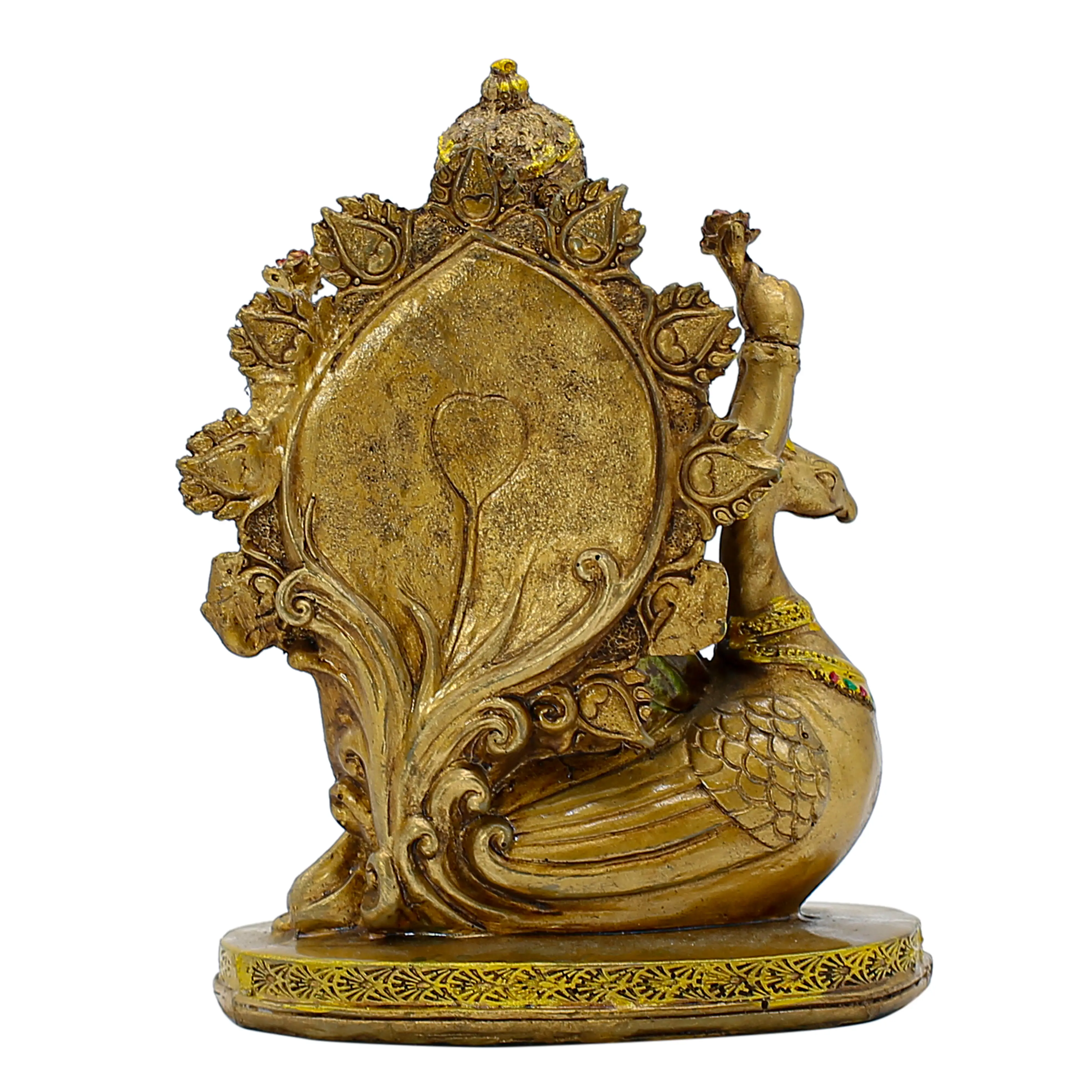 The Mount: The swan is not just a base but a character in itself, with detailed carving on its neck and wings. The tail feathers of the bird rise up behind the goddess, creating a natural, throne-like aura that frames her divine form.