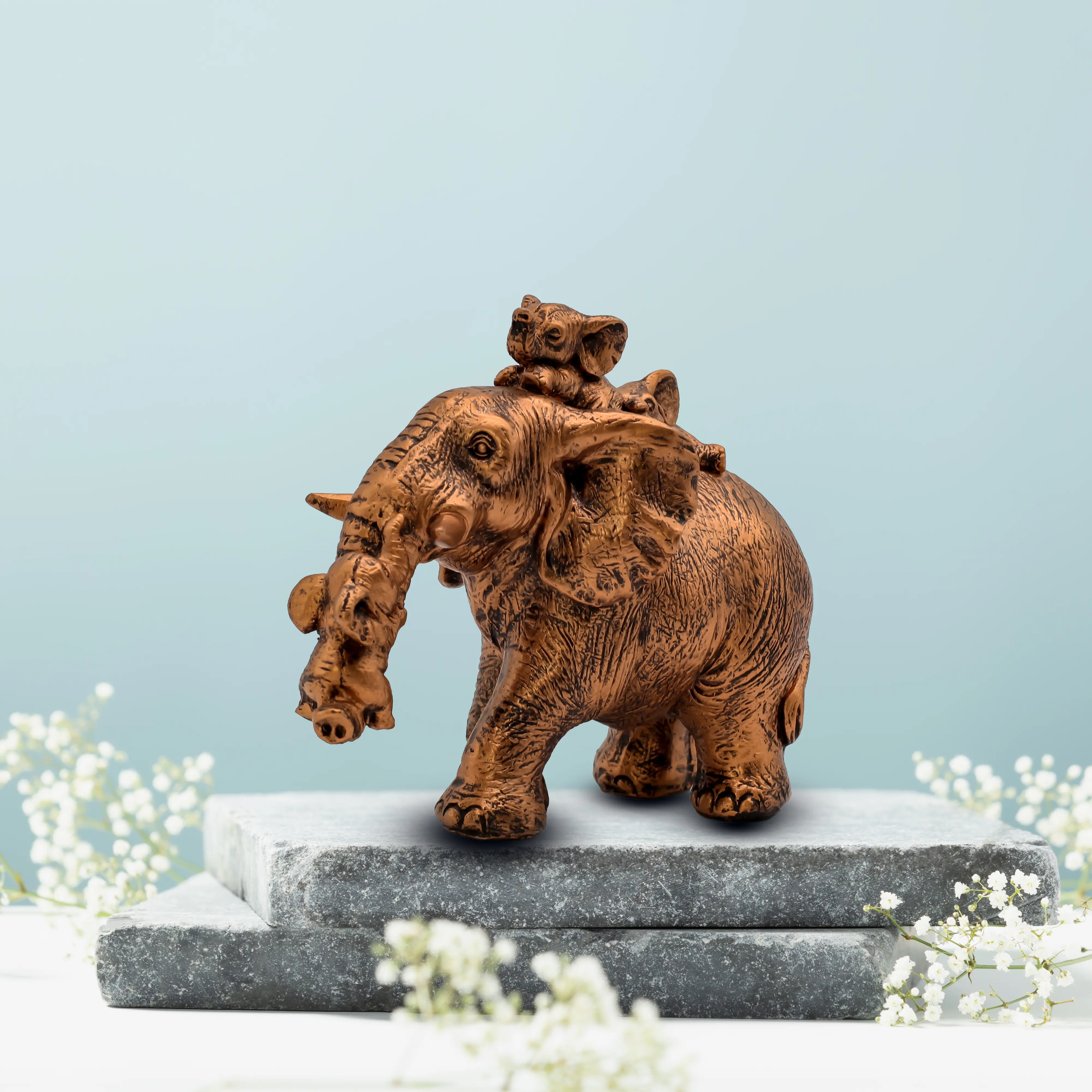 If you are looking for a piece of decor that captures the beautiful chaos of raising a family, look no further than our Antique Gold Elephant Family Figurine. While many elephant statues depict a solemn march, this one is bursting with joy, interaction, and personality. It tells a story of a mother’s endless love (and patience!) for her little ones.