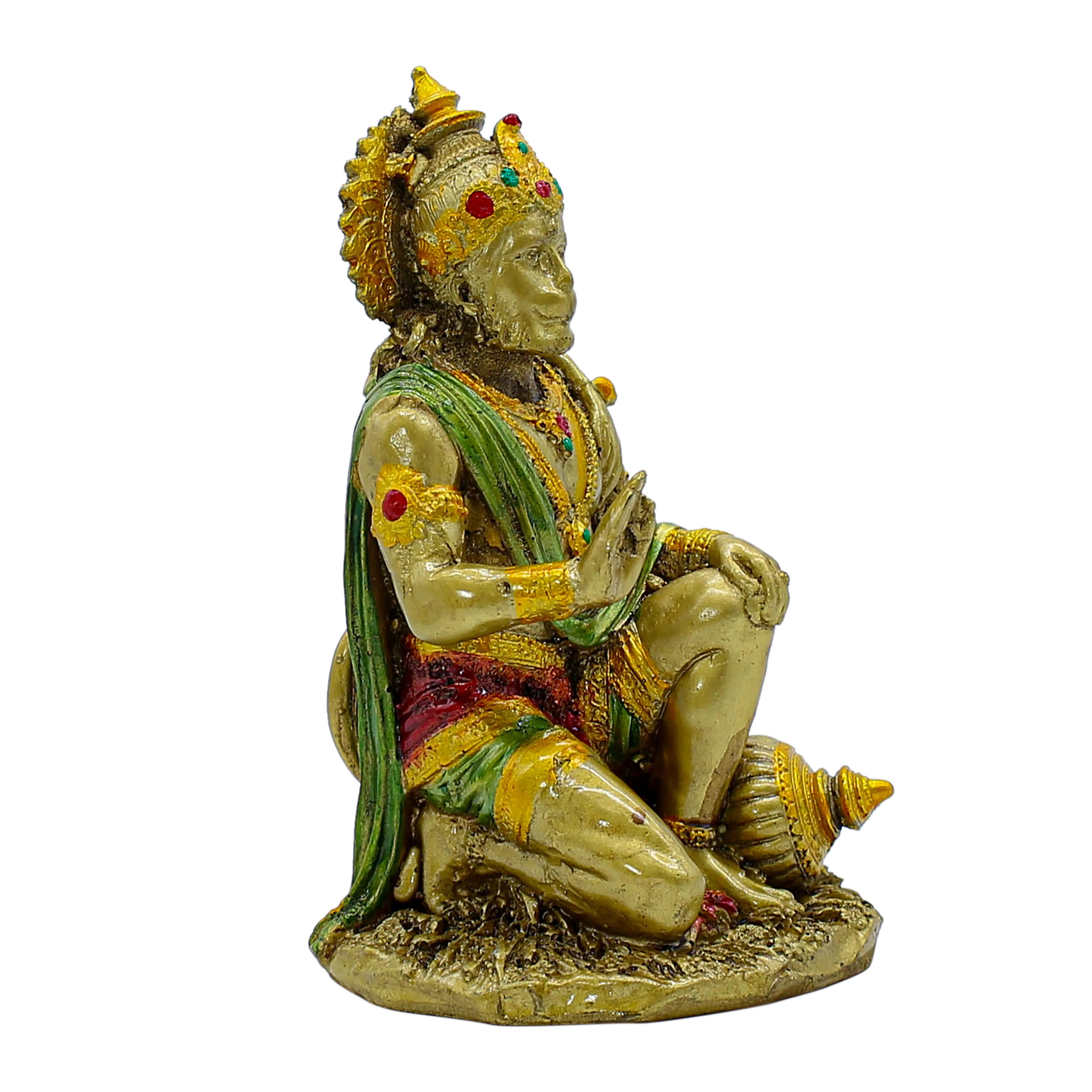 Lord Hanuman, the son of the Wind God (Pavan Putra) and the ultimate devotee of Lord Rama, is revered across the world as a symbol of strength, courage, and selfless service. This Handcrafted Resin Hanuman Statue beautifully encapsulates these virtues, presenting the deity in a serene yet powerful avatar.