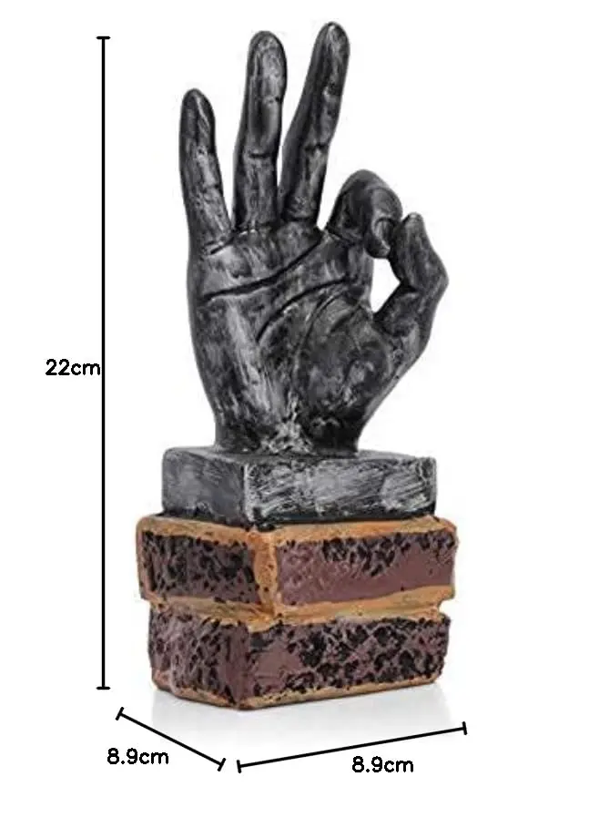 Add a dash of optimism and modern art to your workspace with our Antique Silver 'OK' Hand Gesture Statue. In a world full of stress, this little figurine stands as a constant visual reminder that everything is under control. The sculpture realistically captures the human hand in the "Okay" pose—thumb and index finger connecting, with three fingers raised—a universal language for "Superb" or "Done." Crafted from durable polyresin, the statue features a rugged, distressed finish that gives it an industrial, artistic look rather than a shiny, toy-like appearance. The contrasting brown brick-style base adds a rustic charm, making it compatible with vintage, industrial, or contemporary decor themes. Whether used as a functional paperweight or a decorative shelf sitter, this "OK" sign brings a cool, confident vibe to your personal space.