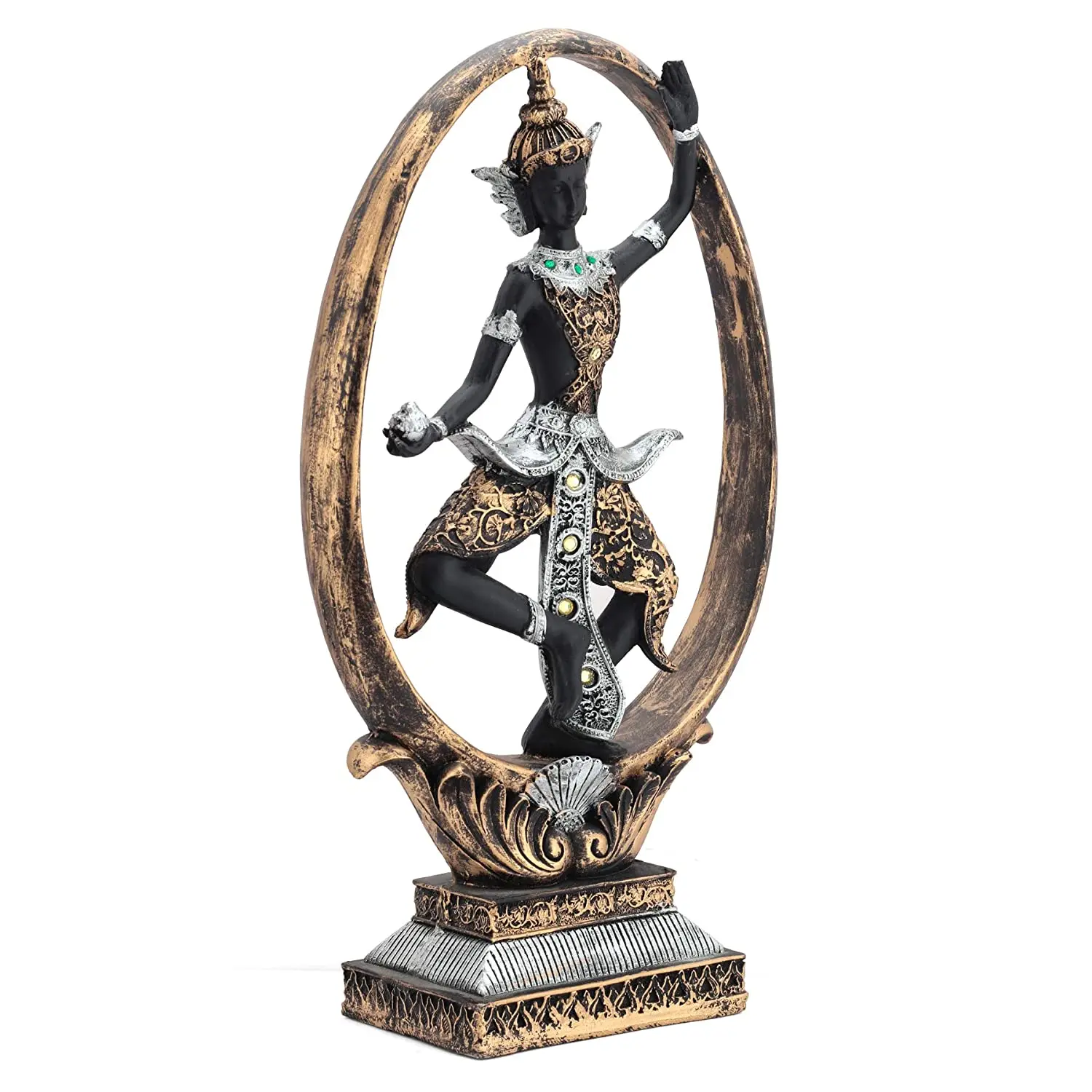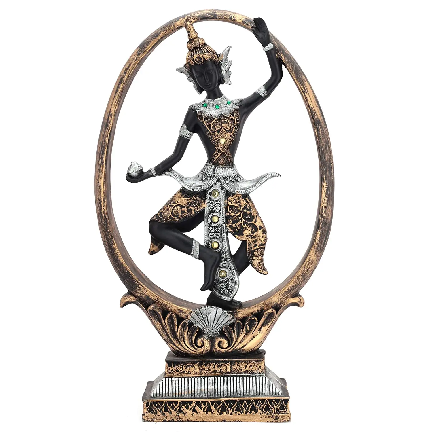 Superior Material & Design Crafted from premium quality polyresin, this statue offers the weight and durability needed for a lasting home accessory. Unlike fragile ceramic, polyresin allows for incredible detail in the molding process. You can clearly see the intricate patterns on the dancer’s skirt, the delicate curves of the fingers, and the ornate texture of the headdress. The statue is encased in a rustic, textured oval ring, which acts as a visual "halo," drawing the eye directly to the center figure.