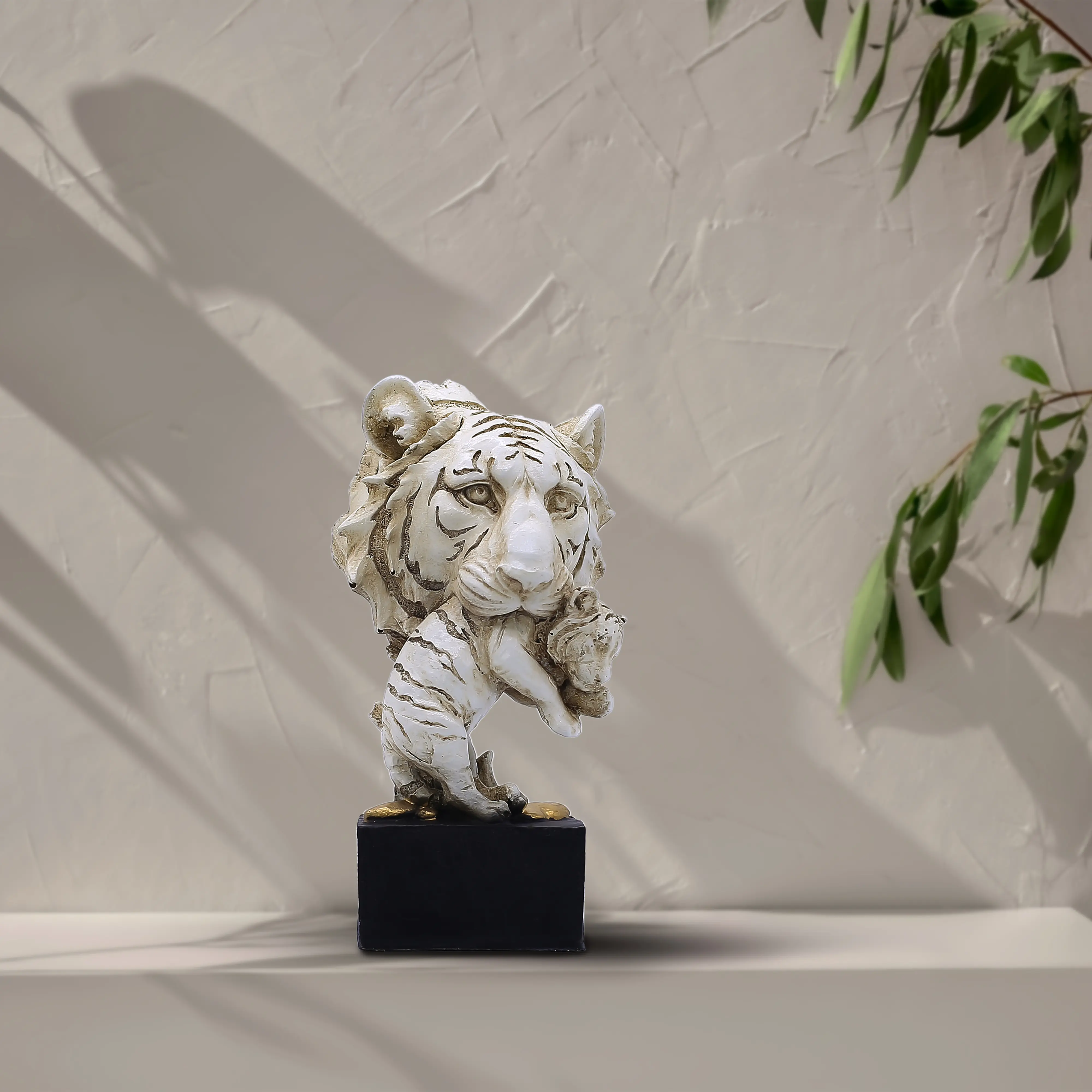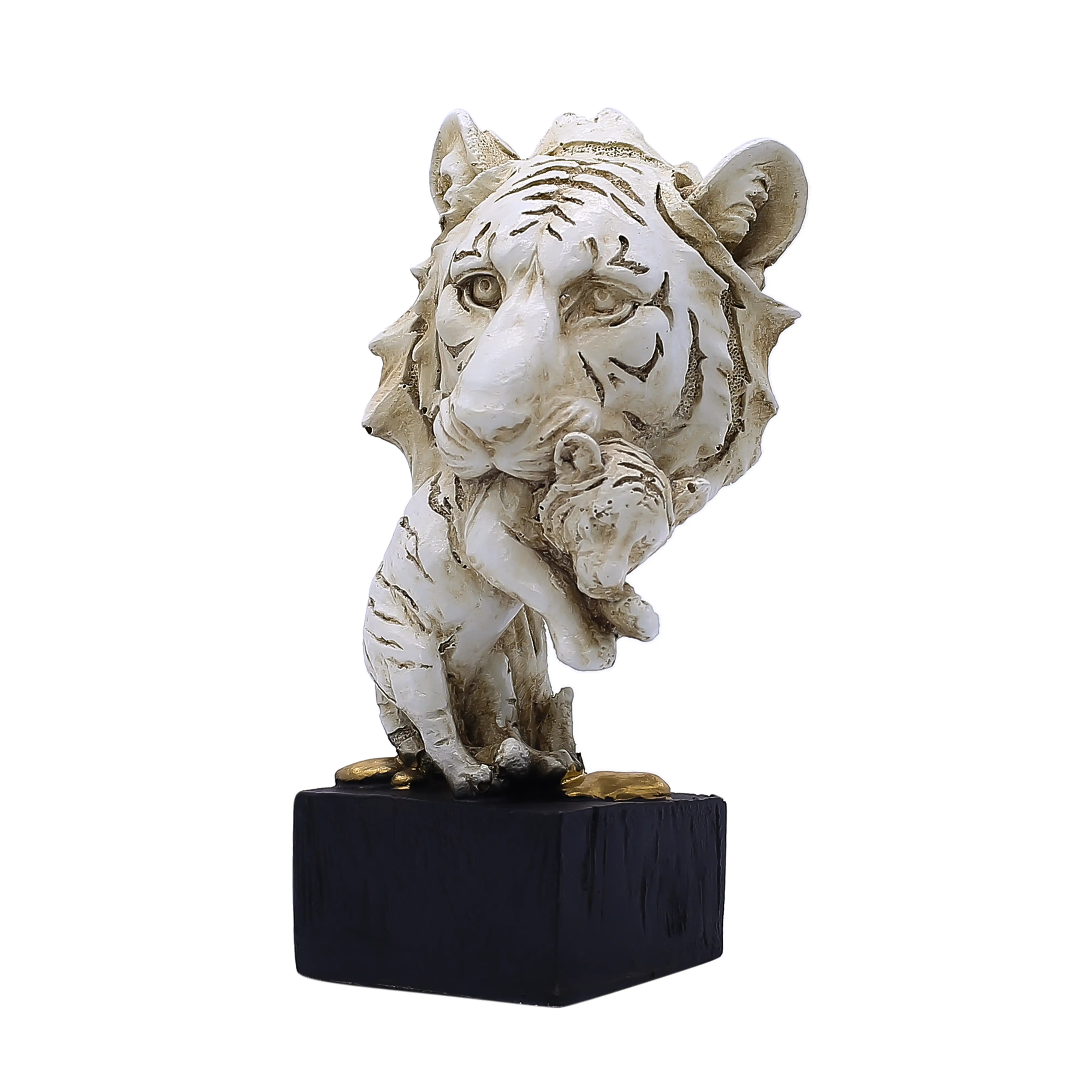 The tiger is a symbol of ferocity and independence, but to her cubs, the tigress is a sanctuary. Our Antique White & Gold Tiger Bust Carrying Cub celebrates this softer, protective side of the magnificent big cat. Designed for the discerning art lover, this piece moves beyond standard animal figurines to offer a gallery-worthy sculpture that fits perfectly in modern and traditional homes alike.