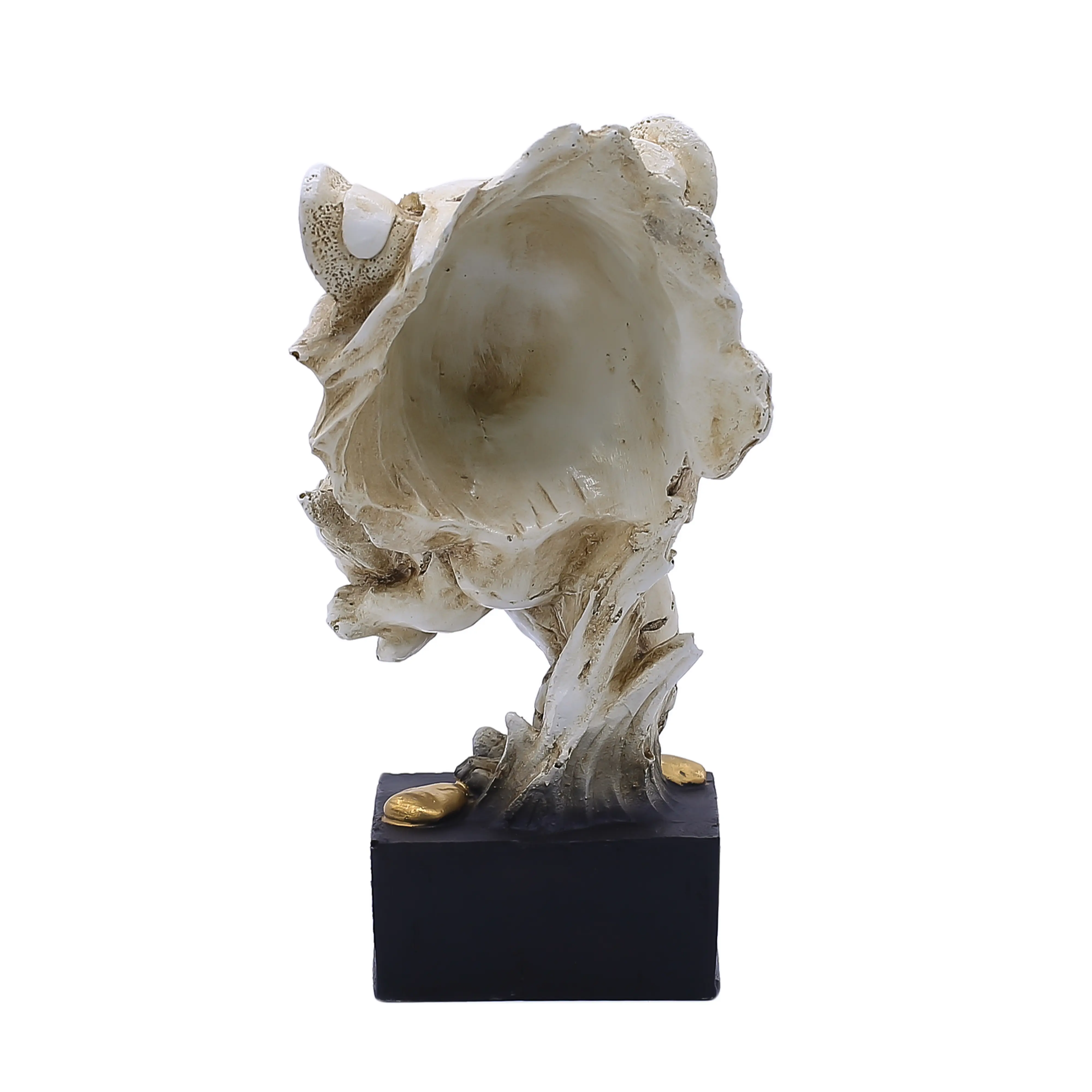 The Base: The sculpture rises from a sleek, matte black block base. This not only provides stability but also elevates the piece visually, giving it the presence of a classic museum artifact.