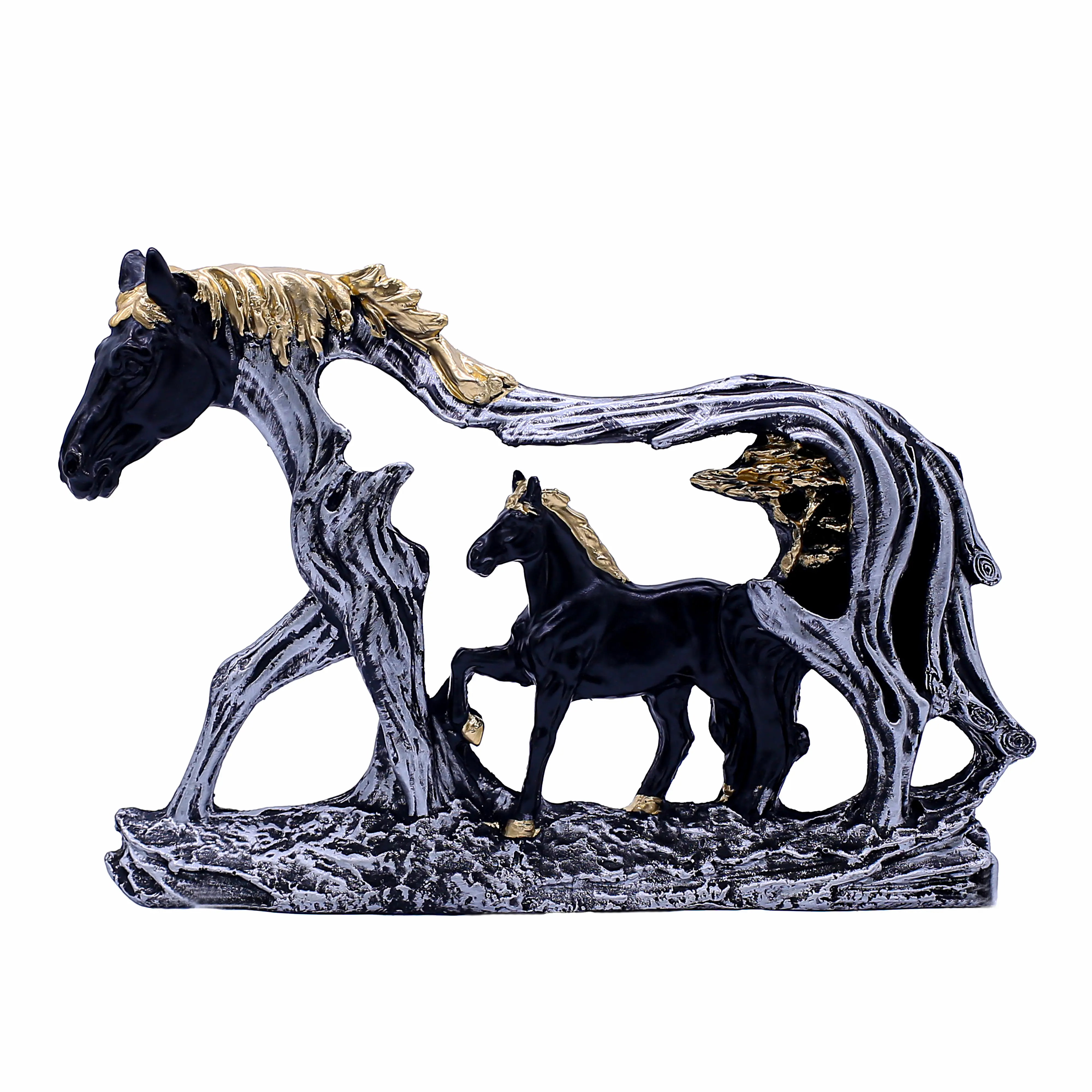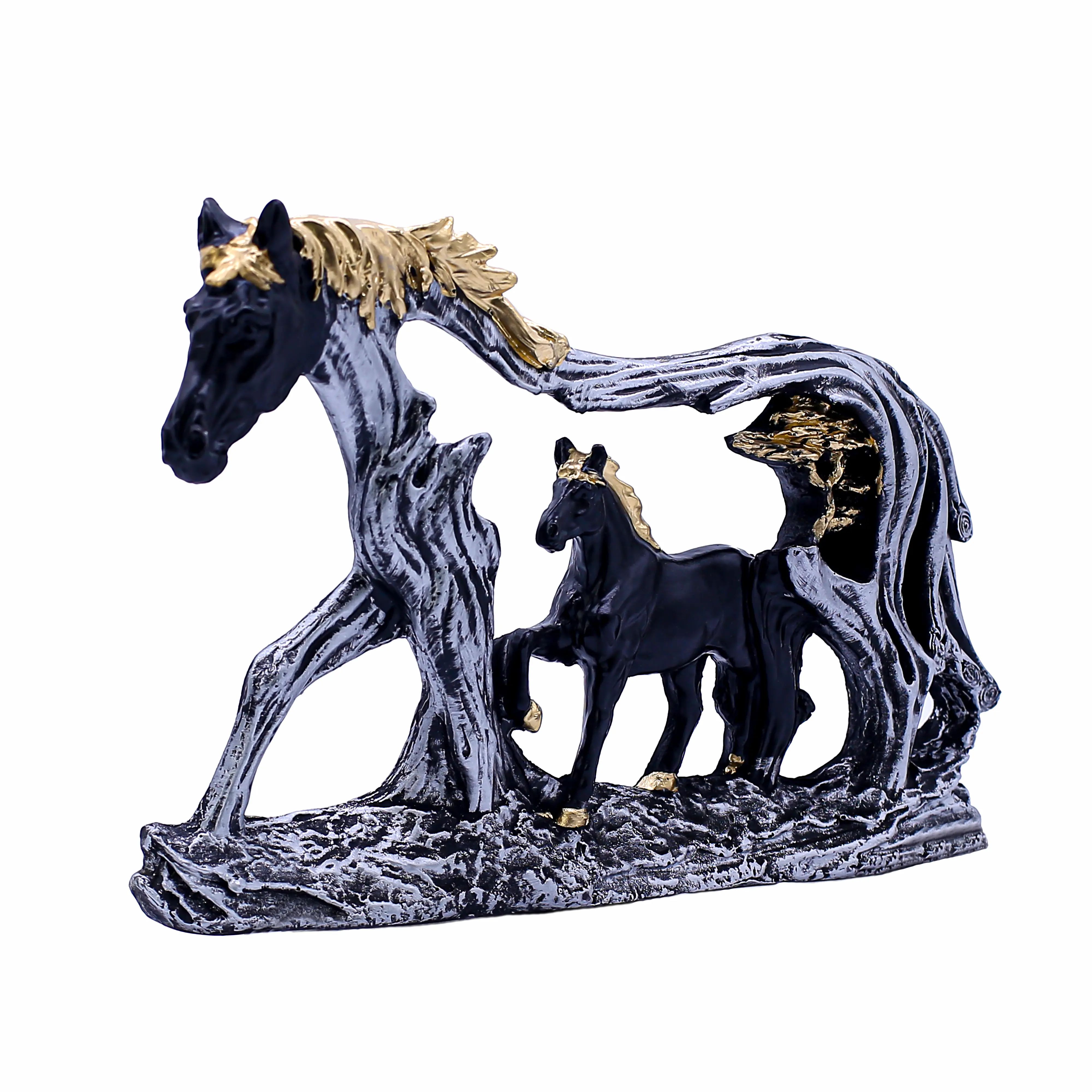 The Texture: The contrast between the smooth, matte black skin of the horses and the rough, etched texture of the silver "wood" creates a visual experience that begs to be touched.