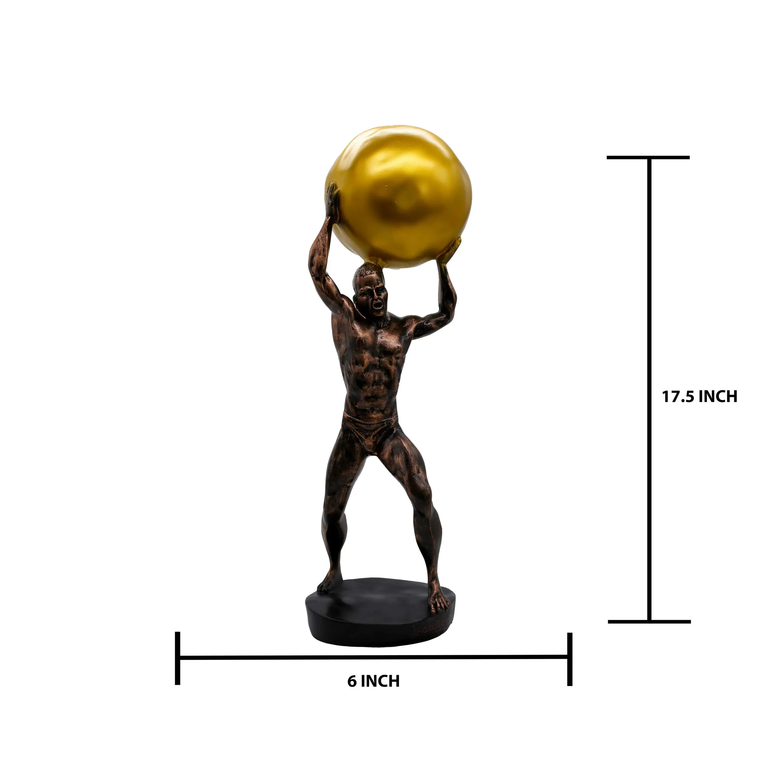 Transform your environment with a piece of art that embodies power, responsibility, and resilience. The "Atlas Carrying Golden Sphere" Resin Statue is more than just a decorative object; it is a visual narrative drawn from Greek mythology, brought to life with contemporary craftsmanship. This stunning sculpture depicts the Titan Atlas, condemned to hold up the celestial heavens for eternity, captured here in a moment of immense effort and unwavering determination.