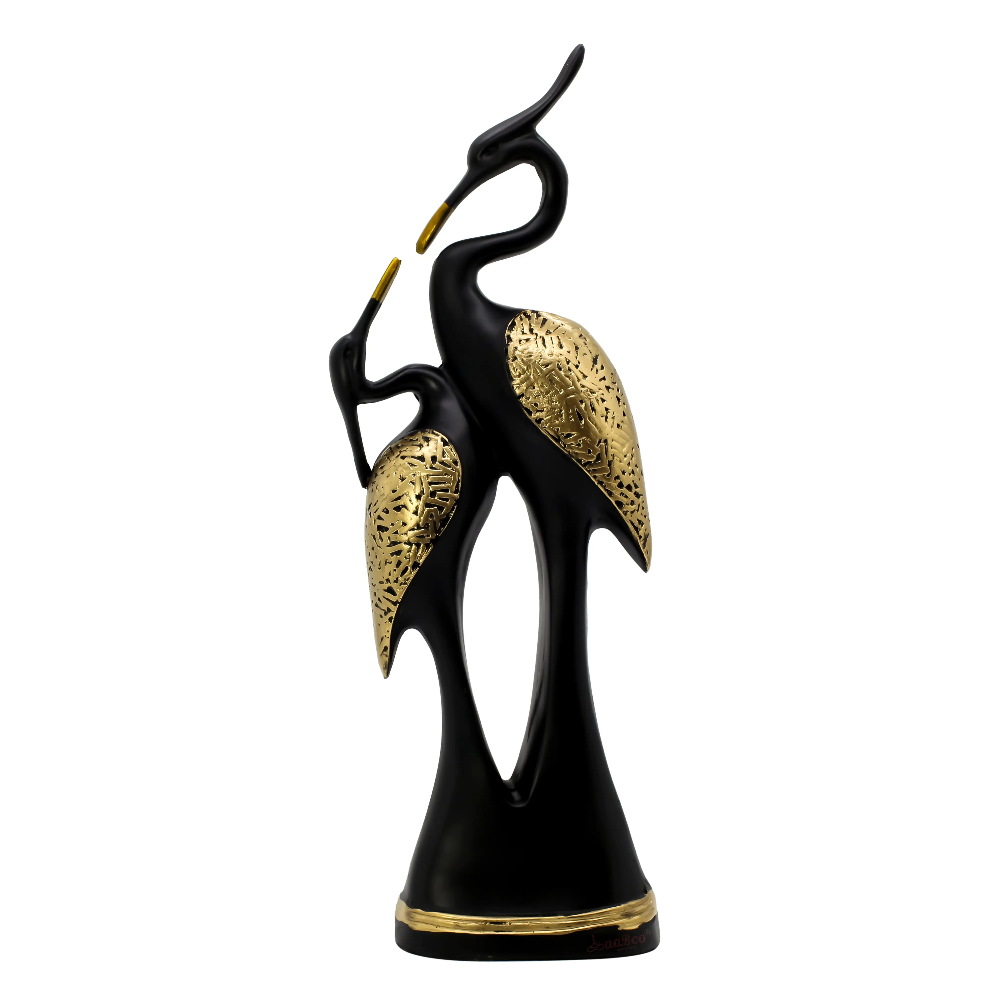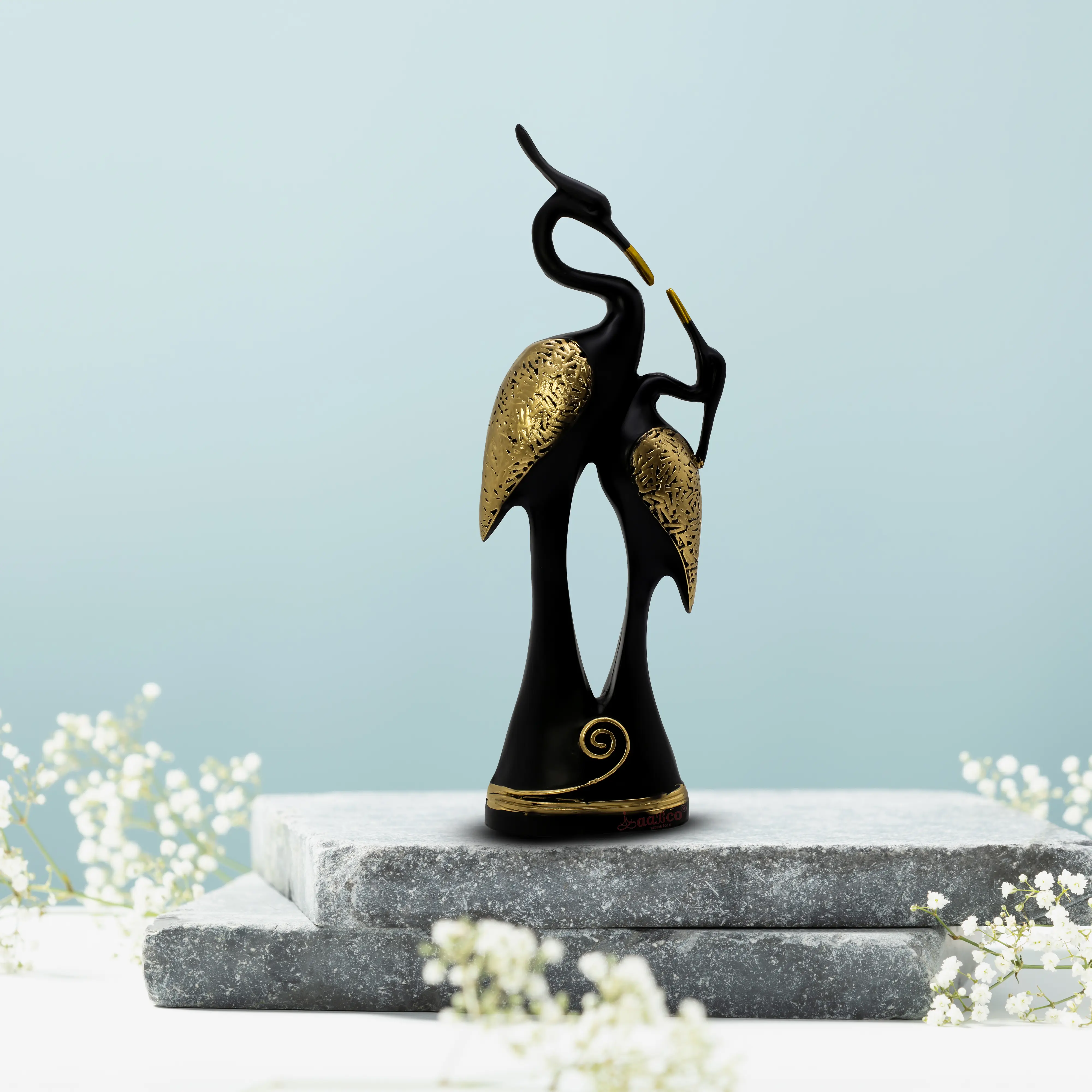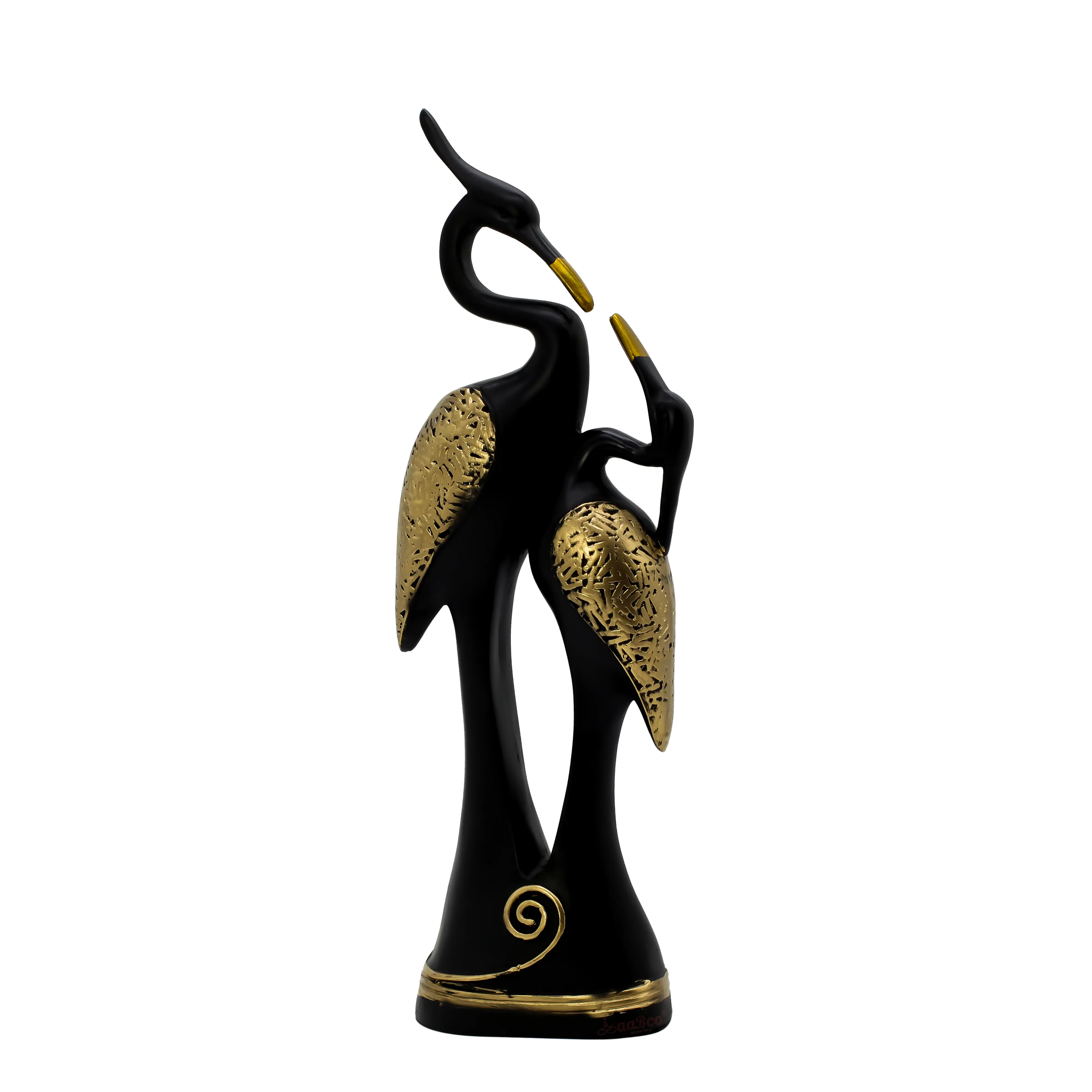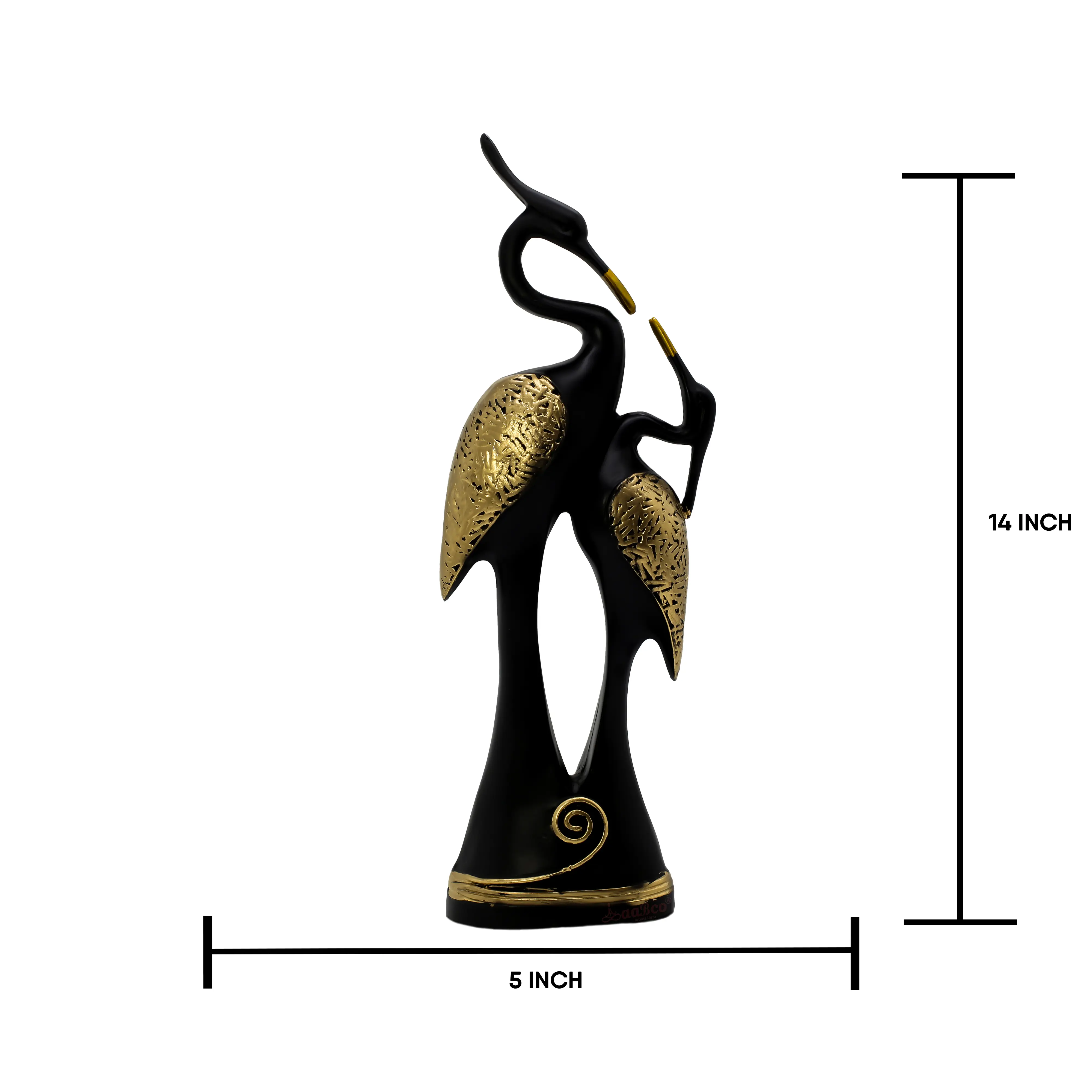 Bring elegance and artistic luxury to your space with this Black & Gold Abstract Bird Couple Resin Showpiece. Featuring a sleek matte black finish with beautifully textured gold wings, this décor piece symbolizes love, unity, and harmony. Crafted from premium-quality resin, it offers durability along with a refined, high-end look. Its tall, modern sculptural design makes it perfect for living rooms, bedrooms, office desks, shelves, and console tables. The black and gold color combination adds a bold yet classy touch that complements modern, contemporary, and luxury interiors effortlessly. Ideal for weddings, anniversaries, housewarming functions, festive gifting, or corporate gifts, this bird couple statue reflects sophisticated taste and timeless beauty. Easy to clean and long-lasting, it is a perfect décor accent for stylish homes and premium spaces.