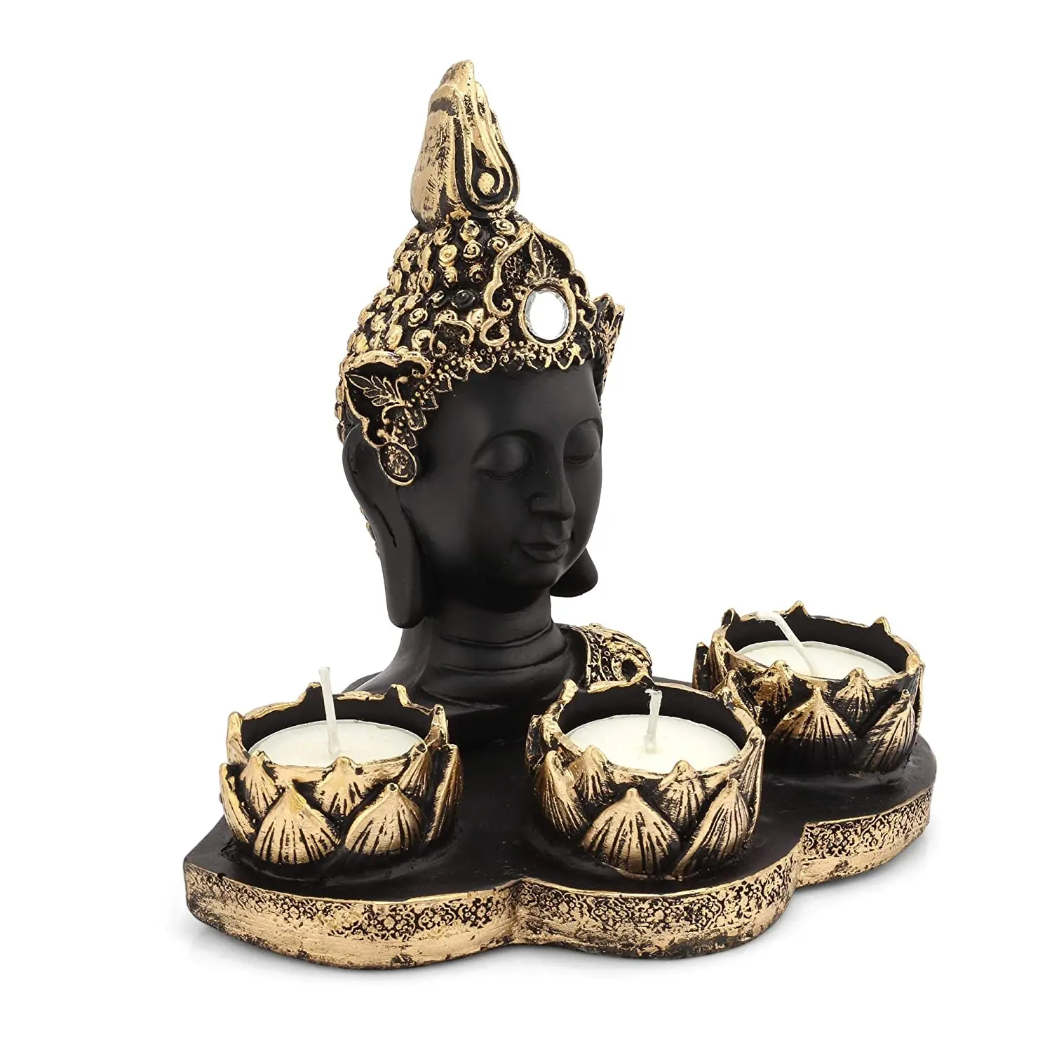 Bring Light and Serenity Home: The Black & Gold Buddha Tealight Holder