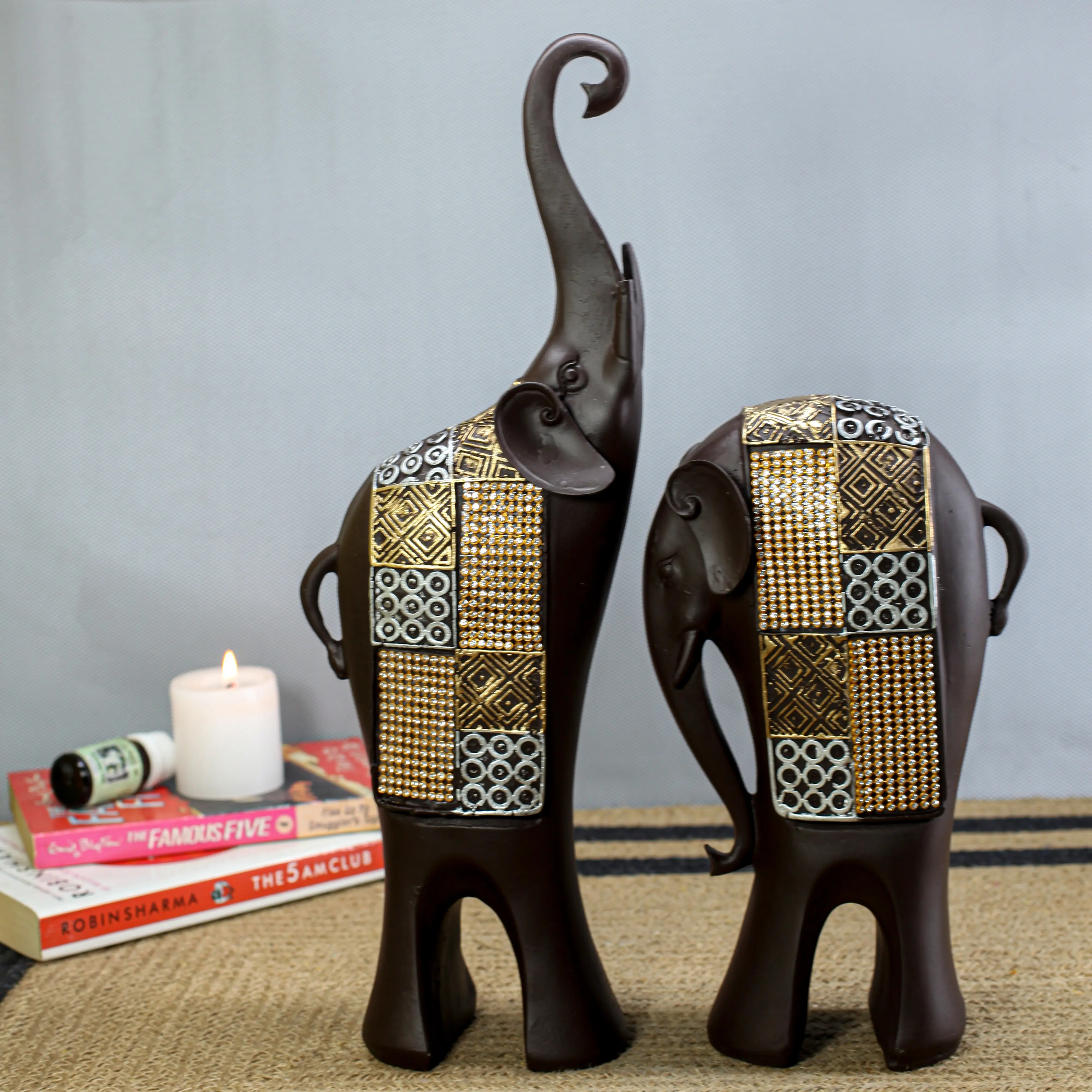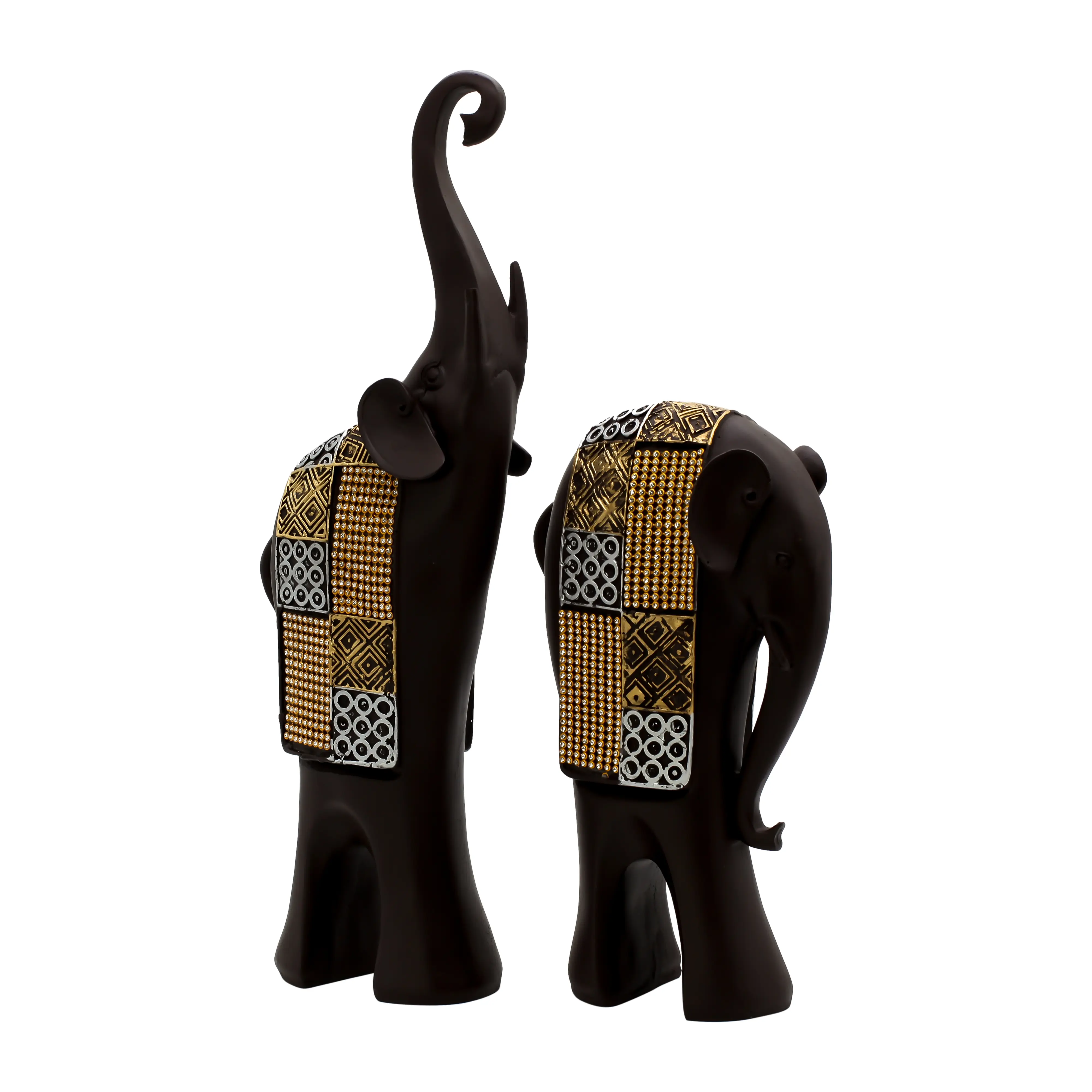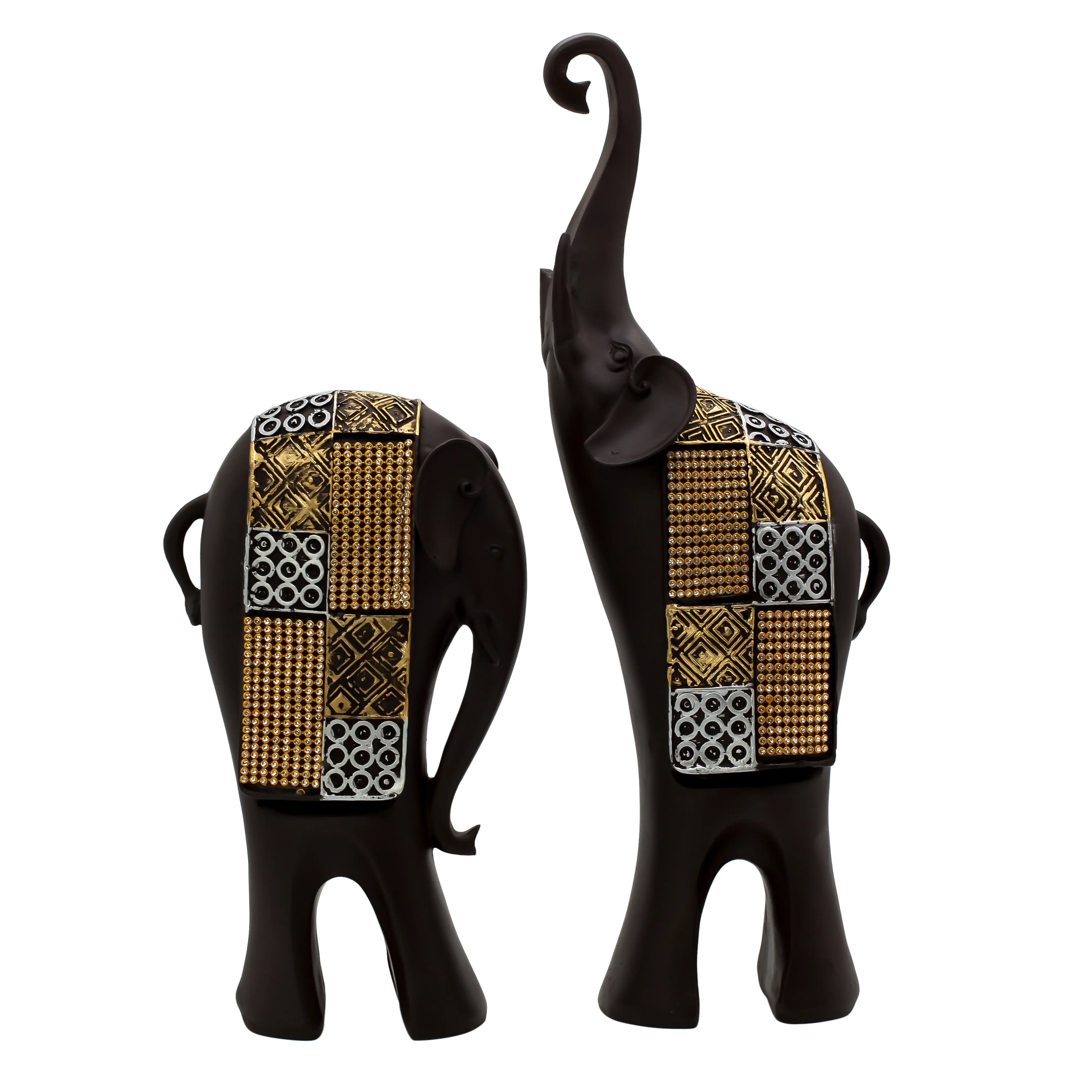 Bring home this Black & Gold Patchwork Elephant Pair Resin Showpiece to add charm, positivity, and sophistication to your space.