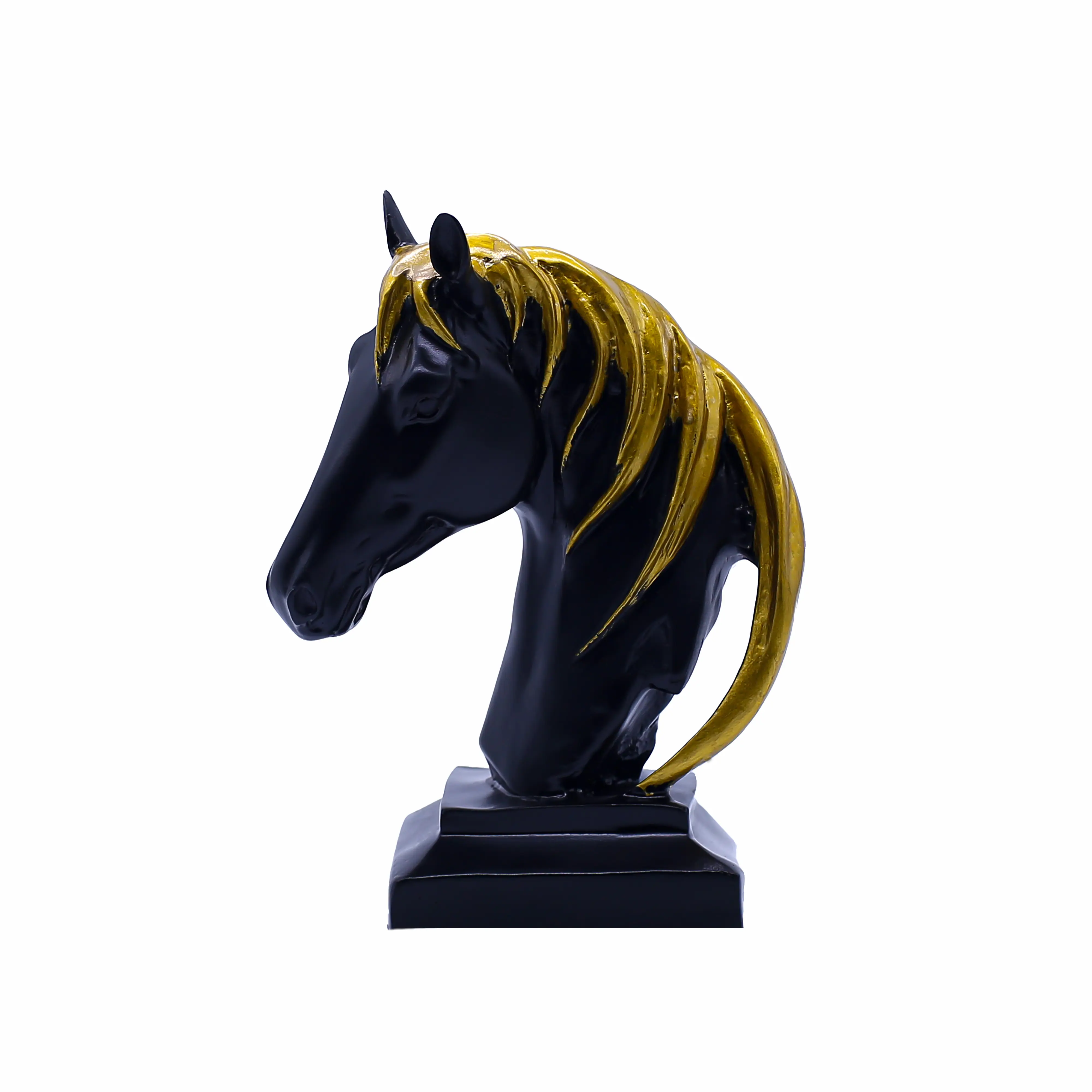 Premium black & gold horse head resin showpiece