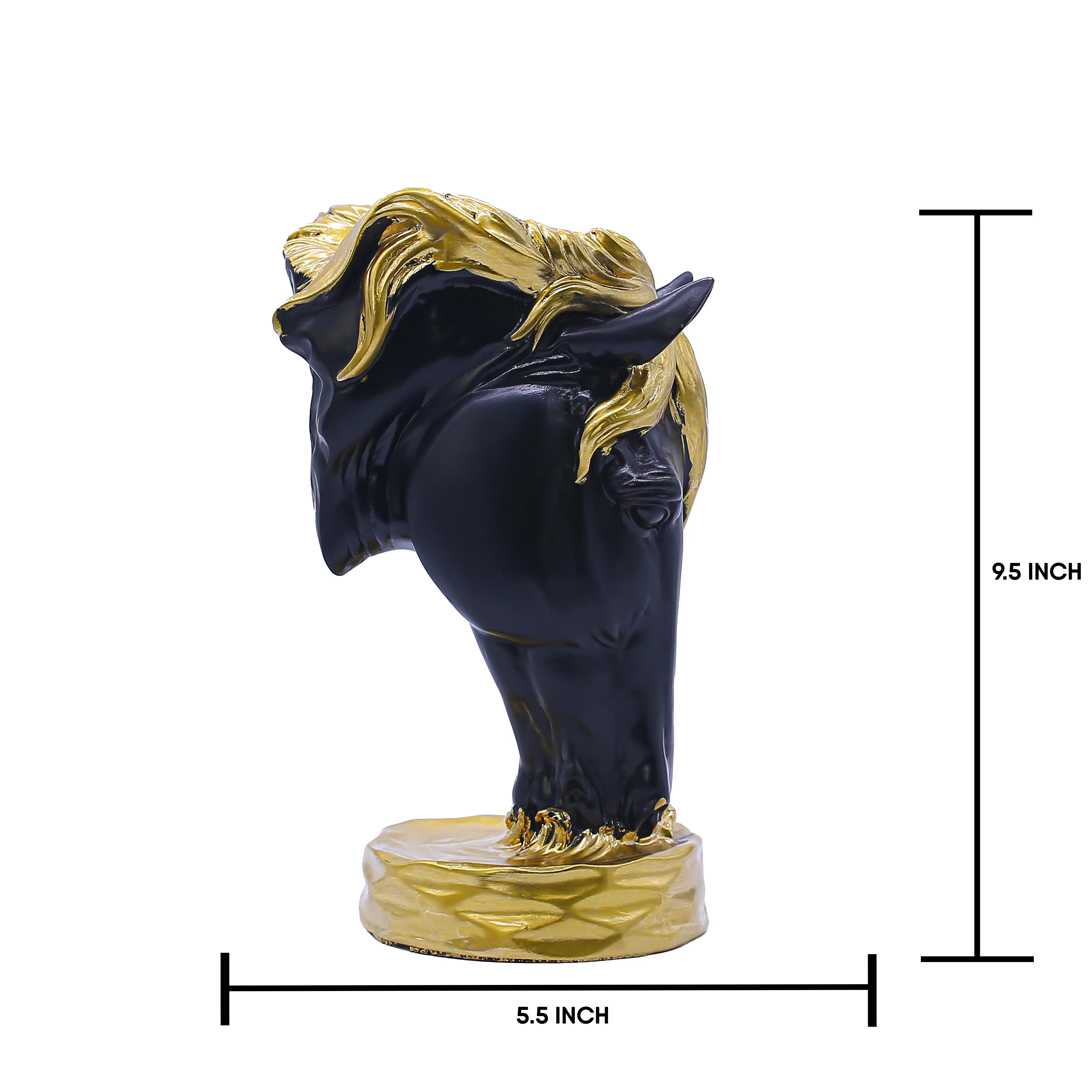 Artistry in Motion The most captivating feature of this statue is the sense of movement it conveys. The horse’s mane is sculpted in wild, flowing waves that sweep back from the face, coated in a lustrous gold finish that catches the light from every angle. This dynamic "windswept" look contrasts perfectly with the calm, stoic expression of the horse’s face, rendered in a smooth, premium black finish. It is a visual representation of "grace under pressure."