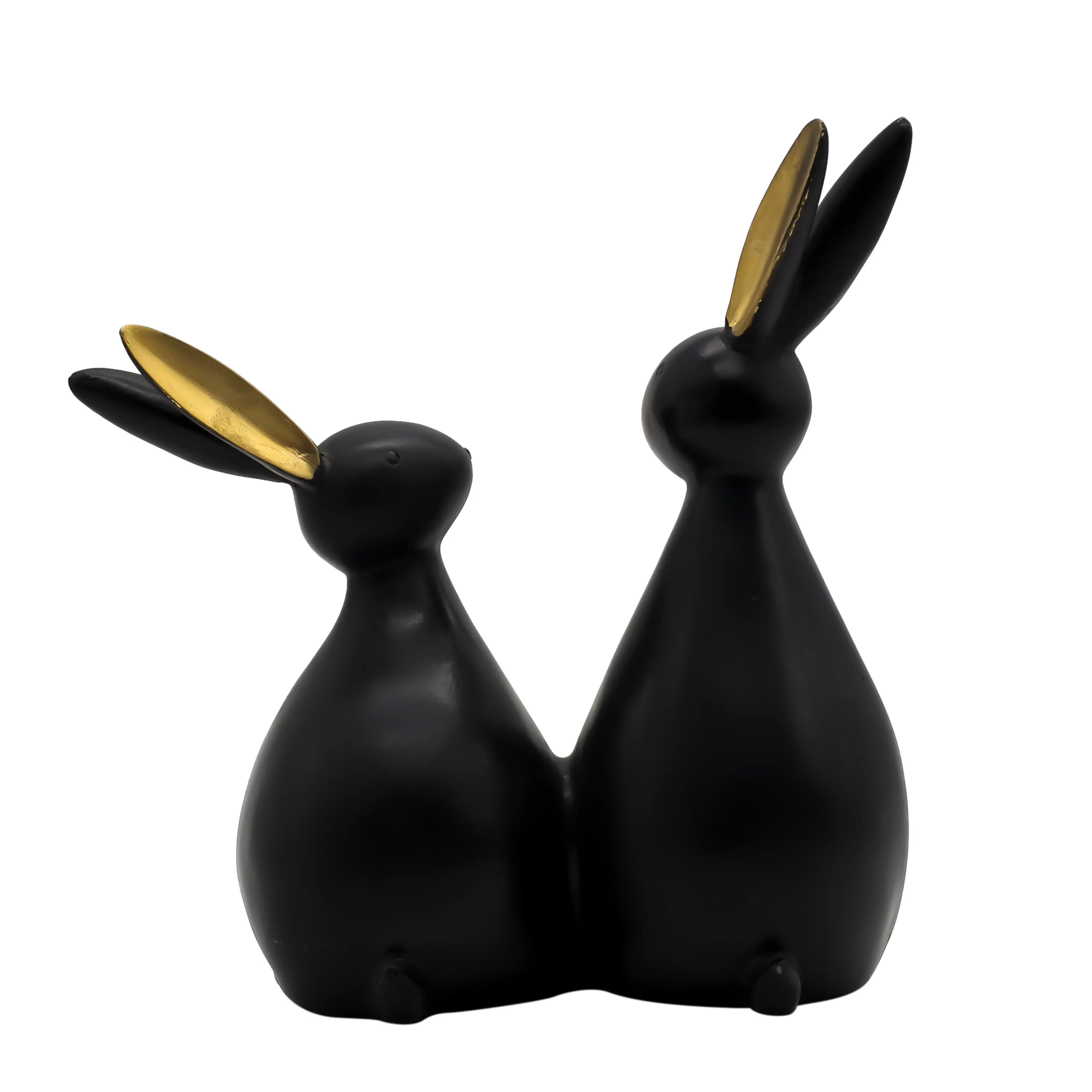 Rabbits are often associated with spring, renewal, and playfulness. Our Black & Gold Minimalist Rabbit Pair takes these positive symbols and elevates them into a piece of modern art. Gone are the fluffy textures and cute faces of traditional garden statues; in their place is a sleek, abstract silhouette that speaks to a more refined design aesthetic.