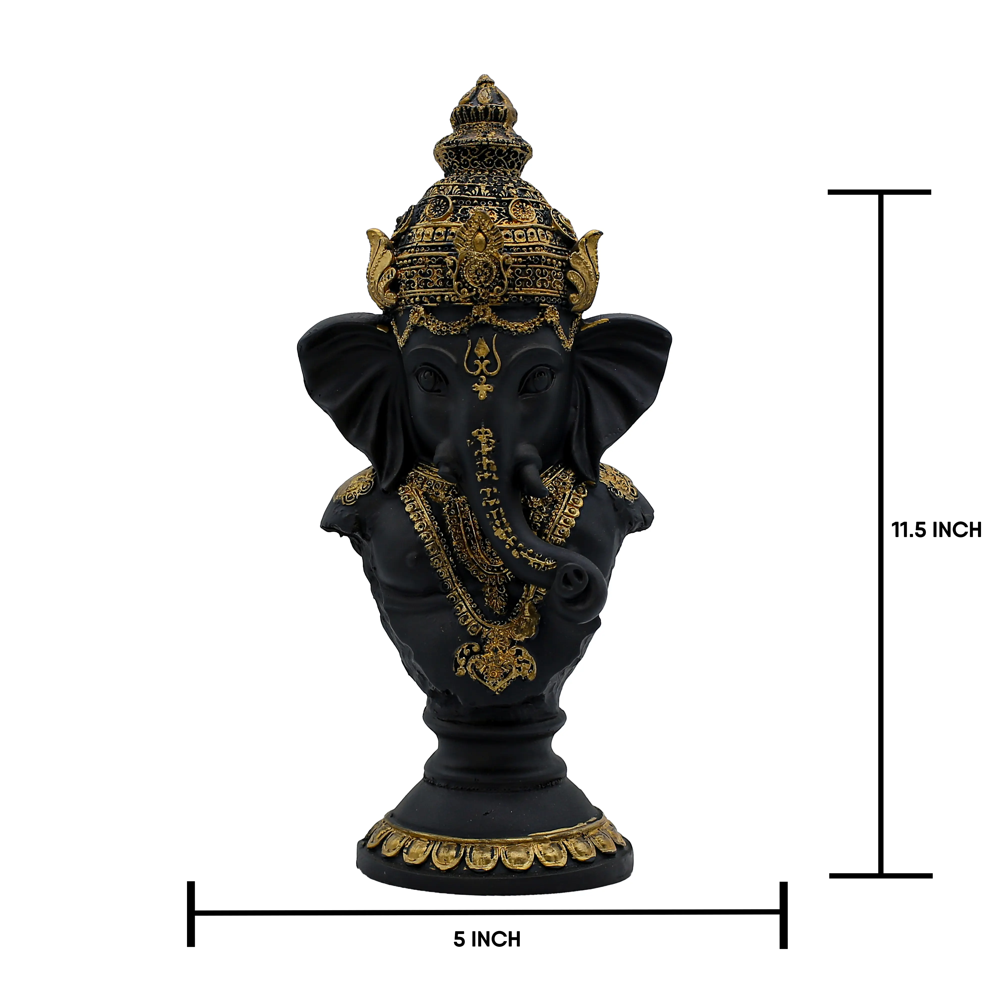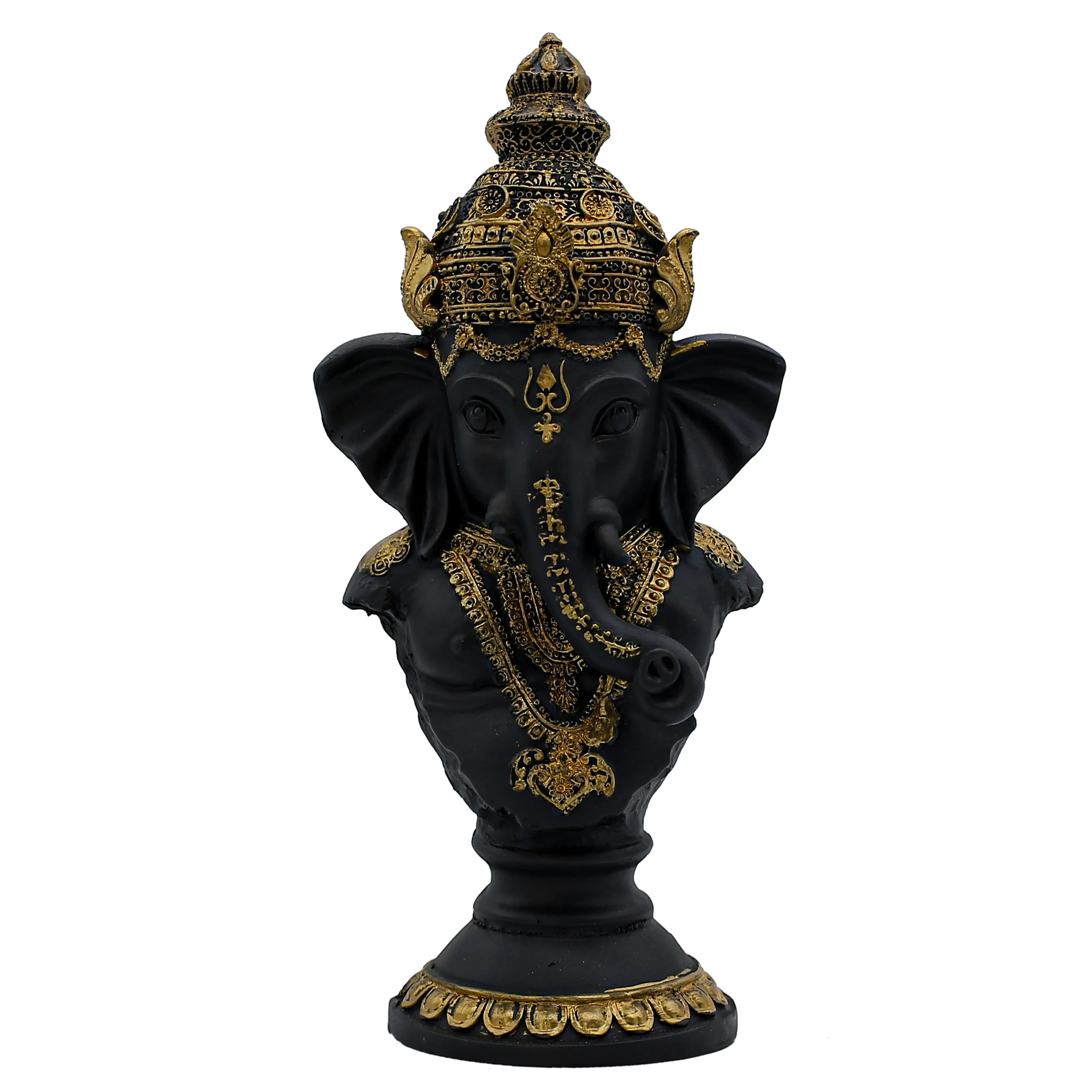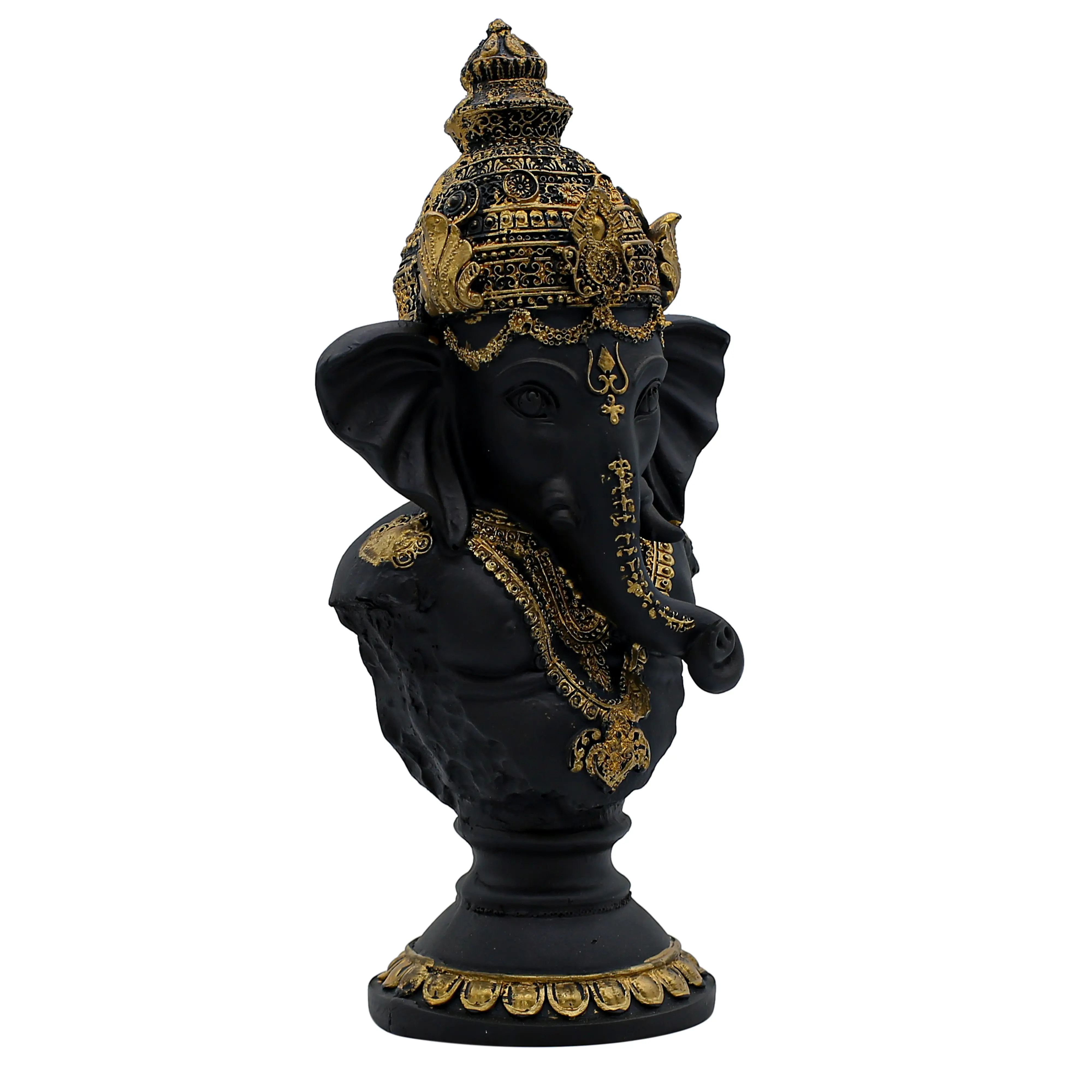 In the realm of spiritual decor, few things are as striking as the combination of black and gold. This Handcrafted Resin Ganesha Bust Statue is a testament to that timeless elegance. Designed for the modern devotee, this idol focuses on the head and torso of Lord Ganesha, capturing his divine expression in a compact yet powerful form.