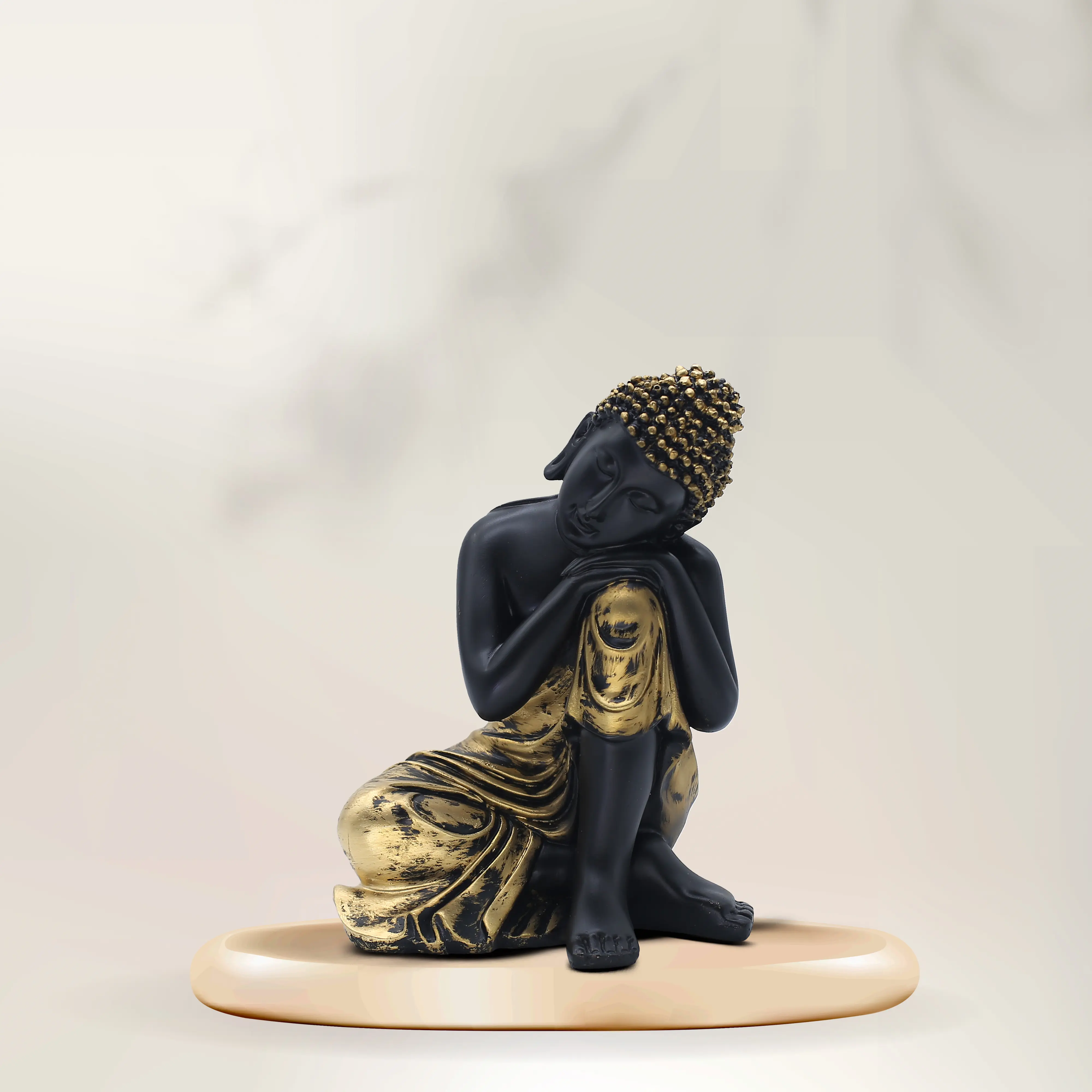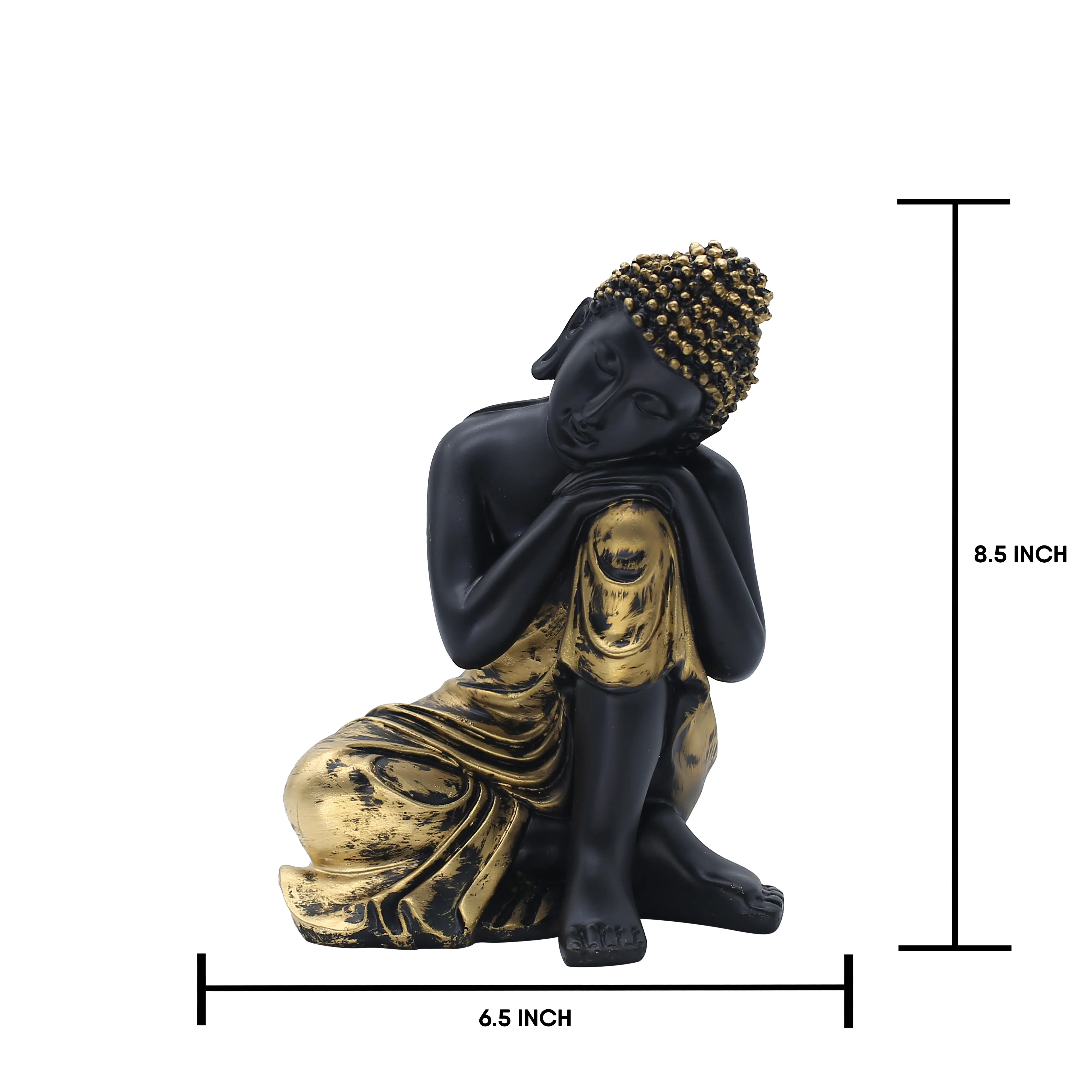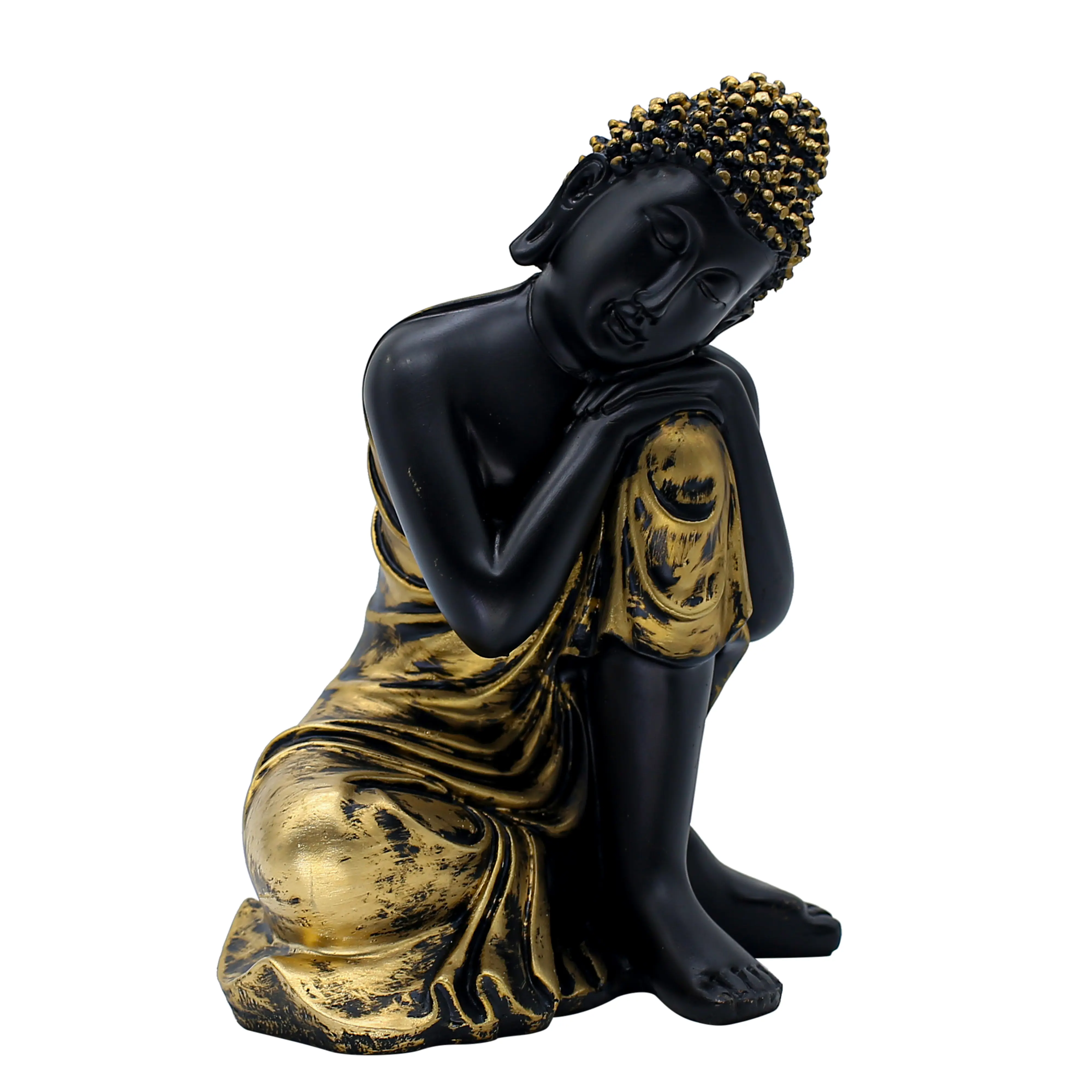 The Symbolism of the Pose The "Resting" or "Thinking" pose is distinct from the classic meditation poses. Here, the Buddha is seen resting his head on his knee, eyes gently closed in a state of deep introspection. This represents the journey inward—the search for answers within oneself rather than the outside world. It is a powerful symbol for students, professionals, and creatives who rely on focus and inner wisdom.