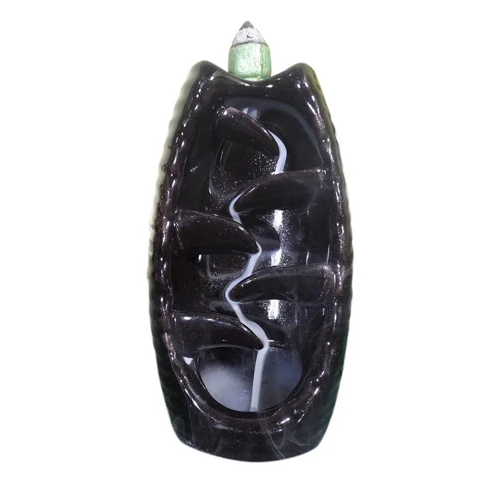 A Unique Smoke Path Most backflow burners feature a simple straight drop, but this design is different. Inside the tall, oval frame, we have sculpted a series of alternating "teeth" or leaf veins. When the heavy backflow smoke is released from the top, it doesn't just fall; it dances. It weaves left and right, navigating the zig-zag path in a slow, hypnotic rhythm. This creates a longer visual experience that is deeply satisfying to watch, effectively grounding you in the present moment.