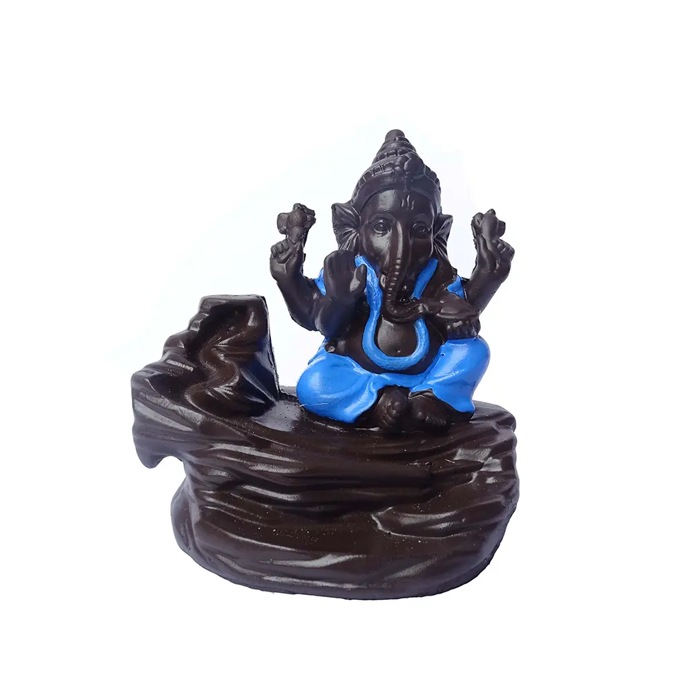 Invite the blessings of the Vighnaharta (Remover of Obstacles) into your life with the Blue Dhoti Lord Ganesha Resin Backflow Incense Burner. While traditional idols often feature red or orange, this unique piece showcases Lord Ganesha in bright blue, a color associated with the infinite (like the sky and ocean), stability, and deep wisdom.