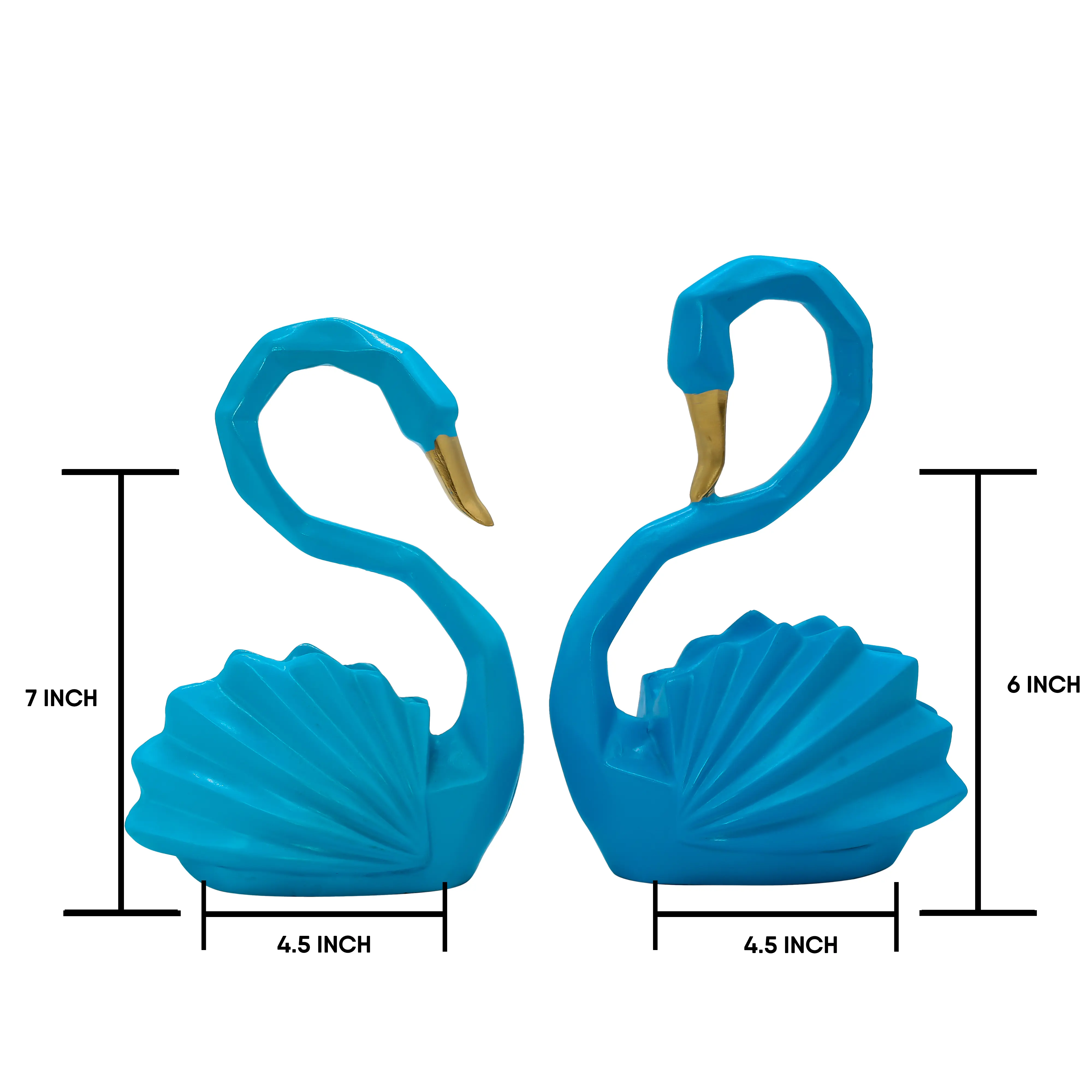 Add elegance and symbolism to your space with this luxury blue swan couple resin showpiece set. Designed with a modern geometric style and accented with gold-finished beaks, this decorative swan pair represents love, harmony, and togetherness. Crafted from premium-quality polyresin, it offers durability, smooth finishing, and long-lasting beauty. Perfect for living rooms, bedrooms, dining areas, offices, cafés, and tabletops, this swan décor set complements modern, contemporary, and minimal interiors effortlessly. Its artistic design makes it a beautiful gift for anniversaries, weddings, housewarming ceremonies, Valentine’s Day, and festive occasions. Stylish, lightweight, and easy to maintain, this swan couple showpiece instantly enhances the aesthetic appeal of any space.
