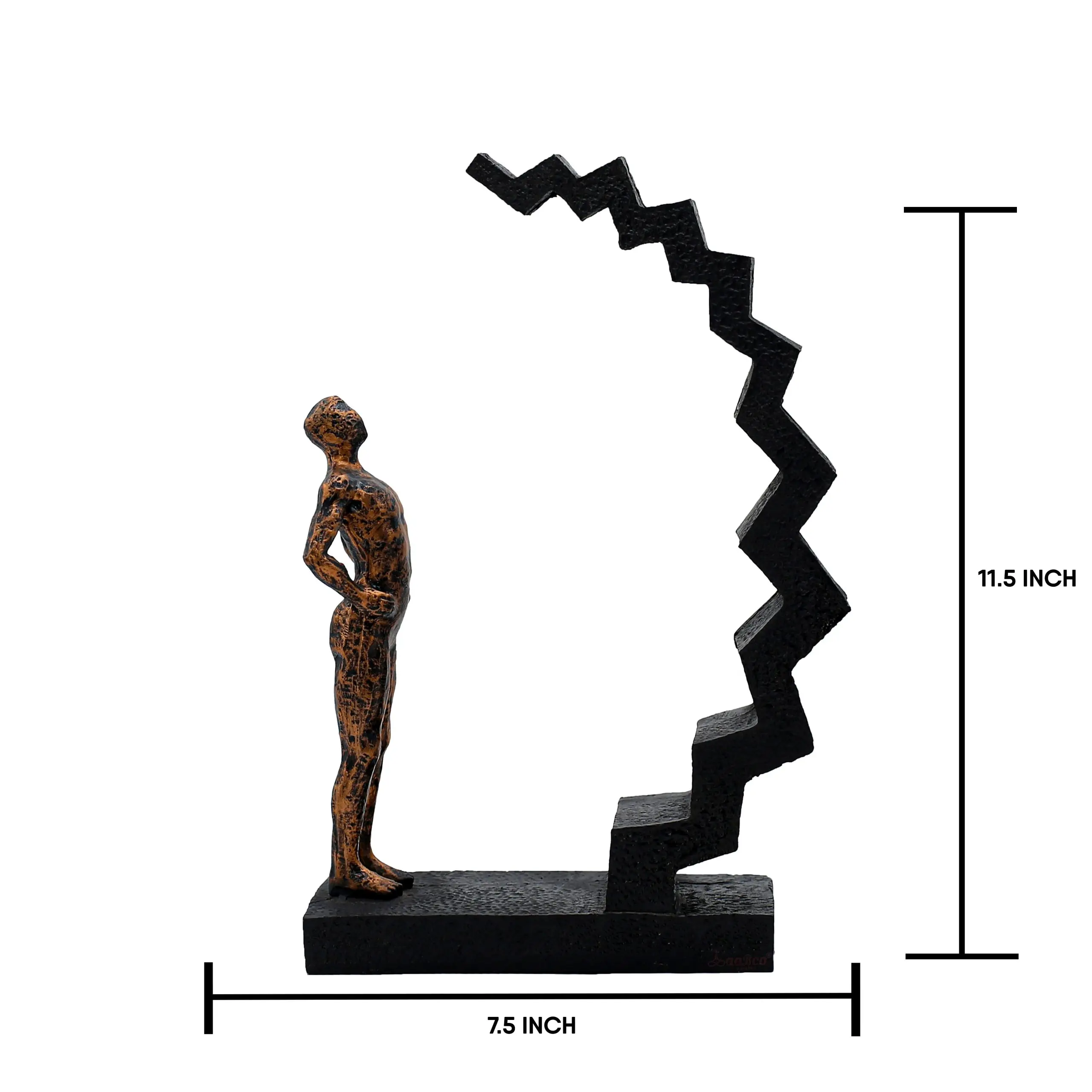 The Figure: The bronze man stands small but grounded. His finish is smooth and metallic, representing the human spirit—resilient and shining. He is not climbing yet; he is assessing, planning, and looking up. This represents the crucial "vision" phase of any endeavor.