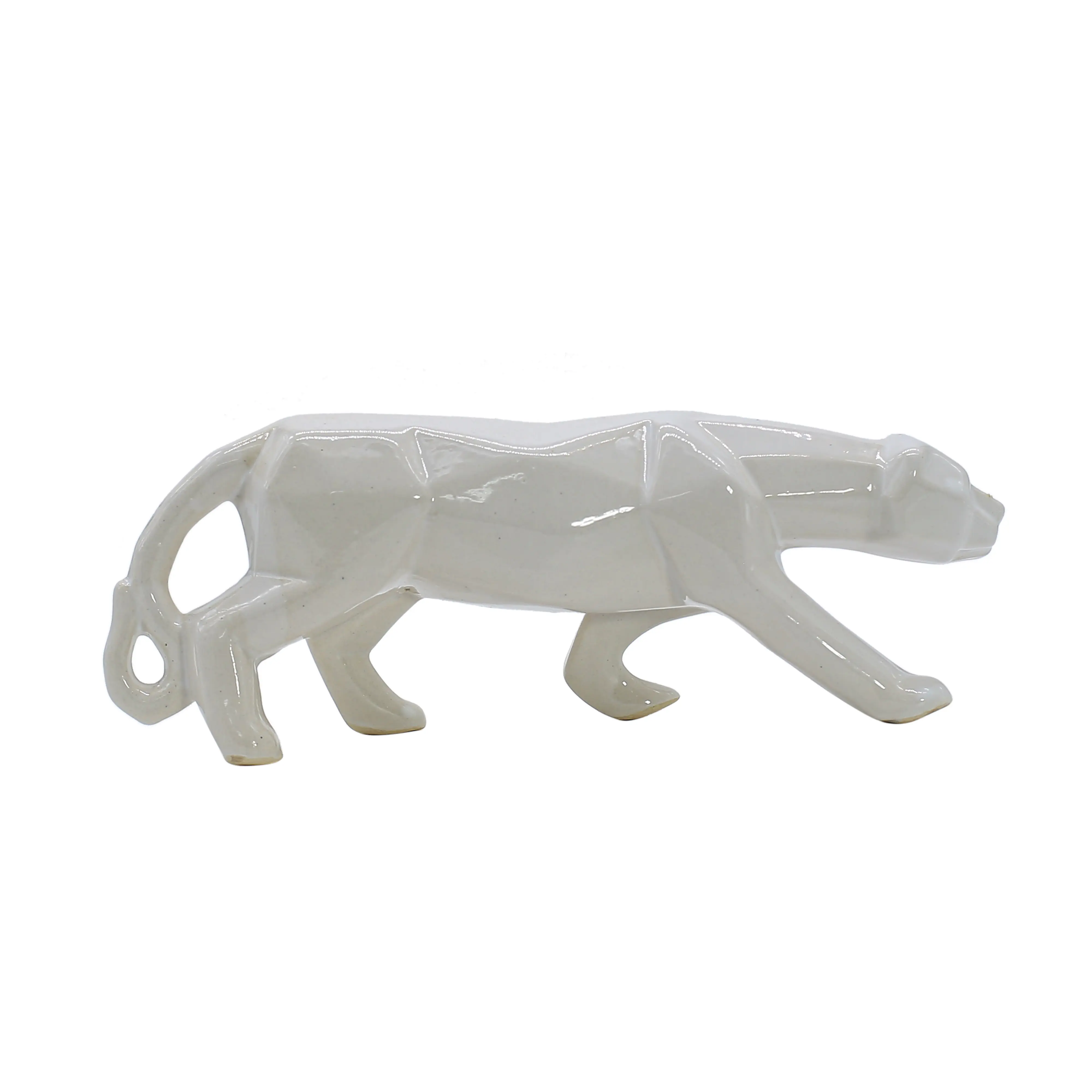Infuse your living space with the silent power and architectural beauty of this Modern Ceramic Geometric Panther Statue. Moving away from realistic detailing, this showpiece embraces the contemporary "Low Poly" art style, using sharp, faceted planes to suggest the muscular form of a prowling big cat. Crafted from authentic Ceramic, this figurine is coated in a luscious high-gloss white glaze that shimmers under light, highlighting its intricate geometric structure. The minimalist white color ensures it blends seamlessly with any interior palette, from monochrome industrial lofts to cozy boho-chic living rooms. Whether prowling across your office desk, guarding your bookshelf, or sitting atop a mantelpiece, this walking leopard adds a dynamic sense of movement and modern sophistication. It is the perfect decor upgrade for those who appreciate art that combines the wildness of nature with the precision of geometry.