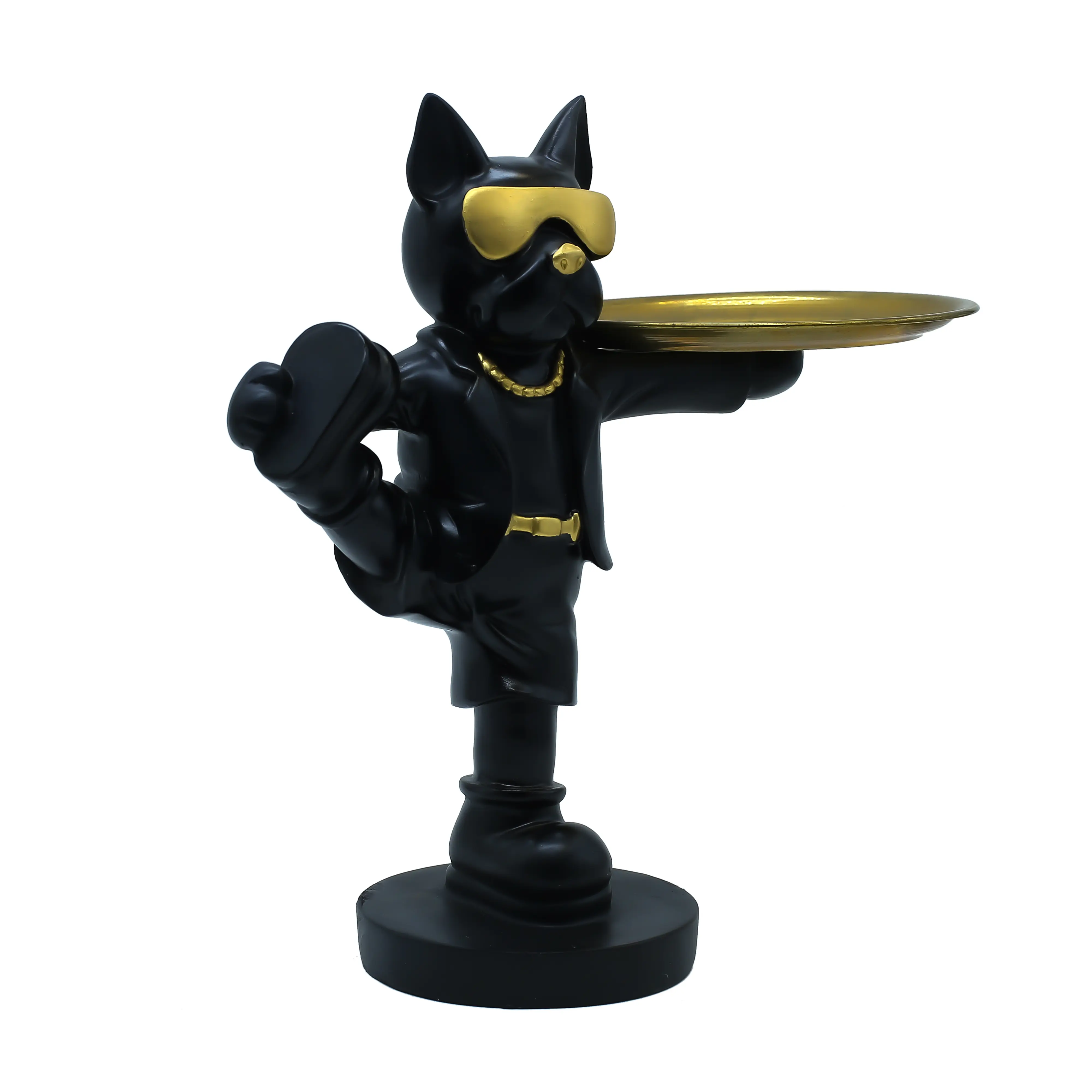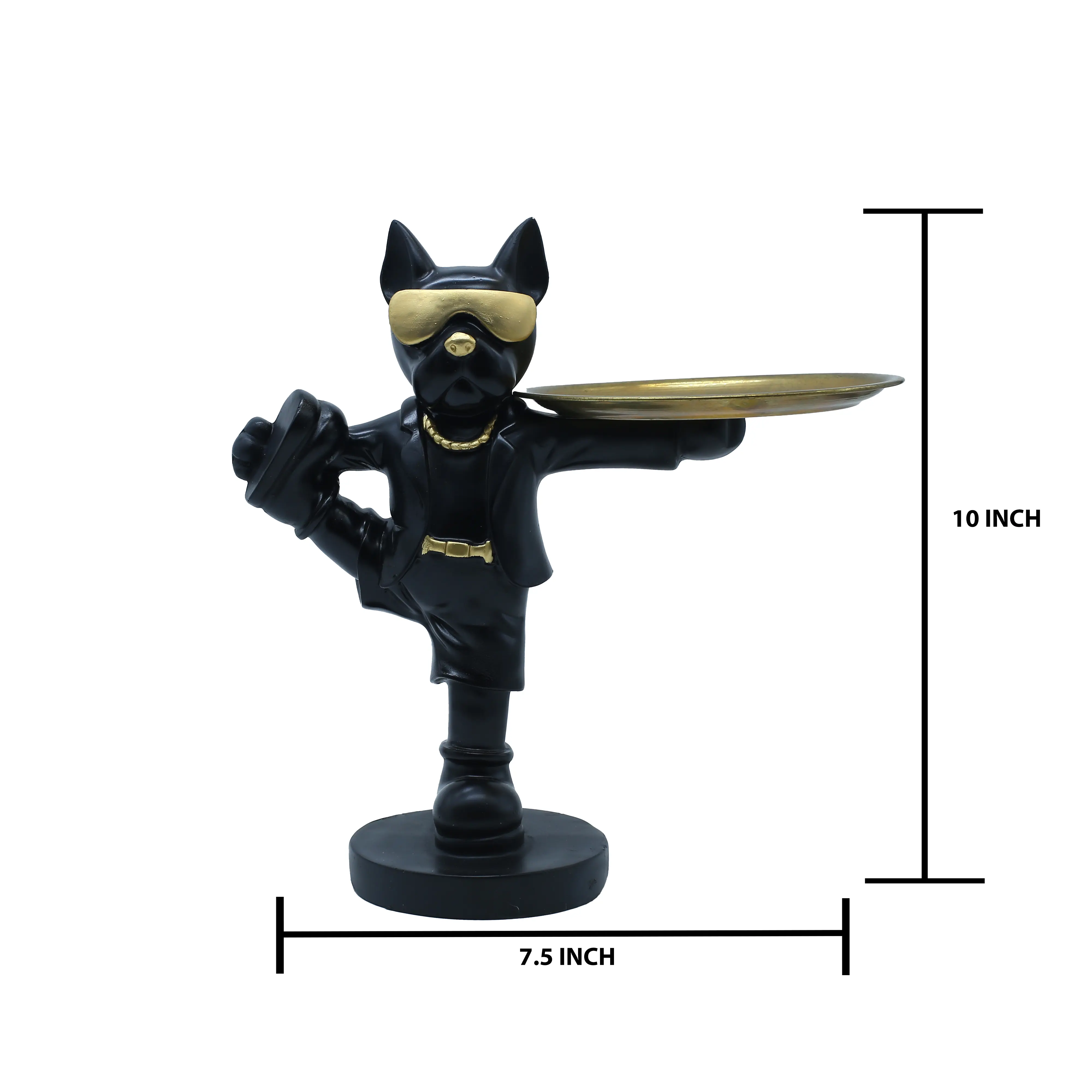 More Than Just Looks: It’s Functional! While it looks great as a standalone sculpture, this piece is built to work. The flat golden tray held in the dog's hand is the perfect catch-all organizer.