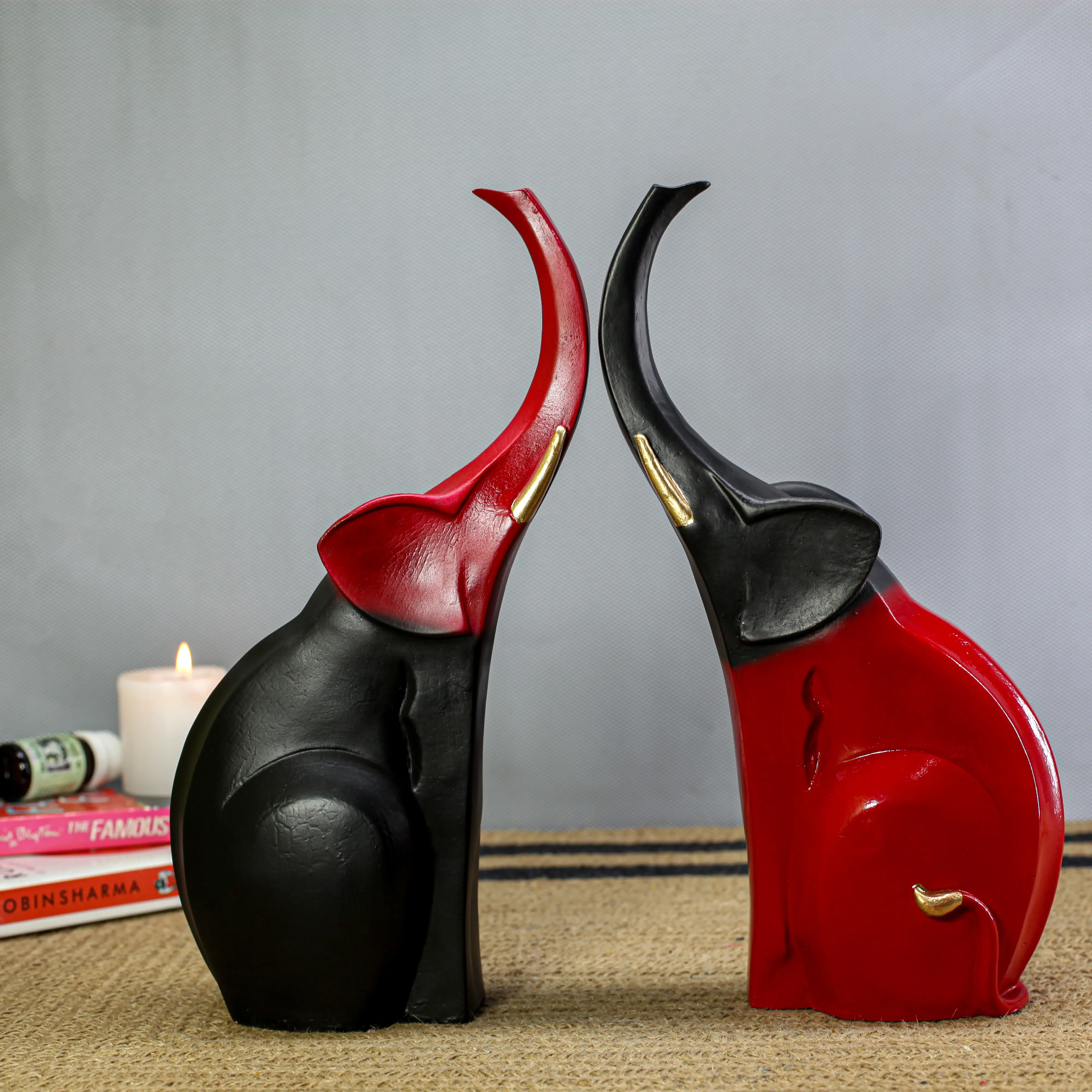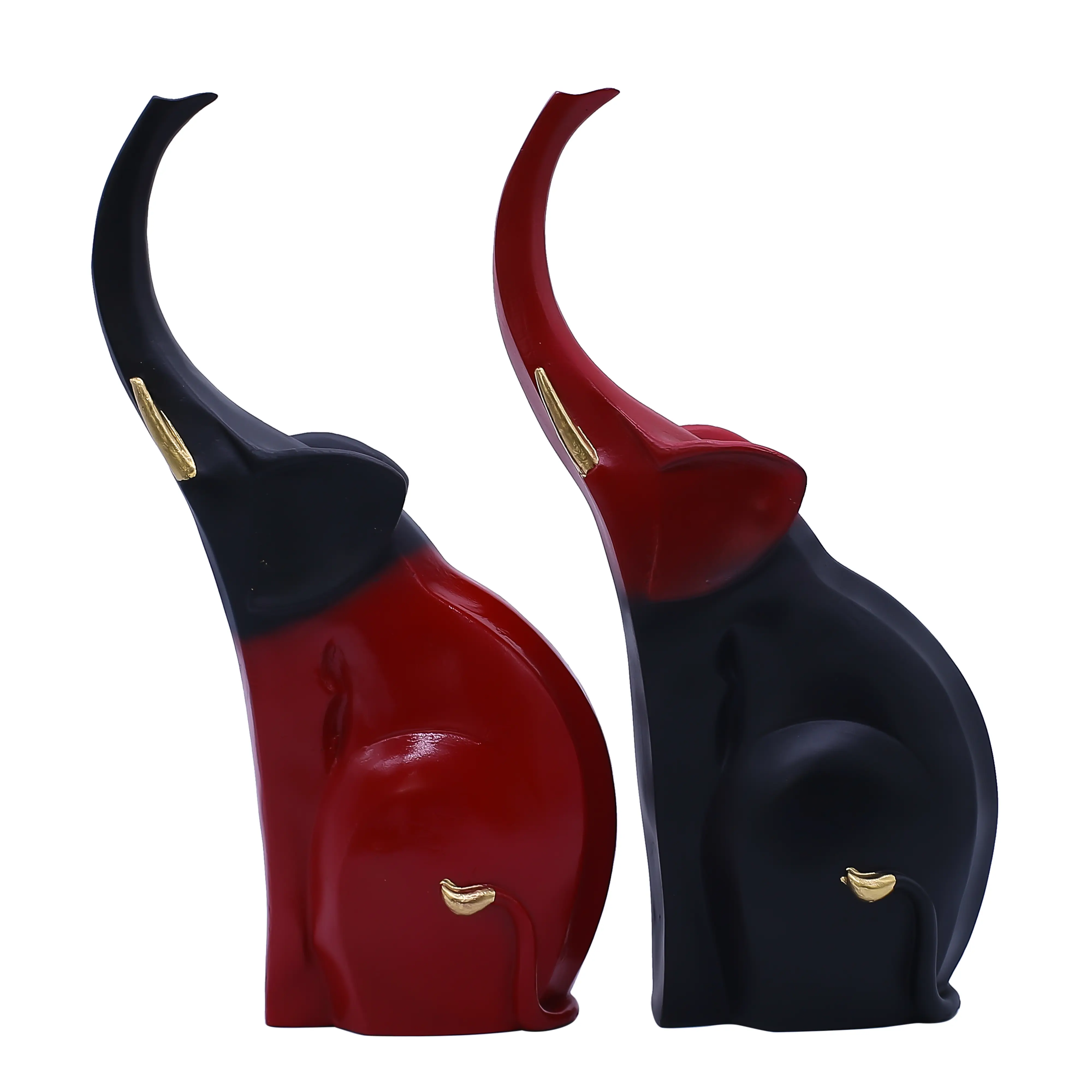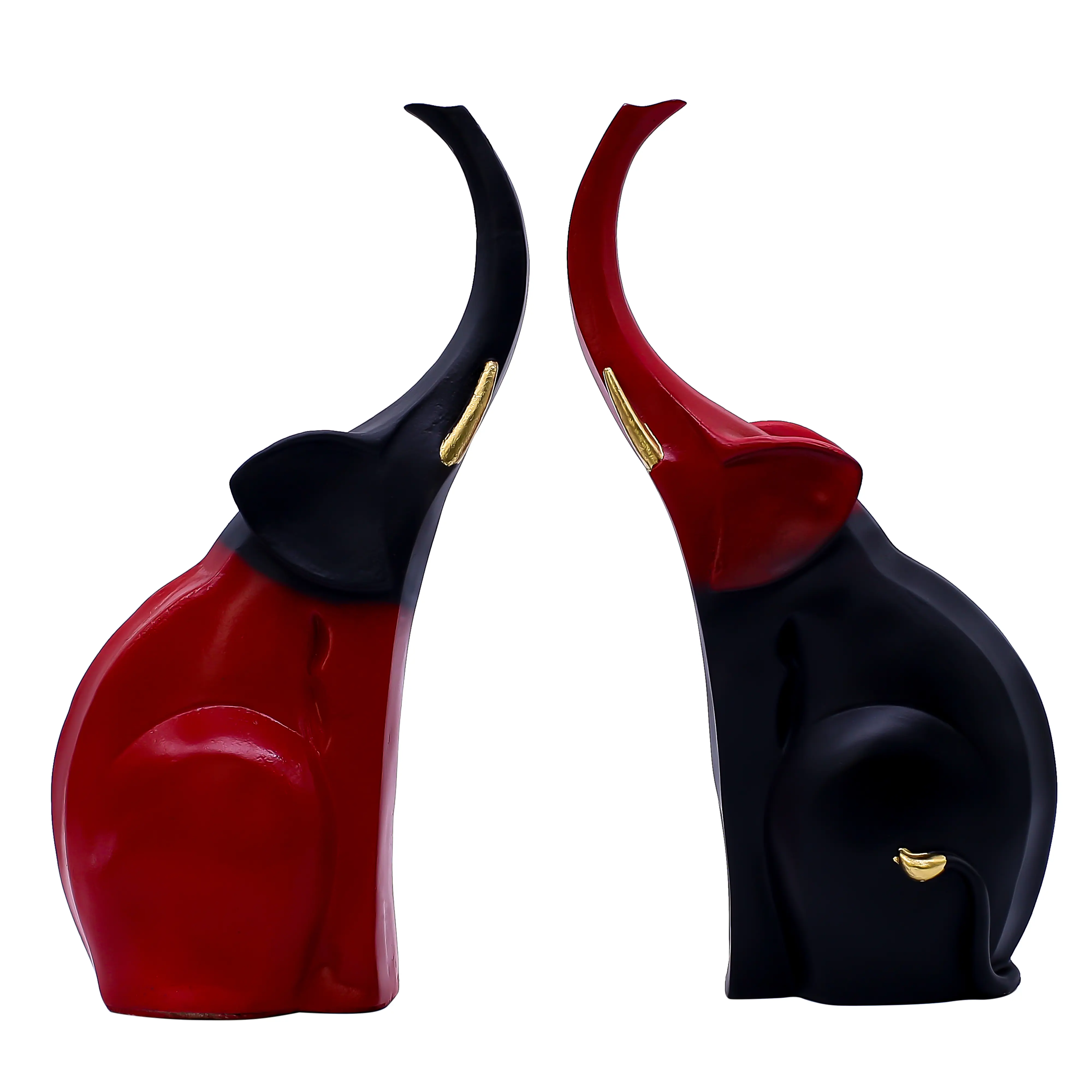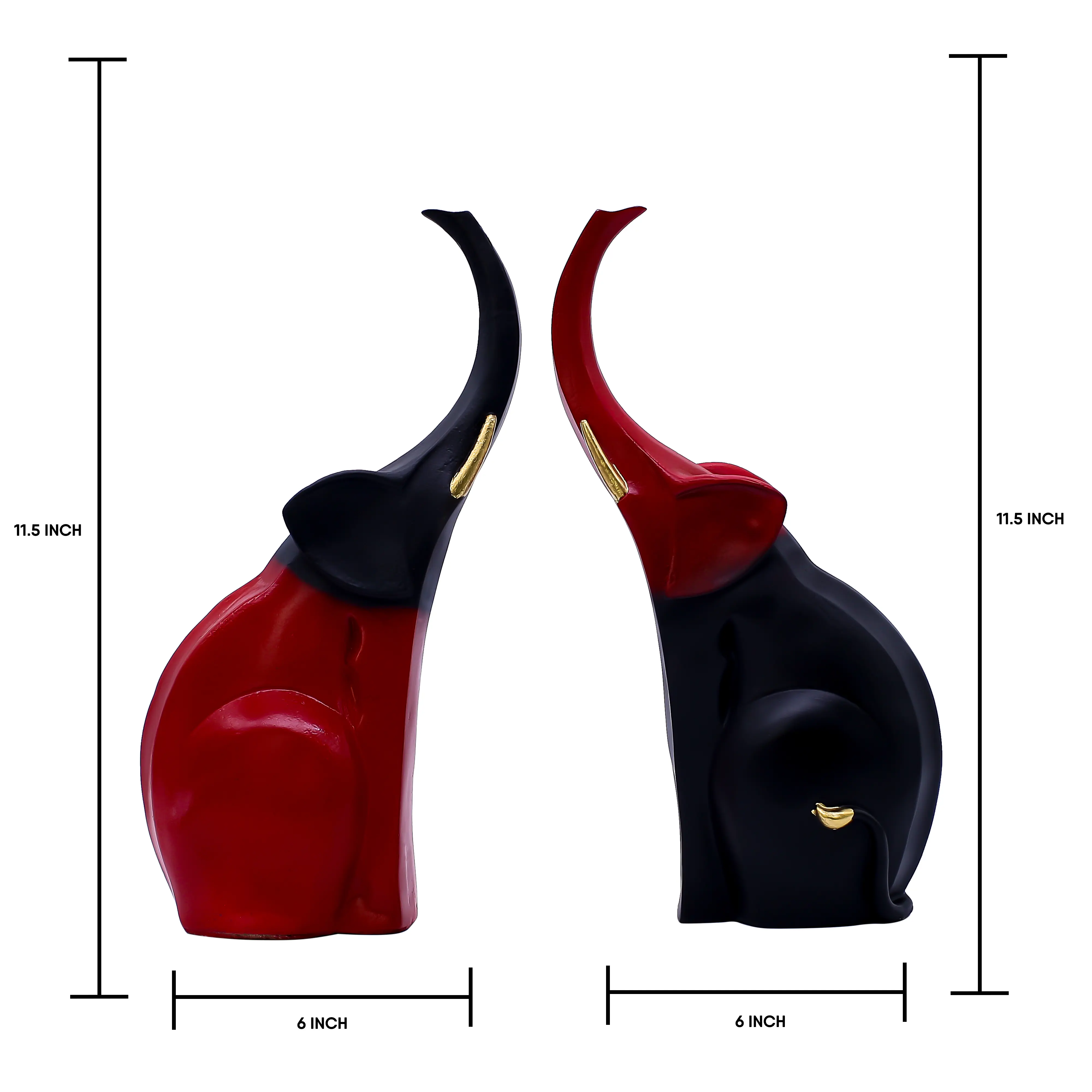 Enhance your décor with this Modern Abstract Couple Elephant Resin Showpiece in Black & Red, symbolizing love, unity, strength, and prosperity. Featuring a sleek standing design with raised trunks, this artistic elephant pair adds a touch of luxury and positivity to any space. Made from high-quality polyresin, it boasts a smooth glossy finish and elegant curves that perfectly suit modern and contemporary interiors. Ideal for living rooms, bedrooms, office desks, shelves, hotels, and reception areas, this décor piece is both stylish and meaningful. A perfect choice for wedding gifts, anniversaries, housewarming ceremonies, festive occasions, and corporate gifting, this elephant showpiece brings charm, balance, and good fortune into every home. Durable, easy to maintain, and visually striking, it is a timeless décor addition.
