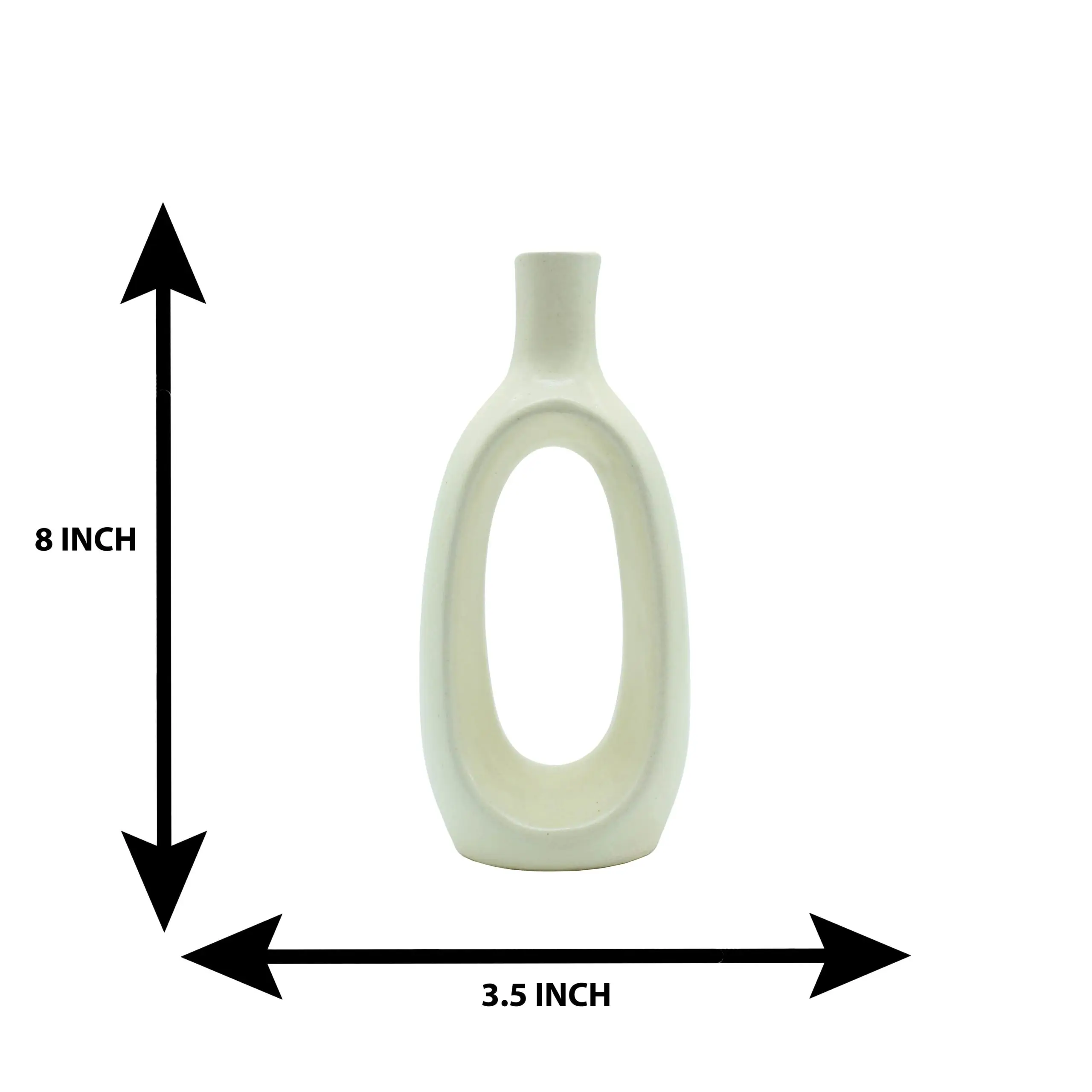 Infuse your home with the artistic elegance of our Matte Cream Ceramic Oval Hollow Vase. This piece redefines the traditional flower vase by incorporating negative space into its design. Crafted from durable, high-quality ceramic, the vase features a sleek oval body with a large hollow center, transforming it into a modern sculpture that looks beautiful from every angle. The finish is a sophisticated matte cream that offers a soft, tactile appeal, contrasting beautifully with glossy surfaces like the marble table shown in the lifestyle image. Whether you fill it with vibrant fresh flowers like lilies and orchids or trending dried botanicals, this vase frames your arrangements like a picture. It is the ultimate accessory for homeowners looking to achieve that curated, high-end Nordic look.
