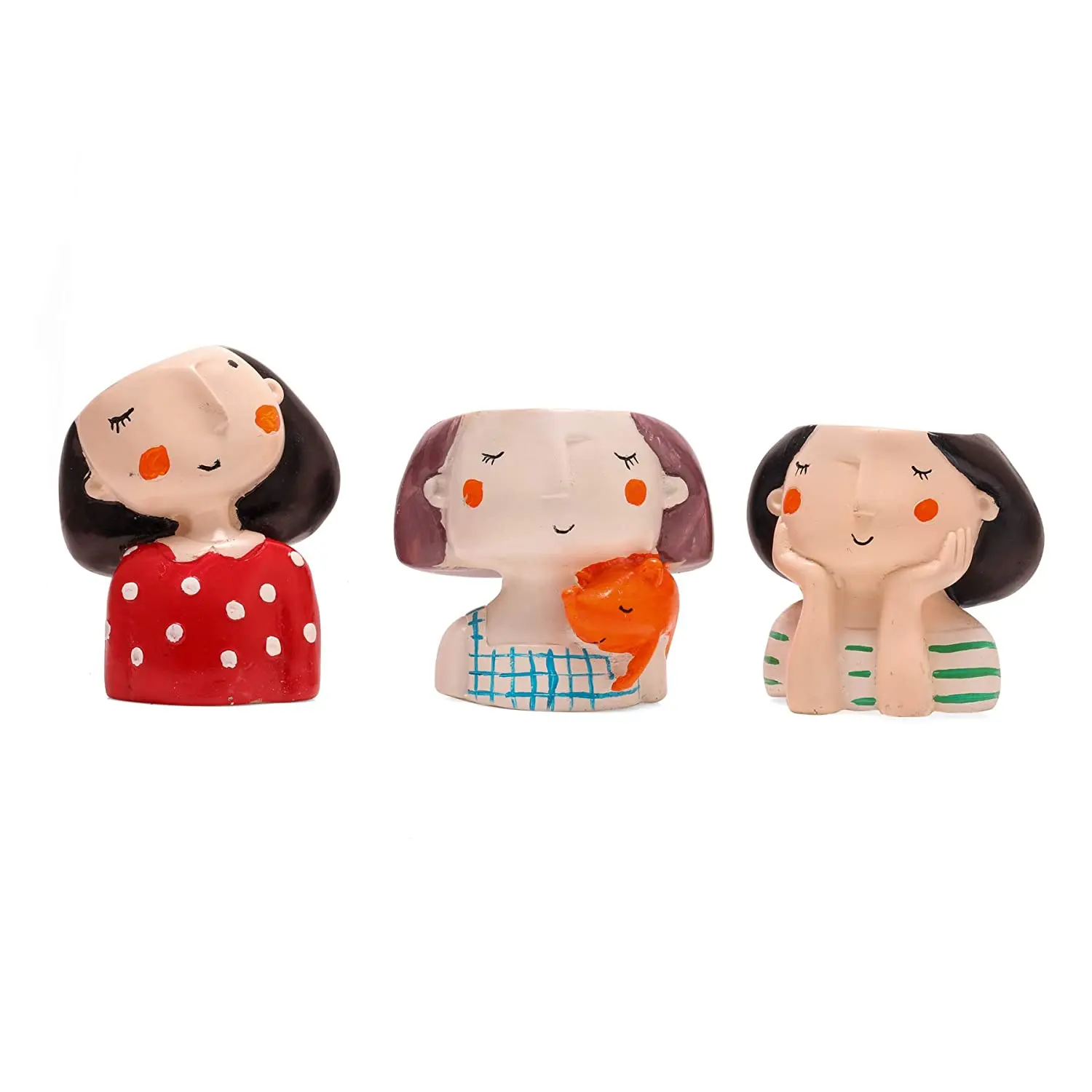 Say goodbye to boring, plain terra cotta pots and hello to personality! Our Set of 3 Cute Girl Head Succulent Planters is designed to bring a smile to your face every time you look at them. This collection captures the essence of innocence and imagination, blending functional gardening with artistic decor.