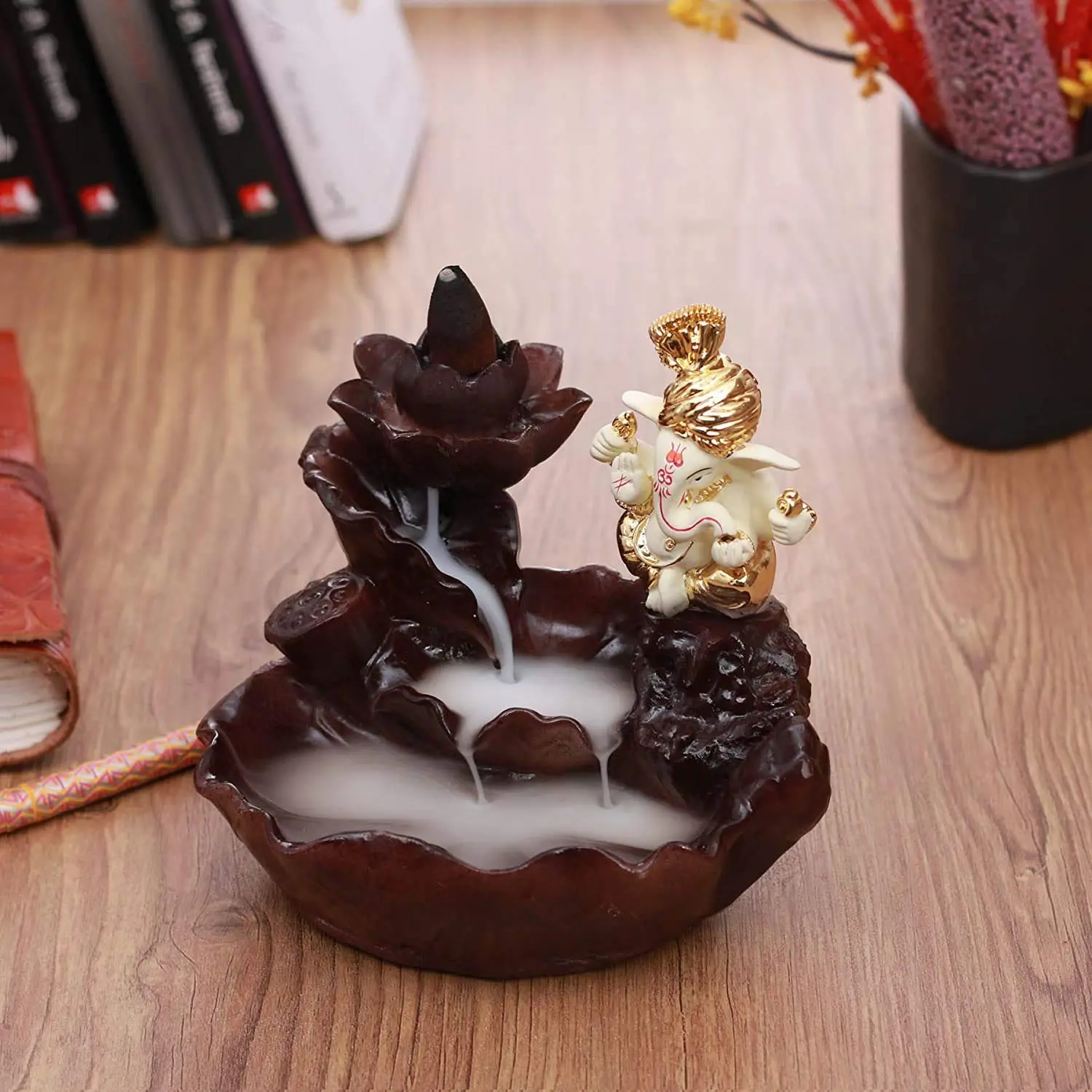 A Visual Spectacle This burner utilizes special backflow incense cones (sold separately). Unlike regular incense where smoke rises, these cones send smoke downwards.