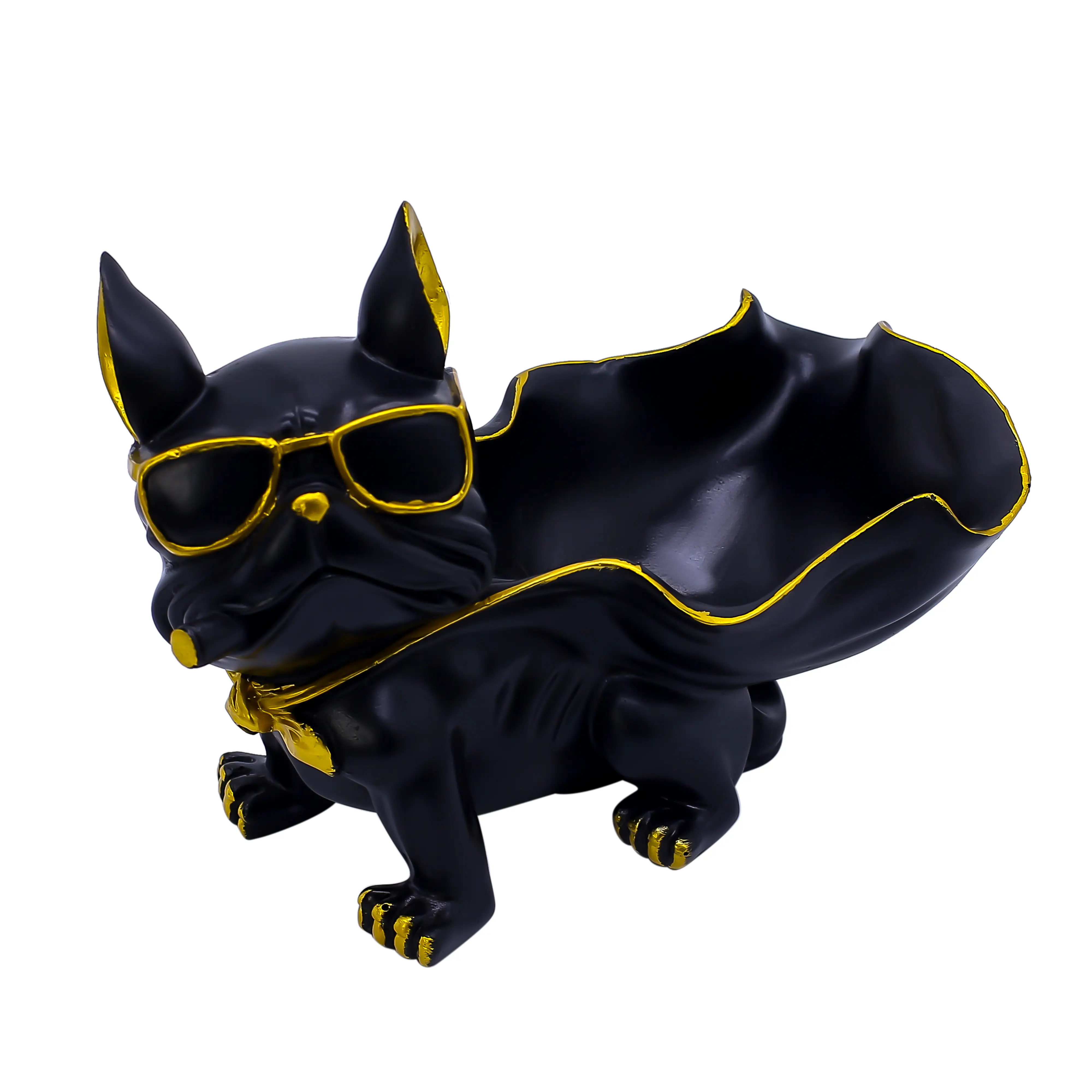 A Design That Stands Out At first glance, it’s a striking art piece. The French Bulldog sits with a "boss-like" demeanor, accessorized with his signature gold sunglasses and a cigar. But the real magic lies in the design of his back. A flowing structure, resembling a superhero's cape or a royal robe, curves upward to create a large, open-mouth bowl.