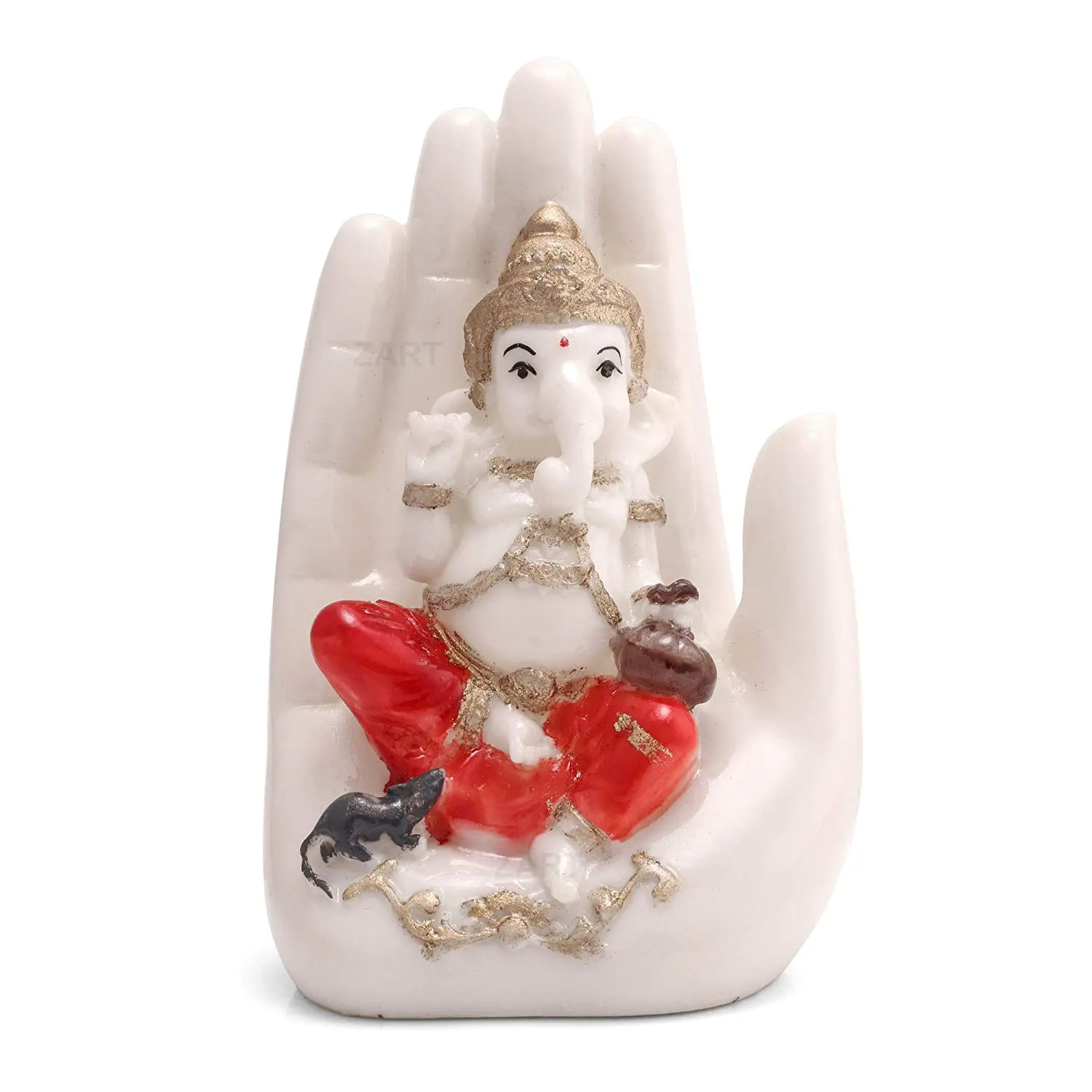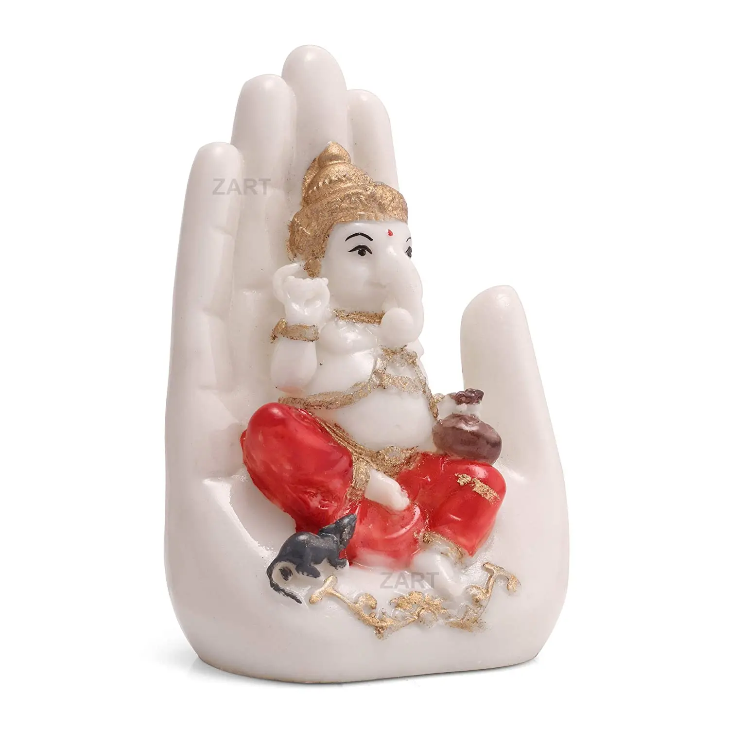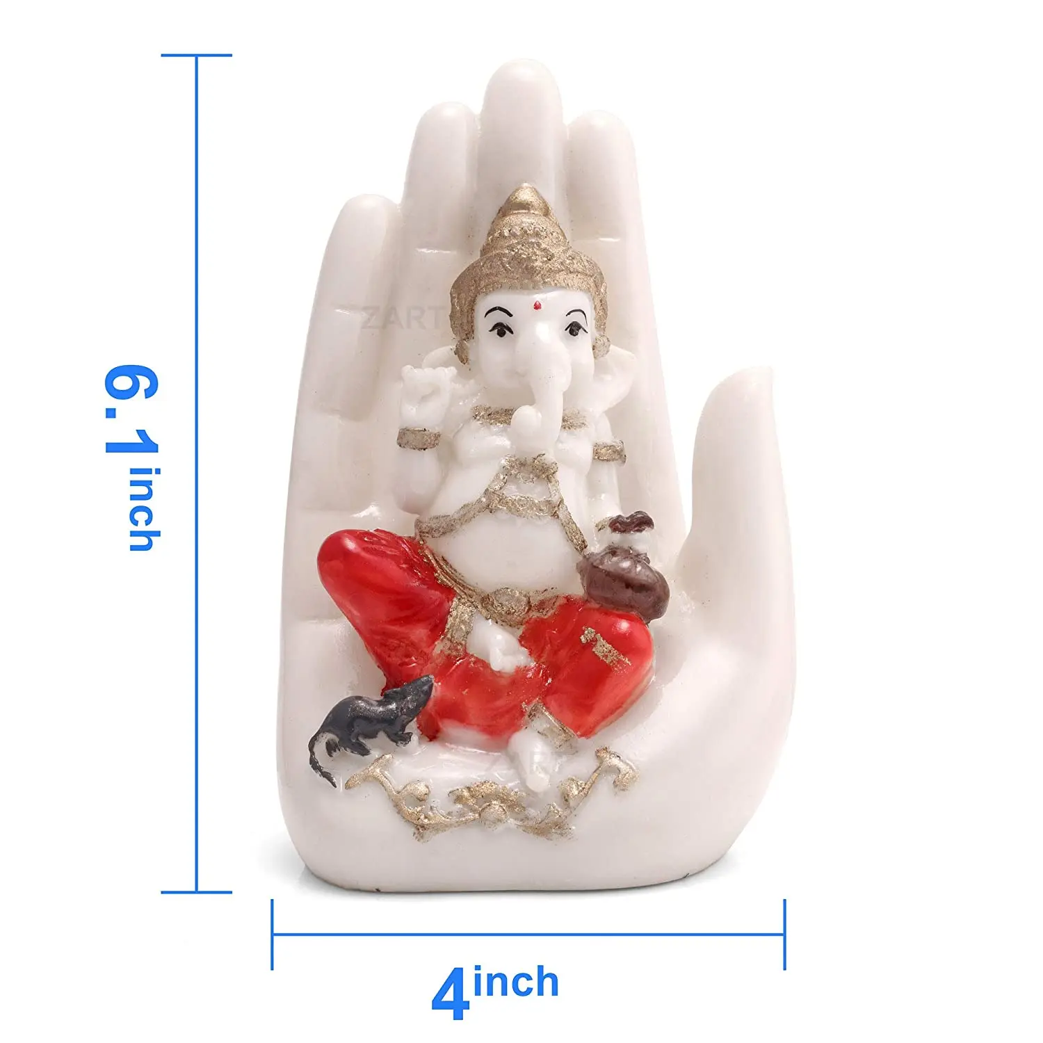 Exquisite Design and Quality Crafted with precision from high-grade polyresin, this statue boasts durability and a smooth, refined finish. The color scheme is both elegant and striking. Lord Ganesha is depicted with a pure white complexion, representing peace and tranquility. His attire is a vibrant red dhoti, a color associated with energy and auspiciousness, while his crown, jewelry, and other accents are detailed in rich gold, adding a touch of regal splendor. The large white hand that holds him is sculpted with gentle curves, creating a sense of safety and support.