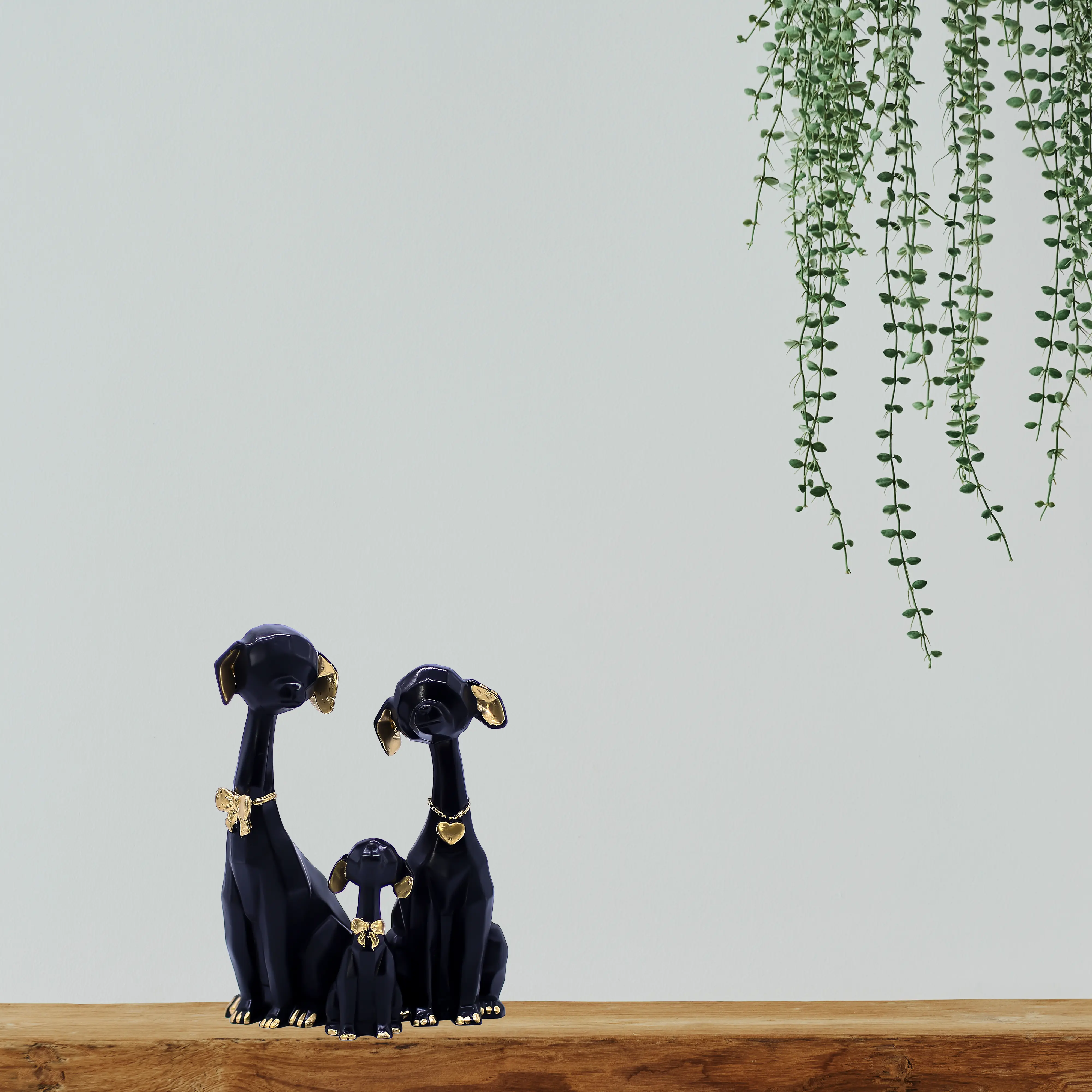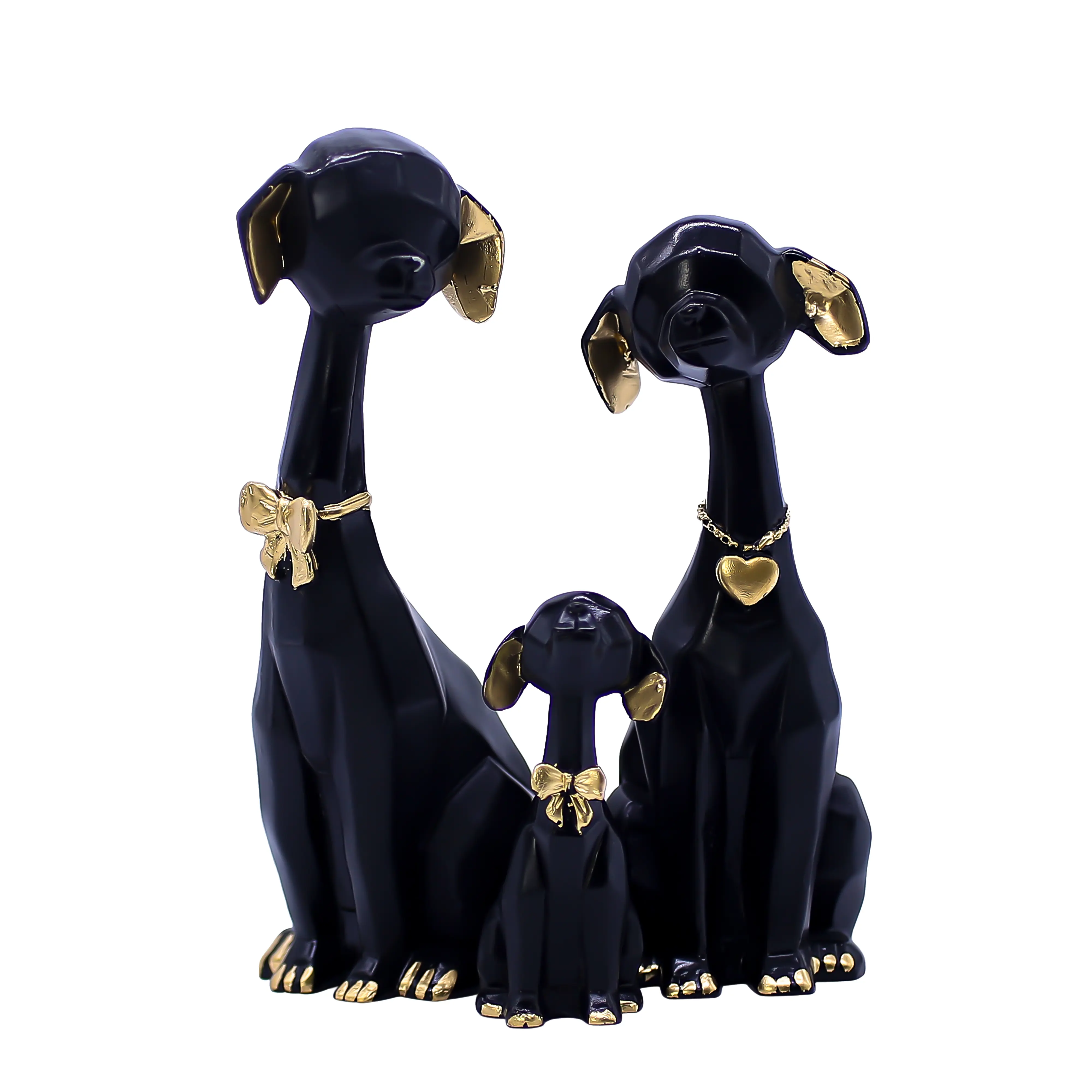 A Modern Twist on Family Decor Art evolves, and so should your home decor. The Geometric Black & Gold Dog Family Statue is a masterpiece of modern design, moving away from traditional realism to embrace the bold, clean lines of abstract geometric art. This "Set of 3" is perfect for homeowners who love the minimalist, Nordic, or Industrial aesthetic but still want decor that feels warm and personal.