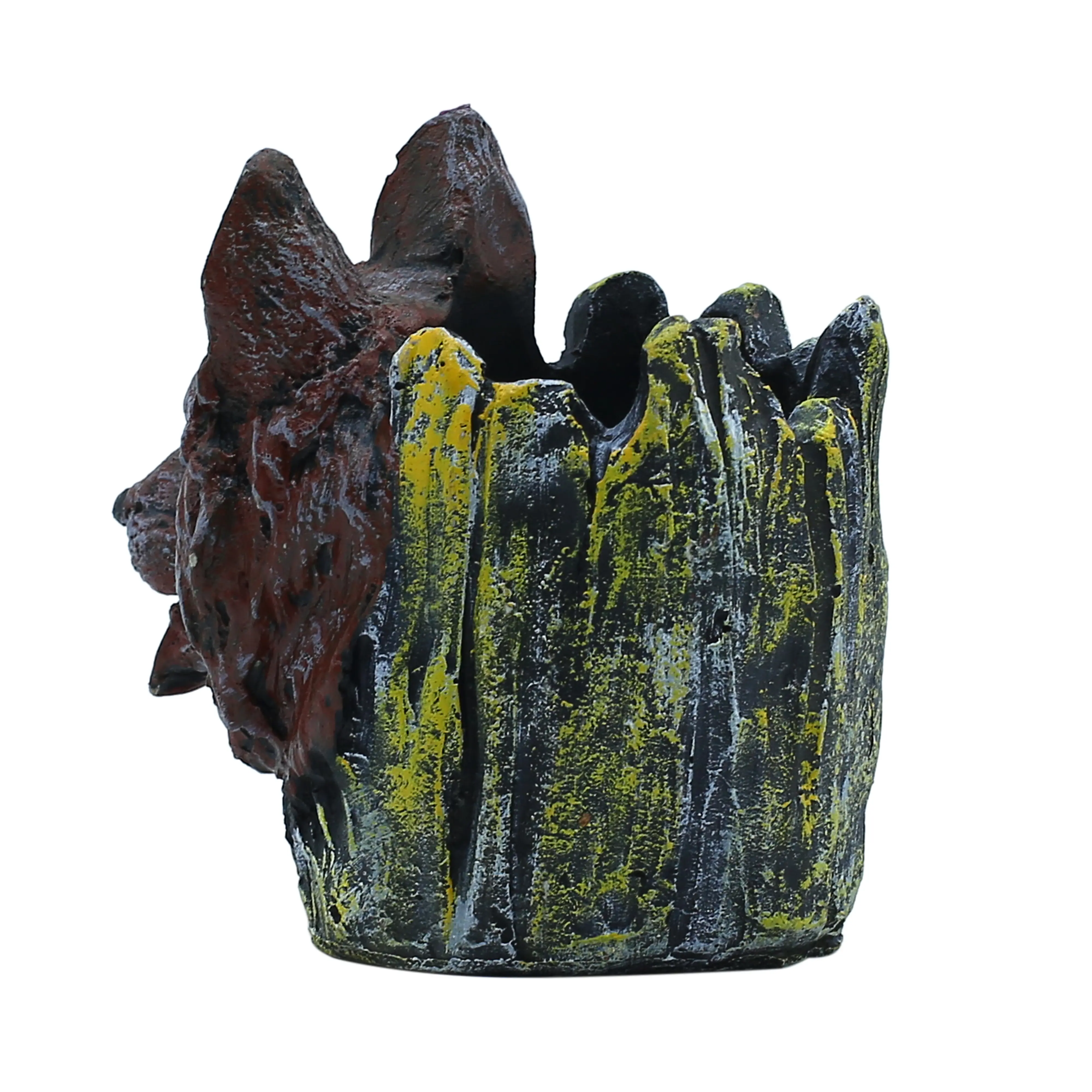 Unmatched Realism and Craftsmanship Every inch of this holder tells a story of detailed craftsmanship. The texture of the dog's fur is molded with precision, painted in authentic shades of black and tan to mimic the real coat of a shepherd. The wet-look nose, the alert ears, and the happy, panting expression with a pink tongue give the statue a lively, friendly vibe that is sure to make you smile every time you look at it. The container portion is styled like a weathered tree stump with touches of yellow and grey moss detailing, adding a rustic, outdoor feel to your indoor space.