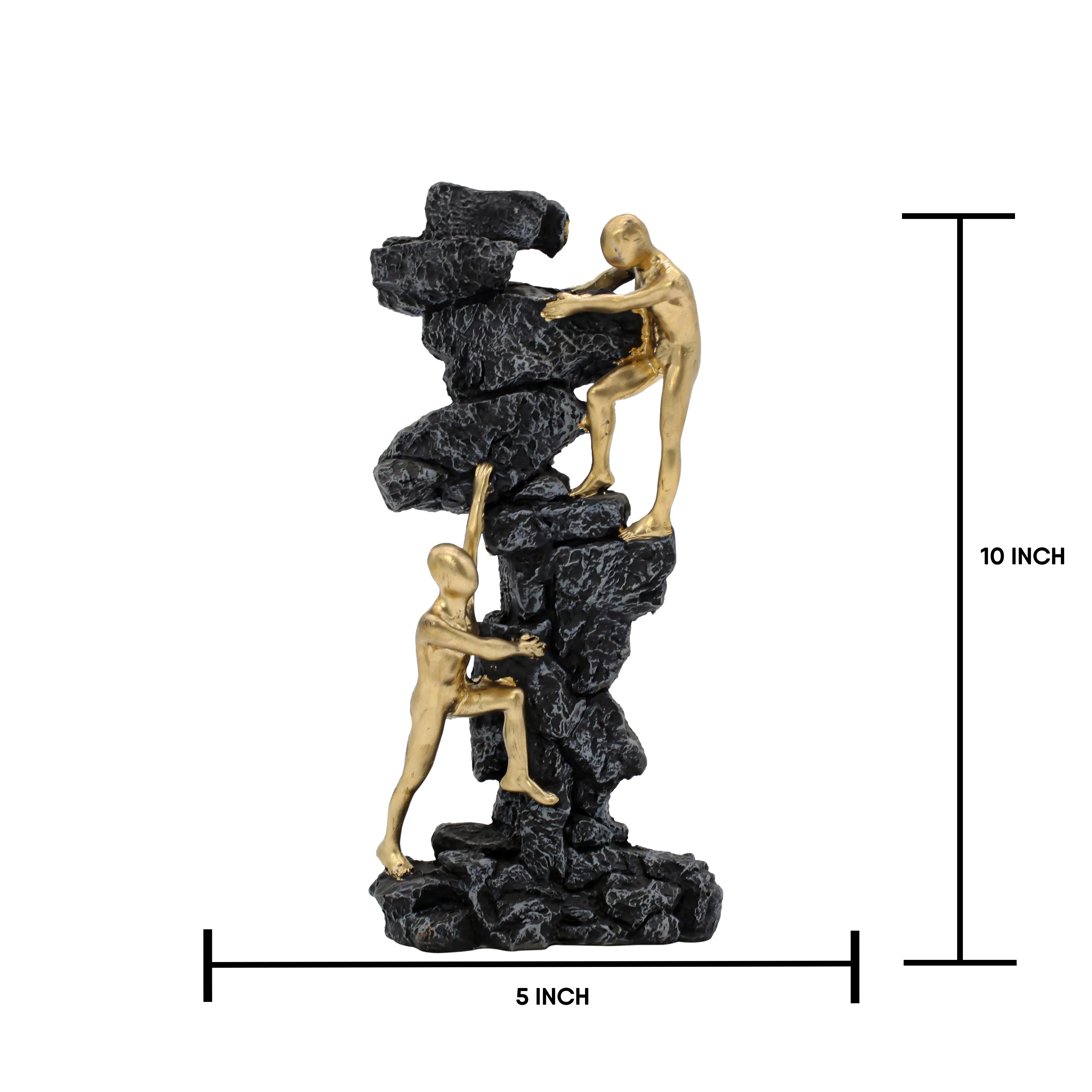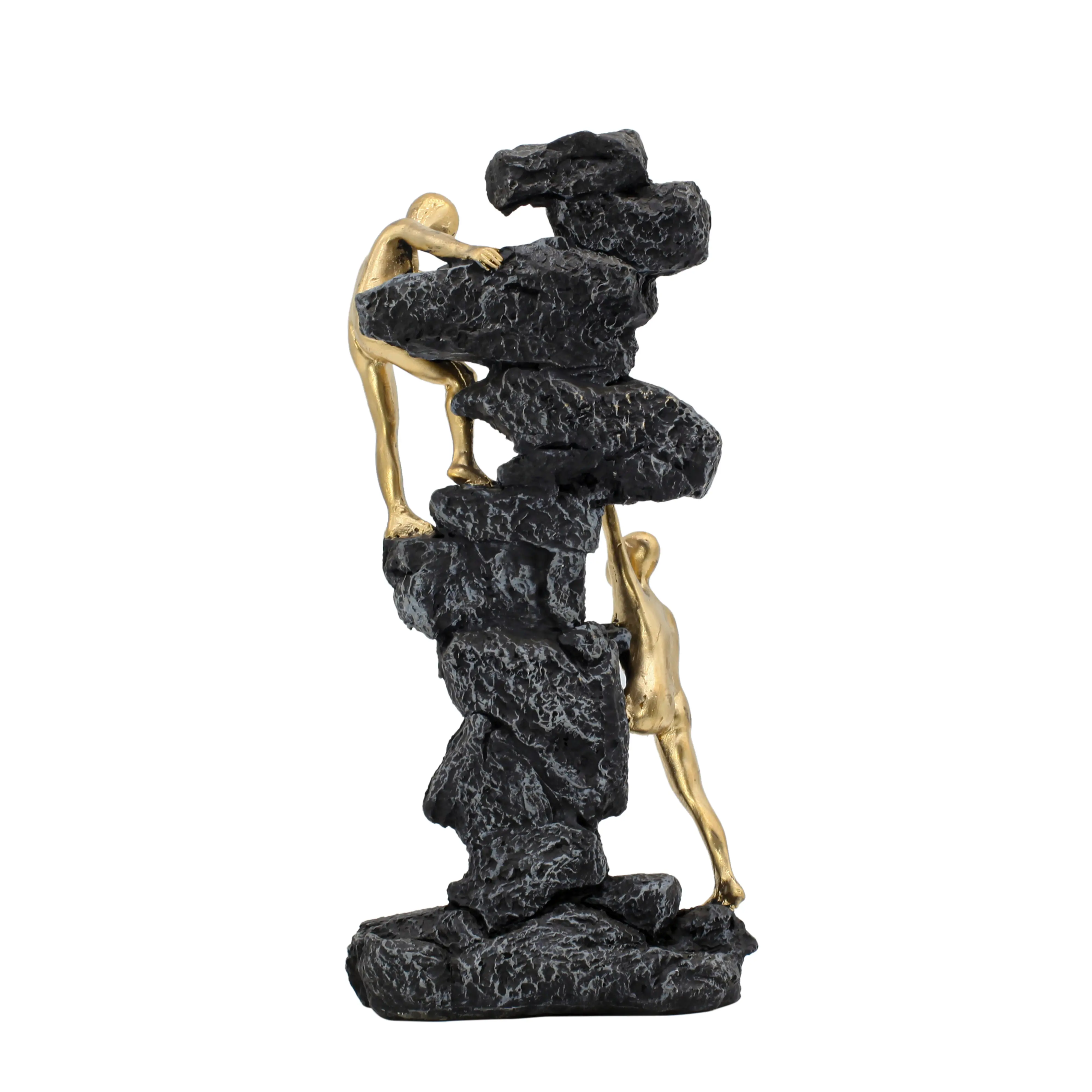 Elevate your workspace with the inspiring energy of our Gold Climbing Men Statue. This sculpture is a tribute to the human spirit's drive to conquer challenges. The design features a rugged, vertical rock formation painted in a realistic black stone texture, which serves as the challenge. Against this dark backdrop, two gold human figures are seen ascending—shining bright as symbols of achievement and resilience. The "faceless" abstract design of the climbers allows anyone to project their own journey onto the piece. Whether it represents individual struggle or a team rising together, it speaks volumes without saying a word. Perfectly sized for a bookshelf or corner desk, this statue is a daily reminder that the view is always best from the top.