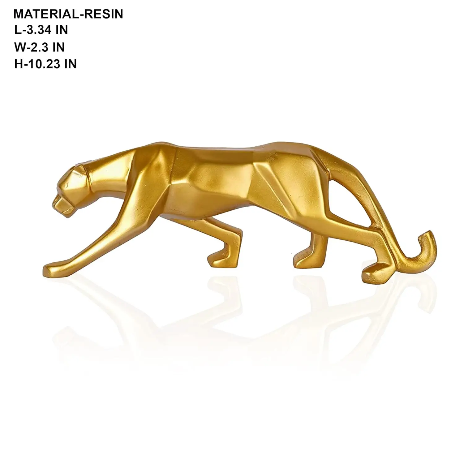Make a bold and glittering statement in your home with our Gold Geometric Panther Statue. This exquisitely crafted showpiece captures the intense focus of a big cat on the prowl, rendered in a sophisticated Abstract Geometric style. The sharp, angular lines catch the ambient light, making the metallic gold finish shimmer and sparkle from every angle. This statue is designed for those who love "Luxe" decor. It creates a stunning visual contrast when placed on glass surfaces, dark mahogany furniture, or white marble shelves. Beyond its aesthetic appeal, the Gold Panther is a powerful totem of leadership and fearlessness. It is sturdy, easy to clean, and commands attention without being overwhelming. Whether you are upgrading your office cabin or styling your living room center table, this golden jaguar brings a sense of royalty and dynamism to your space.