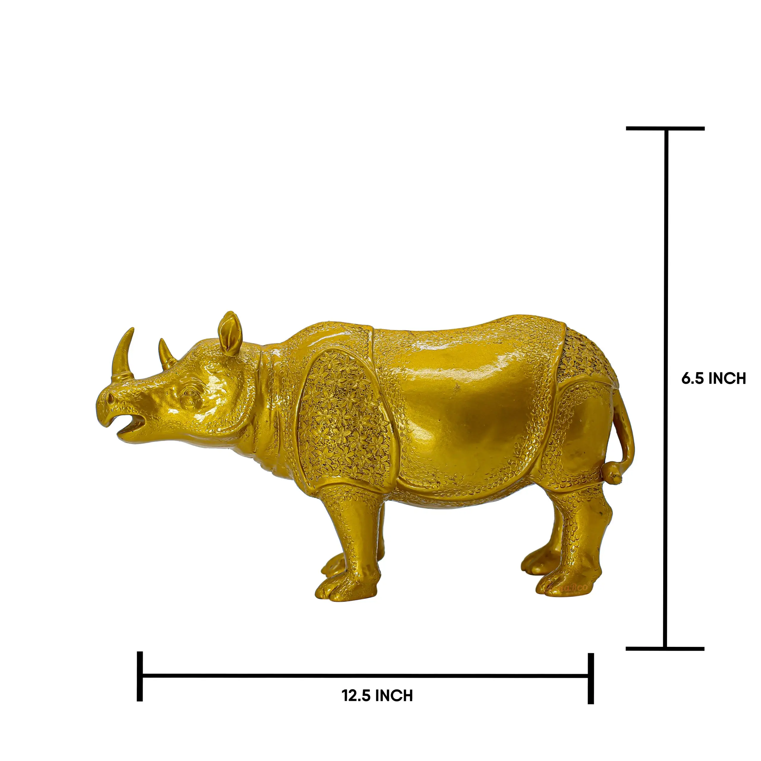 Superior Craftsmanship & Material Crafted from premium-grade Polyresin, this statue offers the look and feel of a heavy metal sculpture without the excessive weight or susceptibility to rust. The resin medium allows for incredible detail; every fold of the rhino’s skin, the texture of its "armor," and the curve of its horn are captured with lifelike precision. The piece is finished in a stunning Antique Gold, giving it a regal appearance that mimics expensive brass or bronze, ensuring it stands out against both dark and light colored furniture.