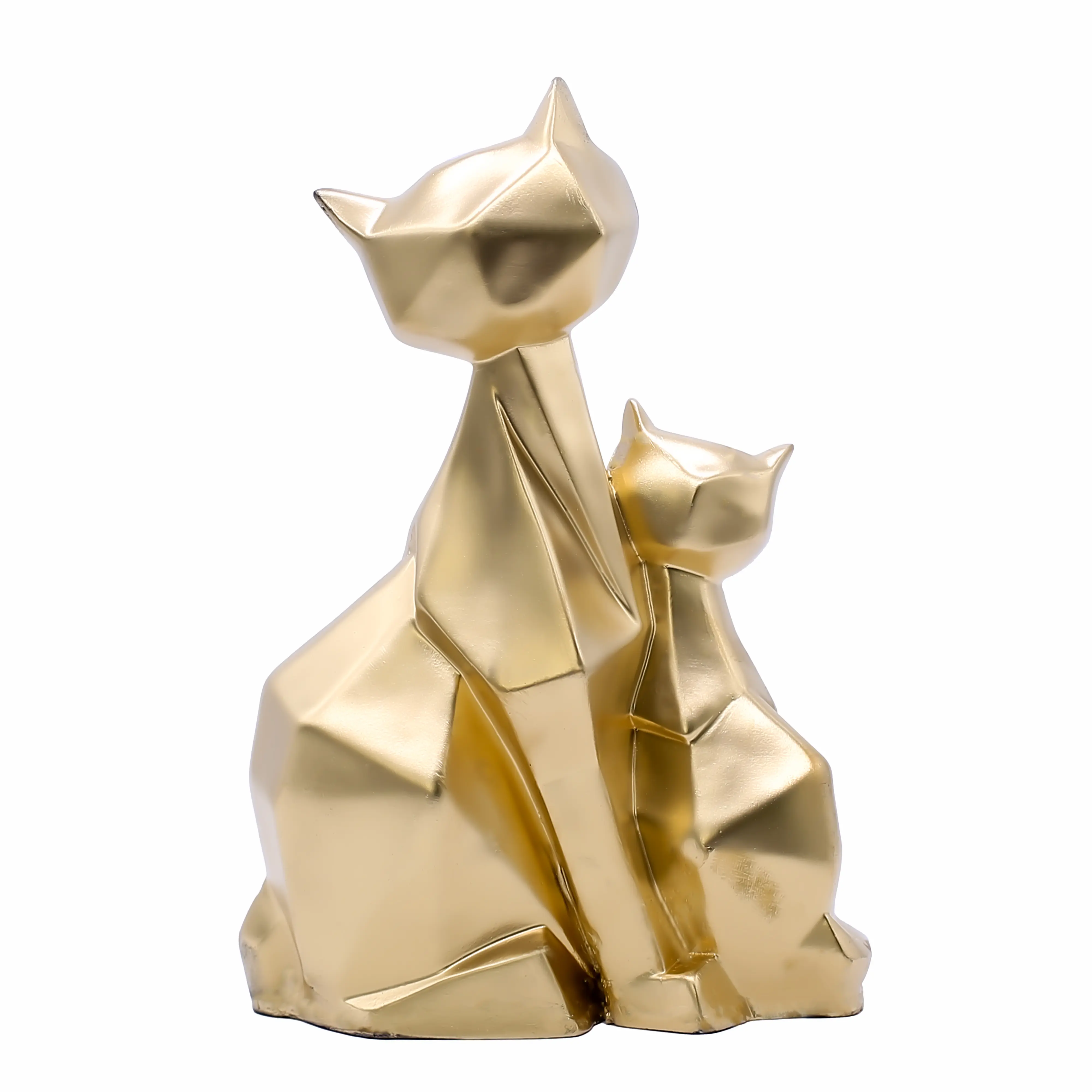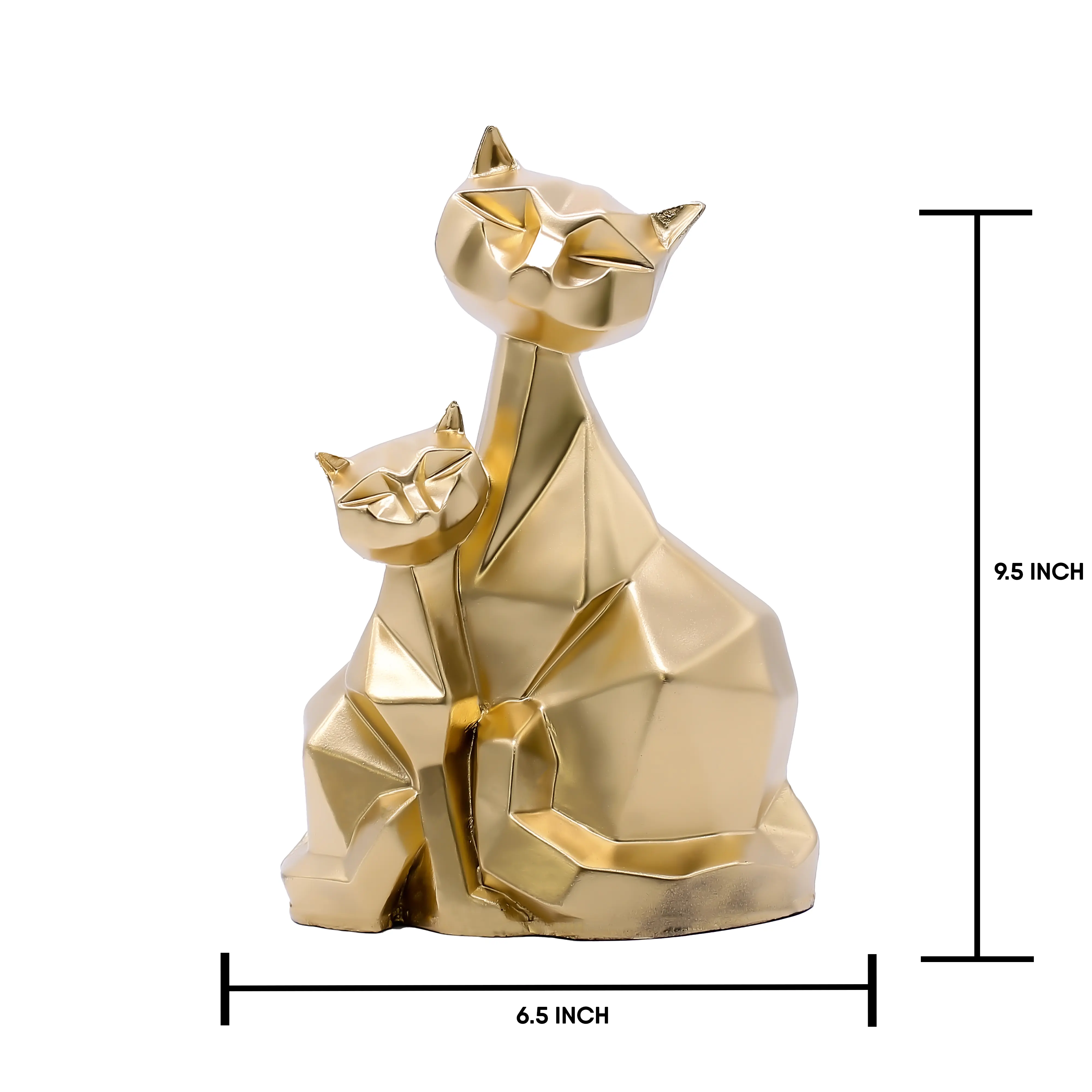 Featuring a sophisticated "low poly" faceted design, this sculpture depicts a mother cat and her kitten in a loving pose. The radiant gold finish catches the light beautifully, making it an eye-catching centerpiece for coffee tables, shelves, or office desks.Finished in a radiant metallic gold, this showpiece instantly elevates the look of any room. It is perfect for modern, industrial, or art-deco interiors. Whether placed on a glass coffee table, a dark wood bookshelf, or a white office desk.