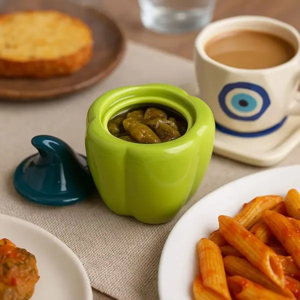 Elevate your dining experience with the Glossy Green Bell Pepper Ceramic Jar. In the world of kitchen decor, "food-shaped" serveware is a timeless trend that adds personality and warmth to a home. This jar perfectly captures that whimsy, transforming a humble vegetable shape into a chic, functional piece of art.