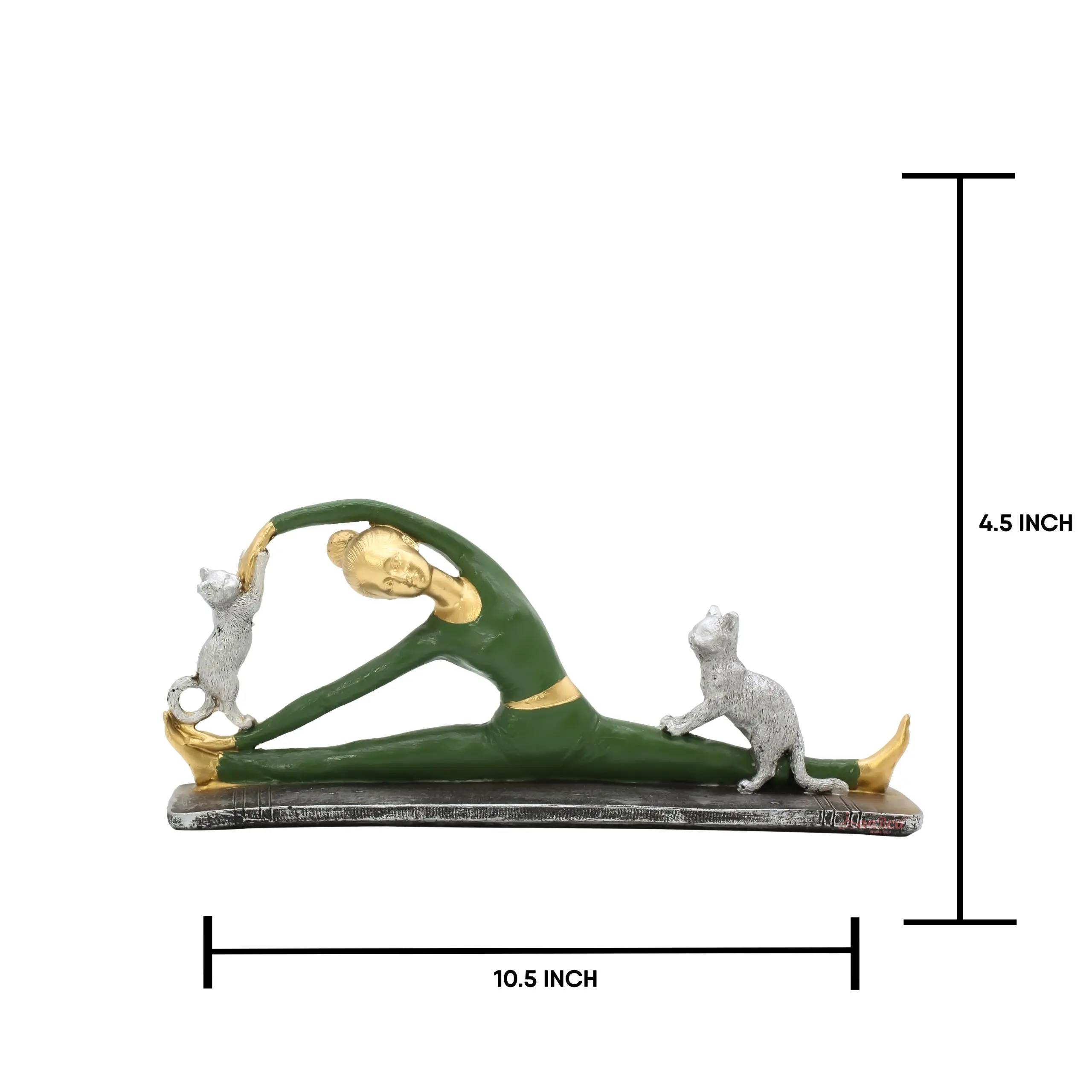 Bring a sense of playful serenity to your home with our Handcrafted Resin Yoga Lady and Cats Sculpture. This piece is a beautiful artistic interpretation of the modern lifestyle, blending the discipline of yoga with the chaotic cuteness of owning pets. It tells a story that every yogi with a cat knows well: the moment you hit the mat, your furry friends are there to join in.