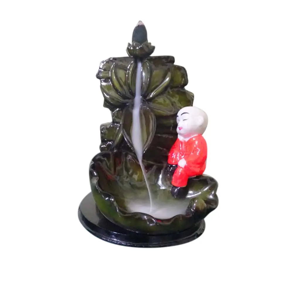 The Effect: It creates a "smoke waterfall" that pools in the basin below, enveloping the little monk in a mystical mist. Watching this slow, fluid motion is a proven way to lower anxiety and promote mindfulness.