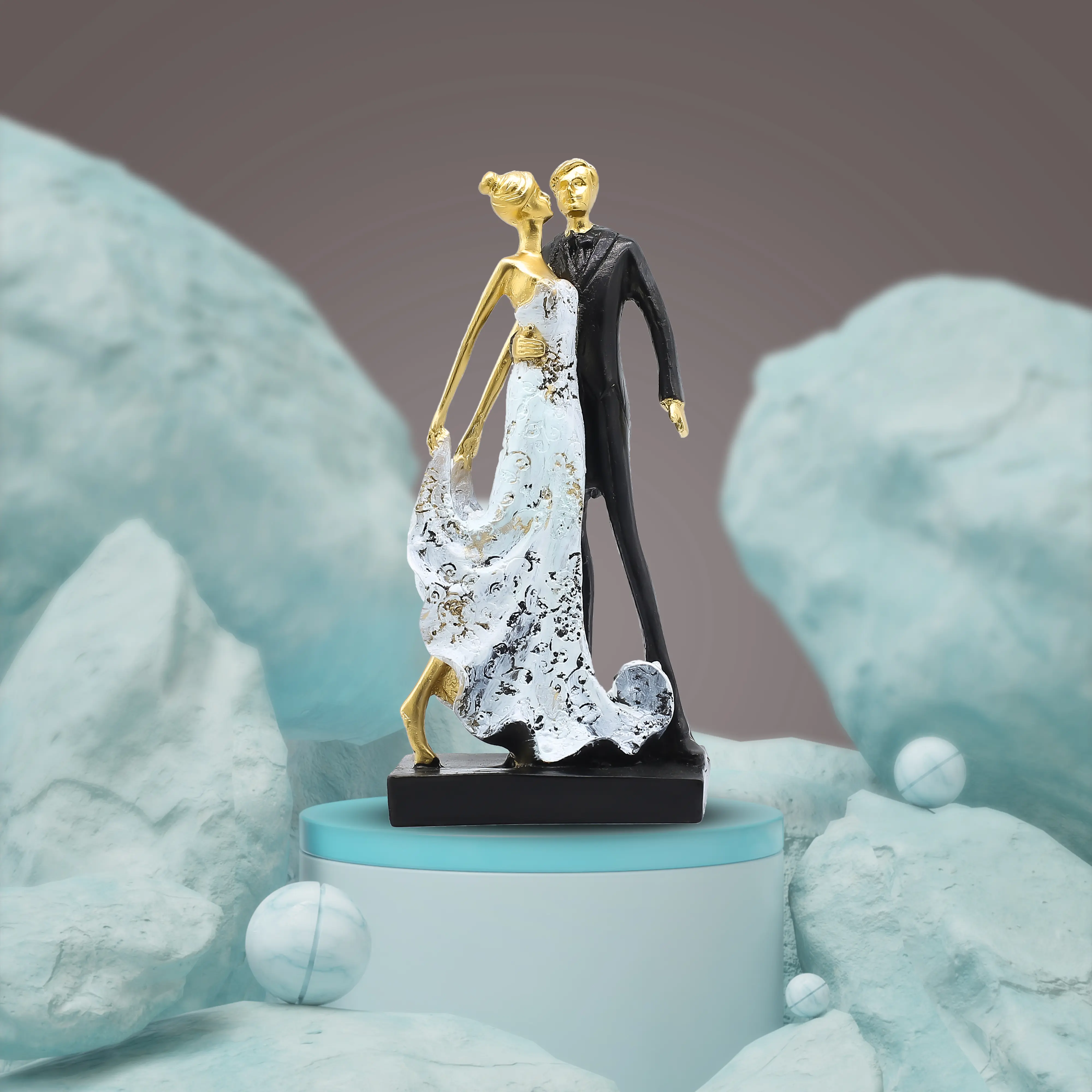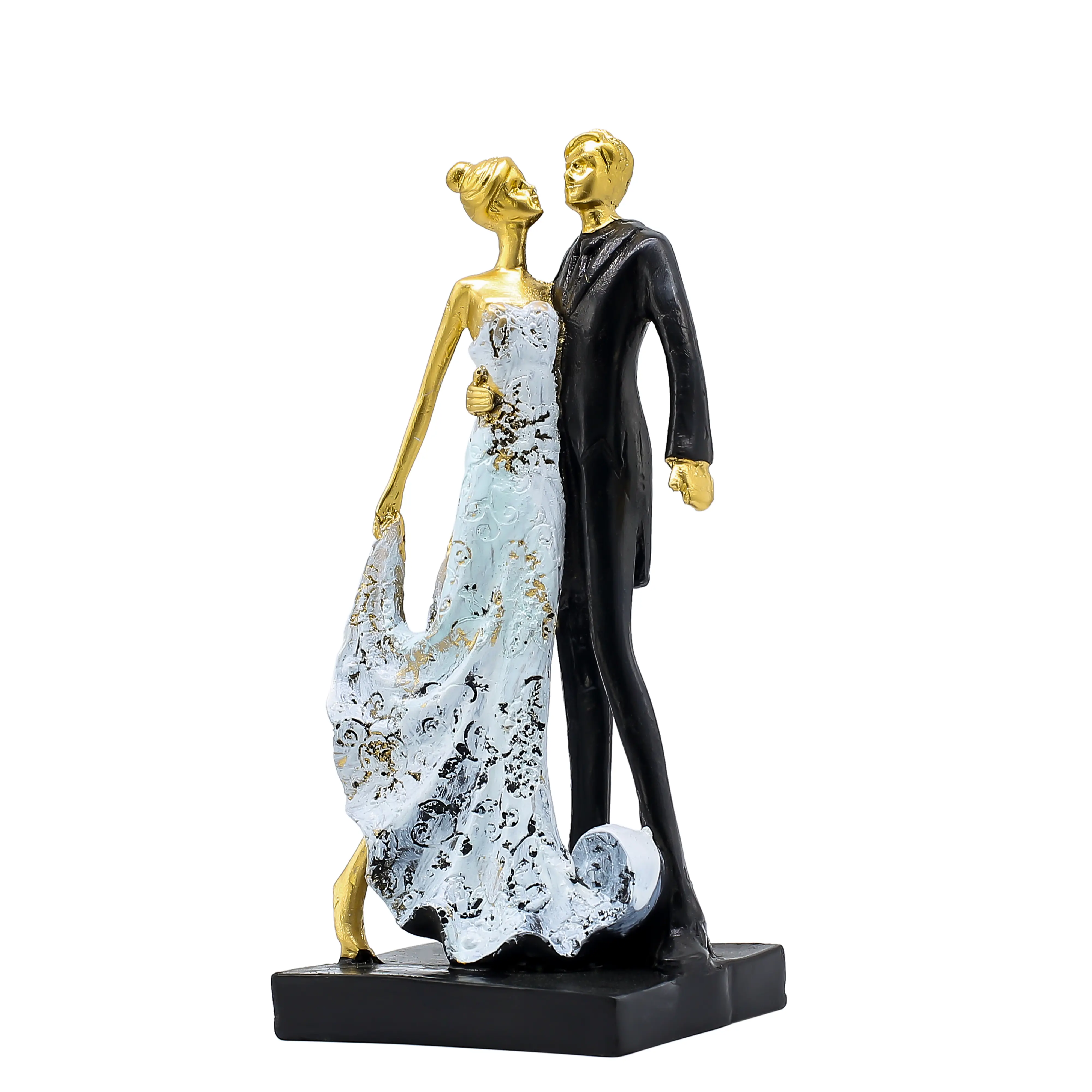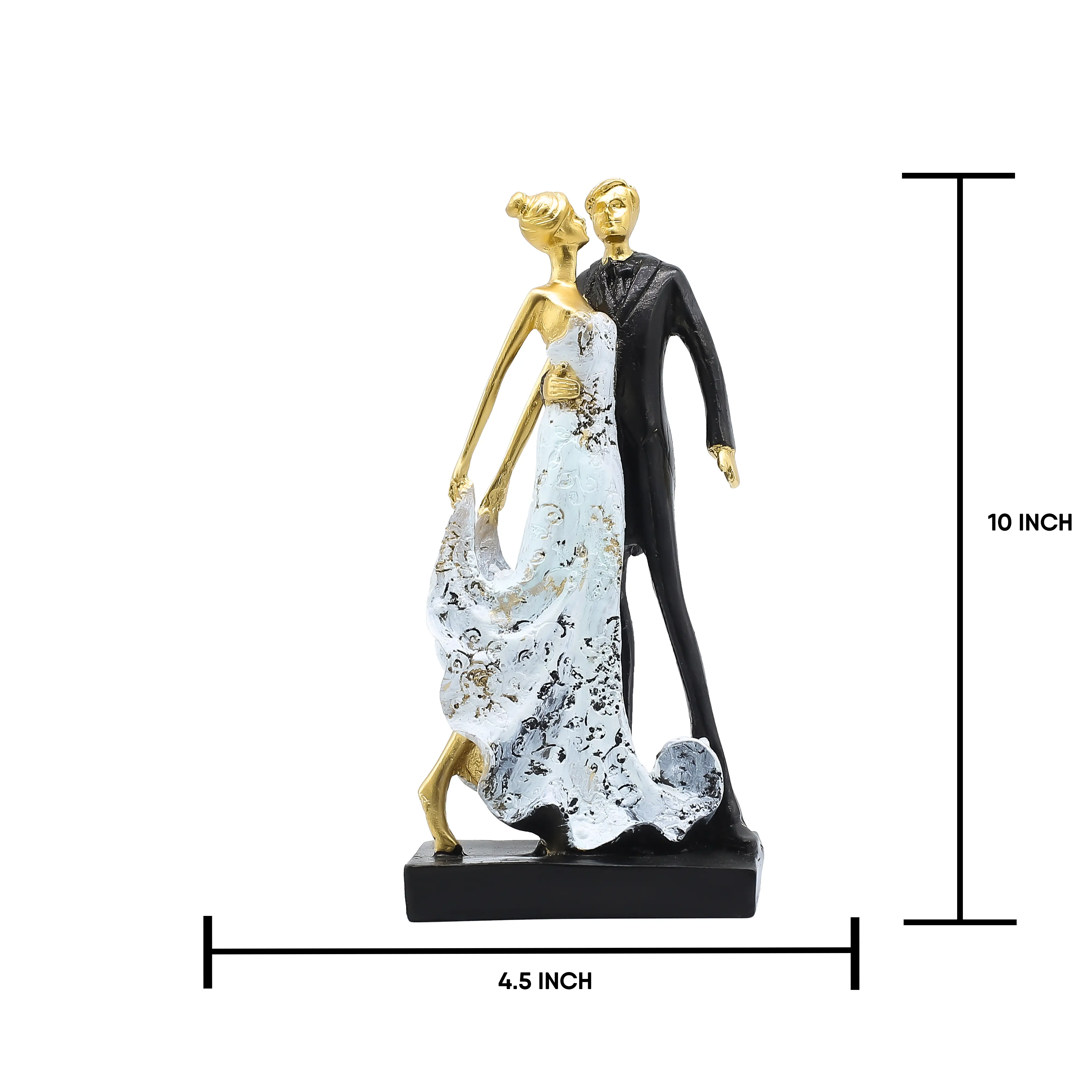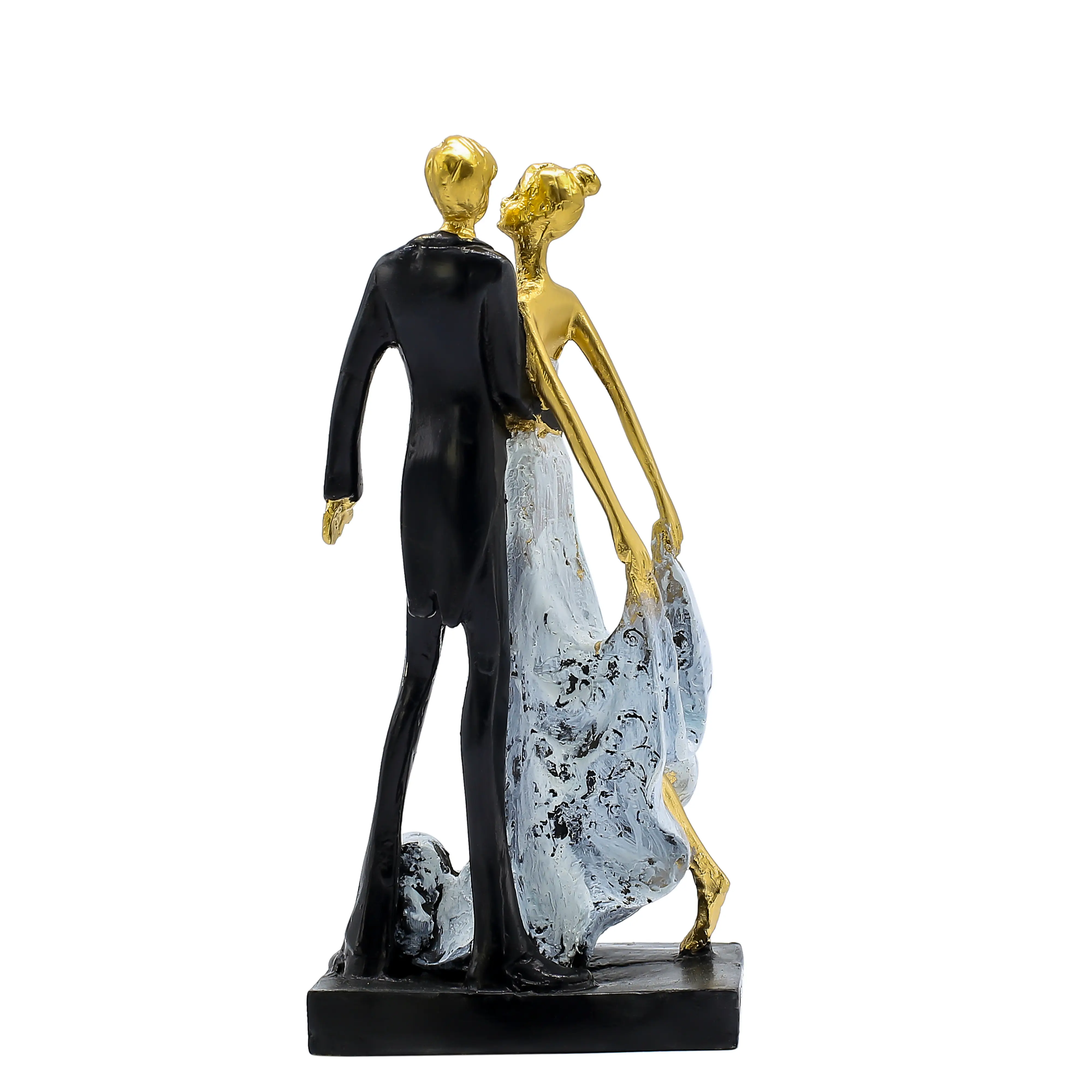 Add a touch of luxury and romance to your space with this Luxury Golden Couple Resin Showpiece. Designed with an elegant blend of gold, white, and black tones, this premium figurine beautifully represents love, grace, and togetherness. Crafted from high-quality resin, the showpiece features refined detailing, smooth texture, and a sophisticated matte-gloss finish that enhances its luxurious appeal. The graceful posture and artistic design make it a perfect decorative accent for living rooms, bedrooms, offices, hotels, and upscale interiors. This elegant couple statue is also an ideal wedding gift, anniversary gift, Valentine’s Day present, or housewarming décor item. Its premium look instantly elevates any space, making it a statement piece for modern and luxury home décor themes. ✔ Made from premium quality resin material ✔ Elegant golden, white & black luxury finish ✔ Romantic man & woman couple design ✔ Smooth texture with detailed craftsmanship ✔ Durable, lightweight & long-lasting ✔ Ideal for luxury & modern interiors ✔ Perfect for living room, bedroom & office décor ✔ Excellent gift for weddings & anniversaries ✔ Easy to clean & maintain ✔ Premium décor piece for upscale spaces