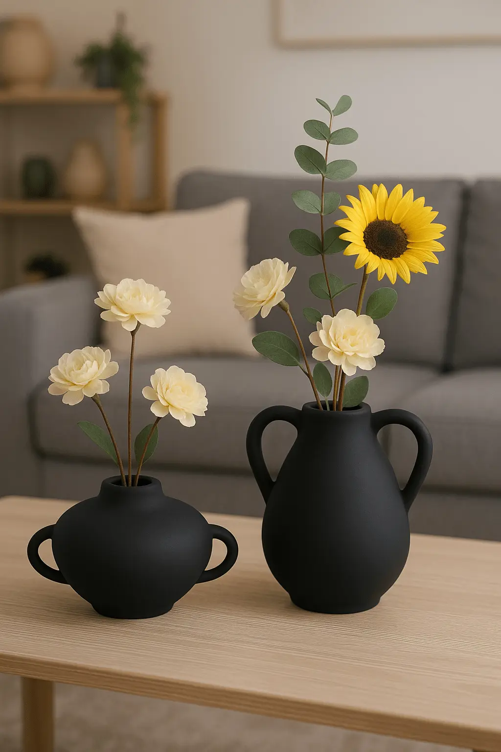 Turn your home into a curated gallery with our Premium Matte Black Ceramic Vase Set. In the world of interior design, accessories are the jewelry of the room, and this set is designed to be the standout piece. Merging the rustic charm of old-world pitchers with the sleek lines of modern minimalism, these vases offer a timeless aesthetic that elevates any decor theme.